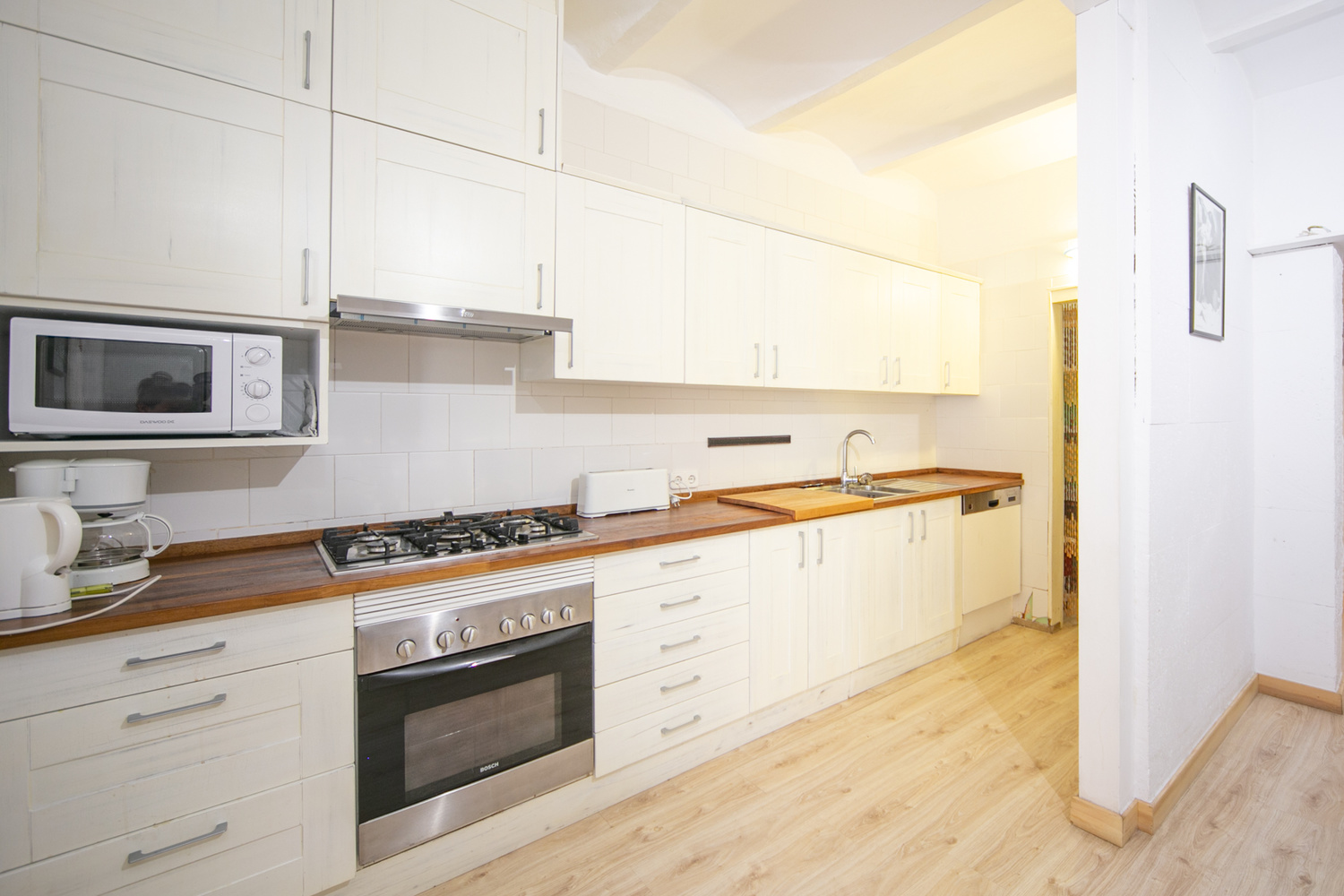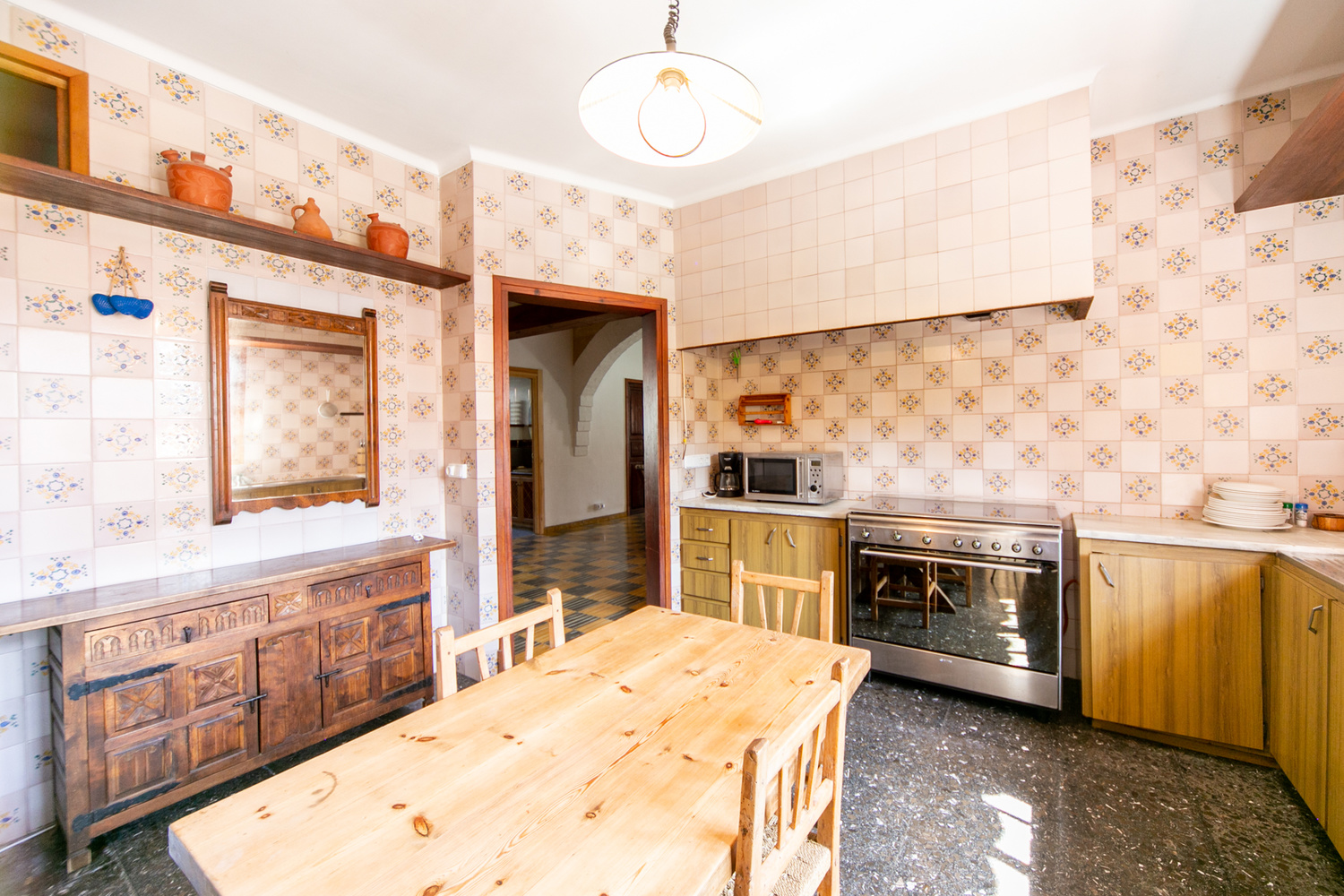 The net living space of 583m2 on a plot of 690m2 plus terrace space of over 100 m2 is currently distributed over 3 floors and consists of 12 bedrooms and 5 bathrooms with two kitchens, three living rooms and a garage for 4 cars.