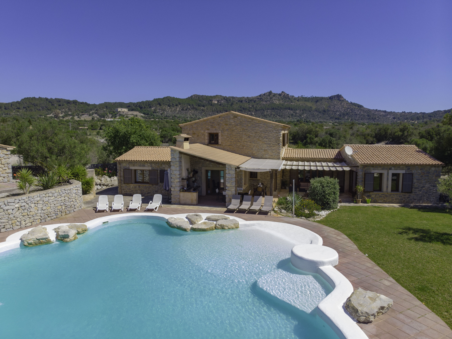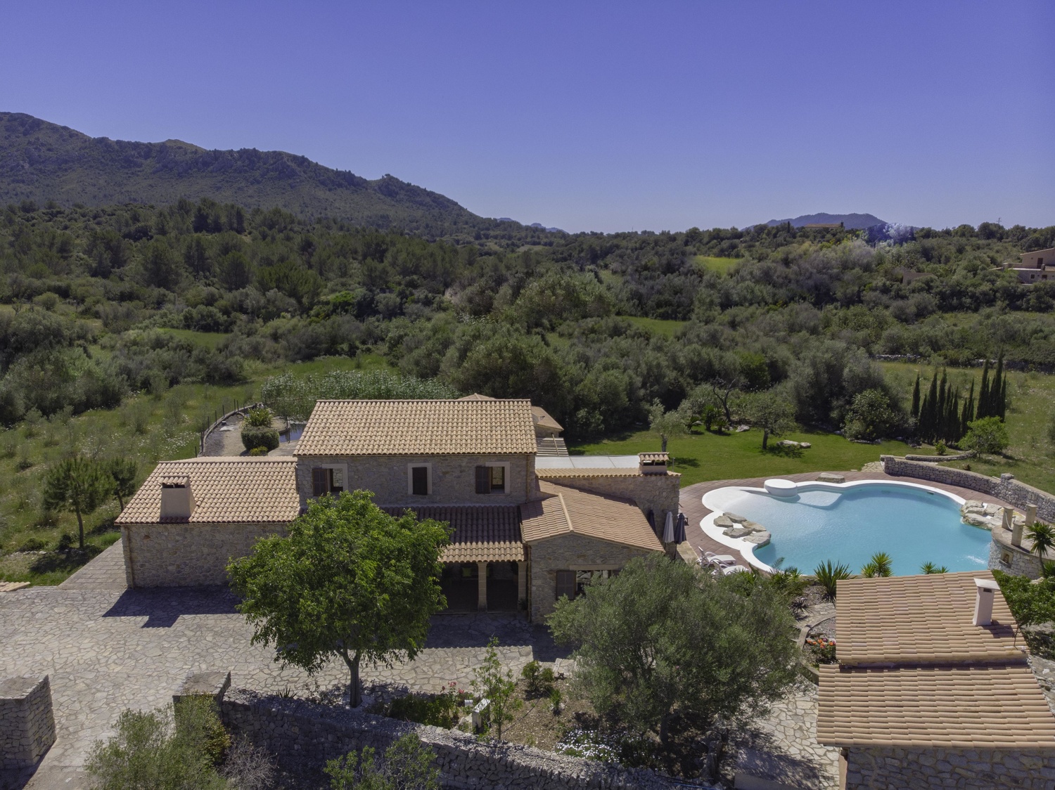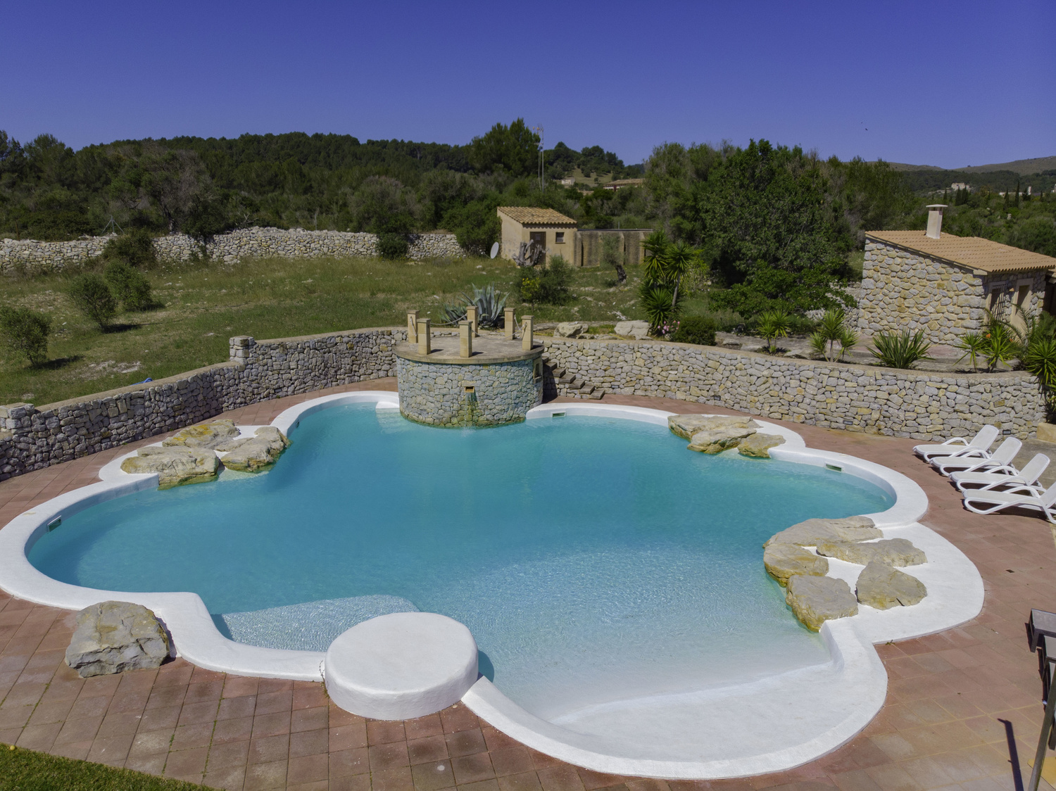 This enormous estate is located in the hills of Artà. Completely covered with natural stone and built in 2002, the house stands in an isolated area of ??almost 38'000 m2 of land. The beautiful natural beaches of Cala Torta or Cala Mitjana are only 10 minutes away by car and Artà ??3 km away. This extraordinary country house made of Majorcan stone and with an exceptional pool is located in the northeast of Mallorca, near the Ermita de Betlèm.