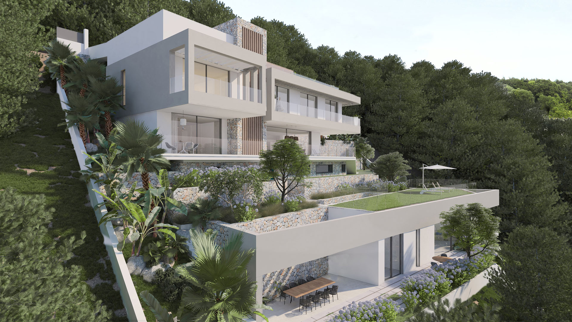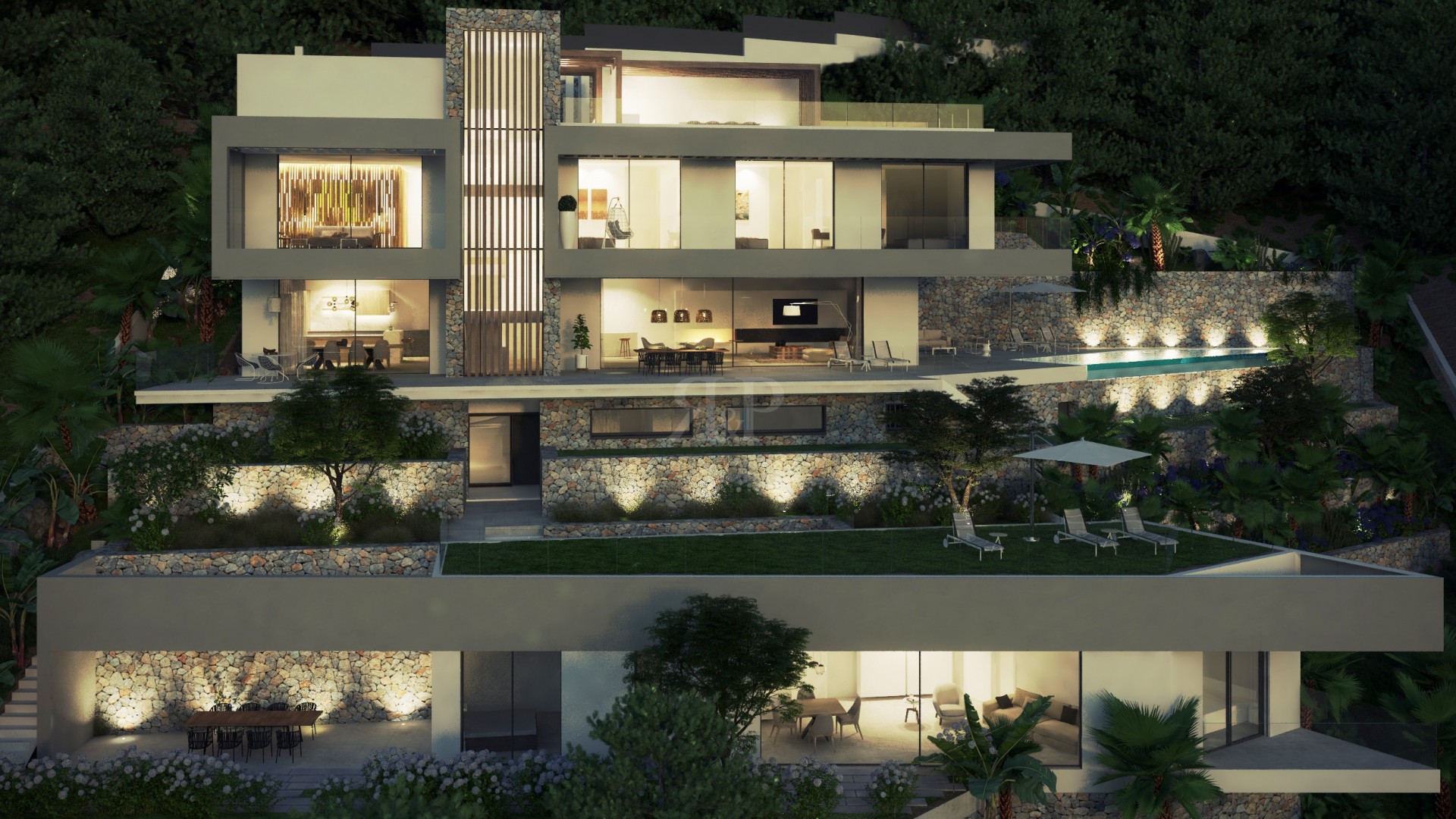 Plot of 1,350 square metres for the construction of a large dream villa with 6 bedrooms en suite plus separate guest house. 720 sqm living space, 120 pergola, large panoramic roof terrace, elevator, wine bodega, cinema and 80 sqm SPA.