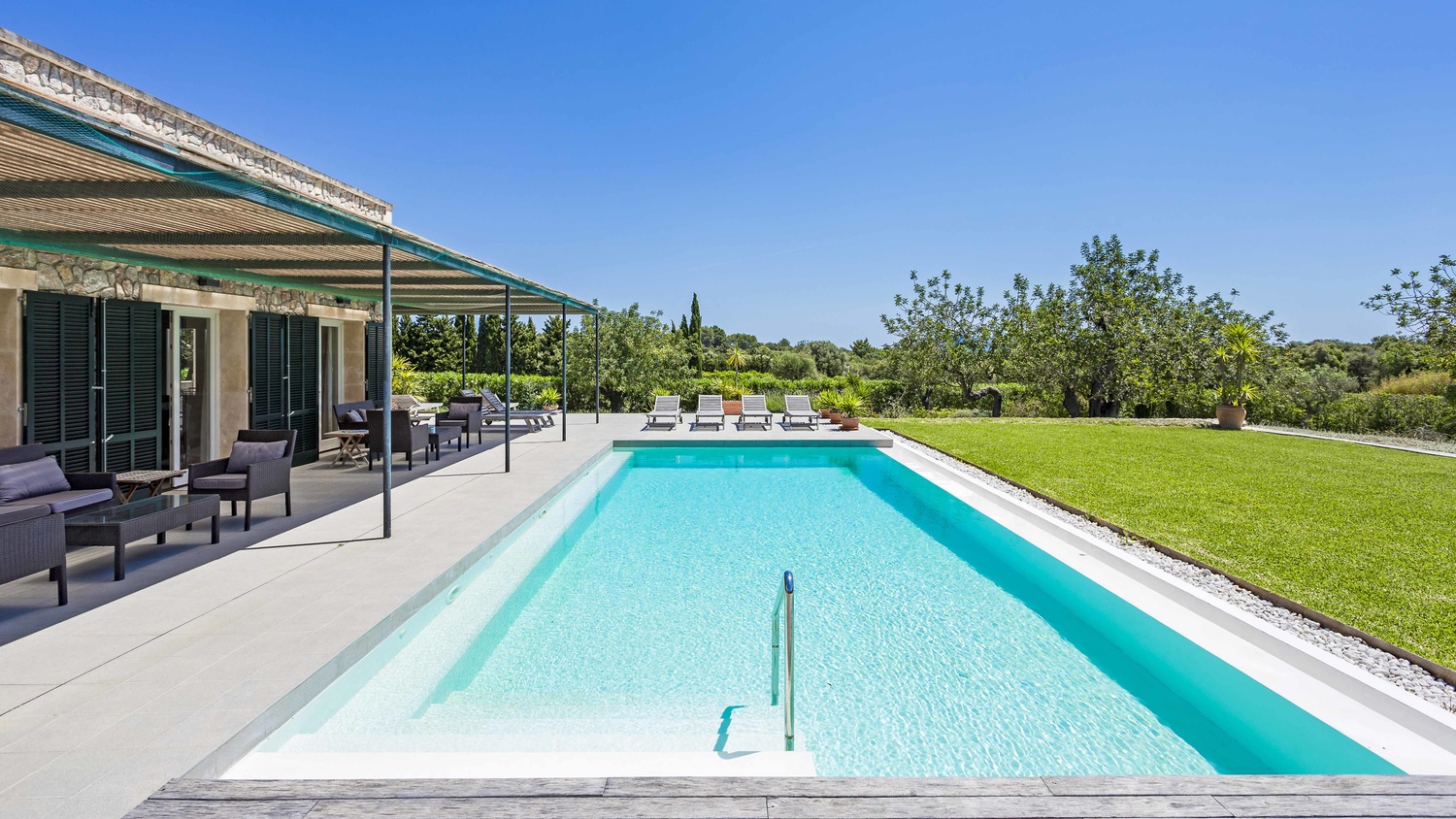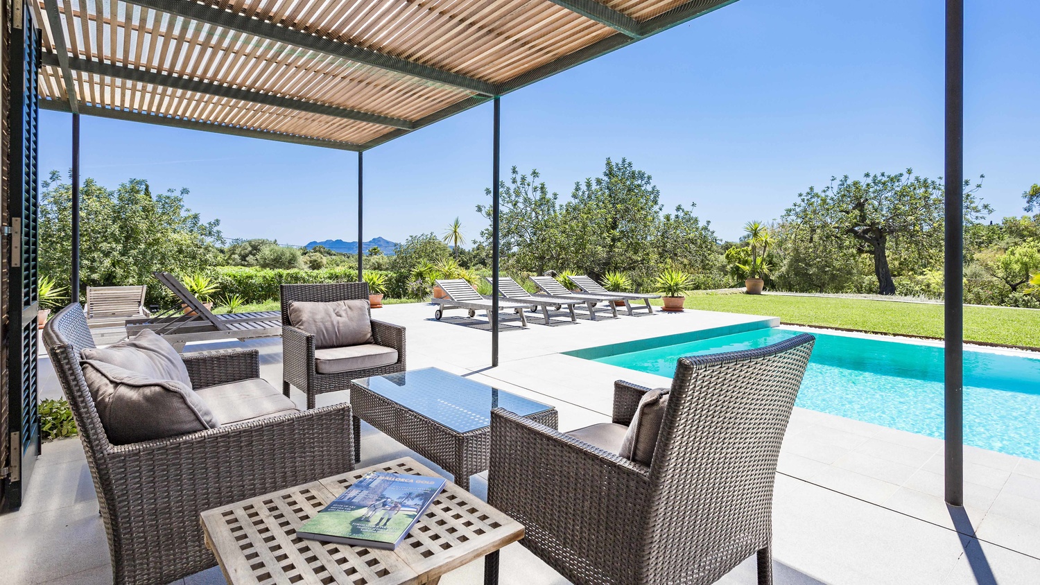 This Modern Country house for sale in Pollensa is south oriented and enjoys absolute privacy and a wonderful panoramic view of the surrounding countryside.