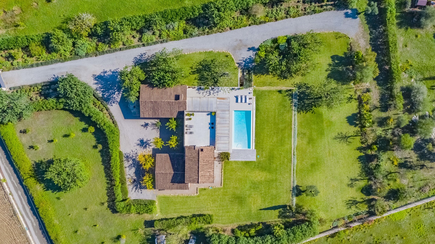 The property is characterized by the successful blend of a rustic country house with very modern details as well as a very high quality equipment: central heating in all the rooms, reversible air conditioning hot/ cold, double glazed wooden windows, partially visible beams, interior and exterior music surround system, designer bathrooms, high ceilings, installation of water purification system.