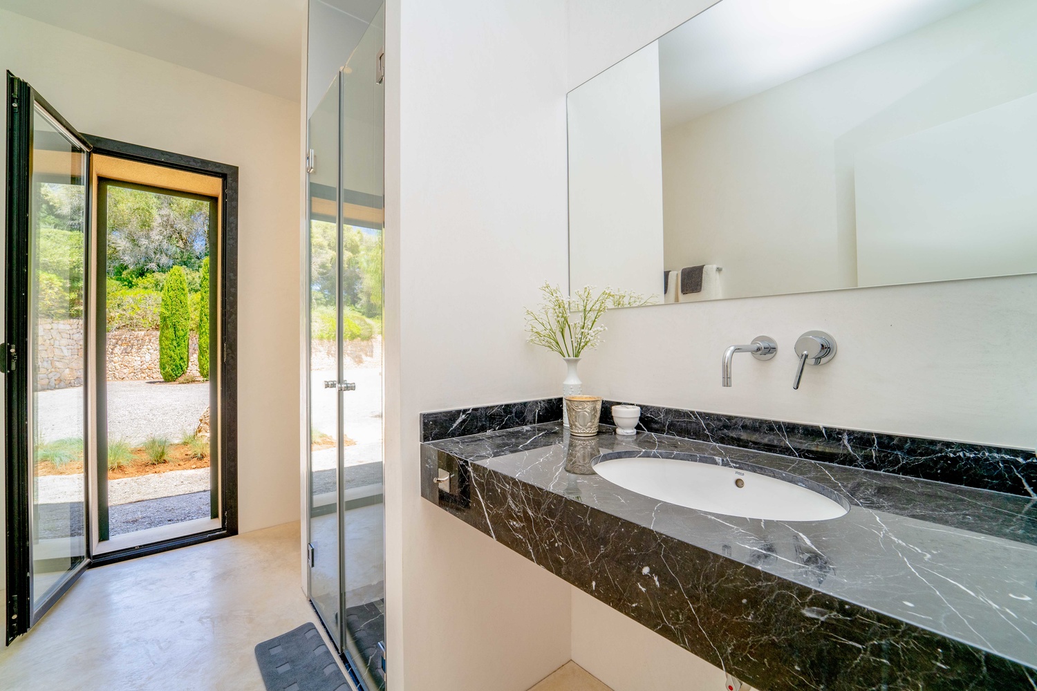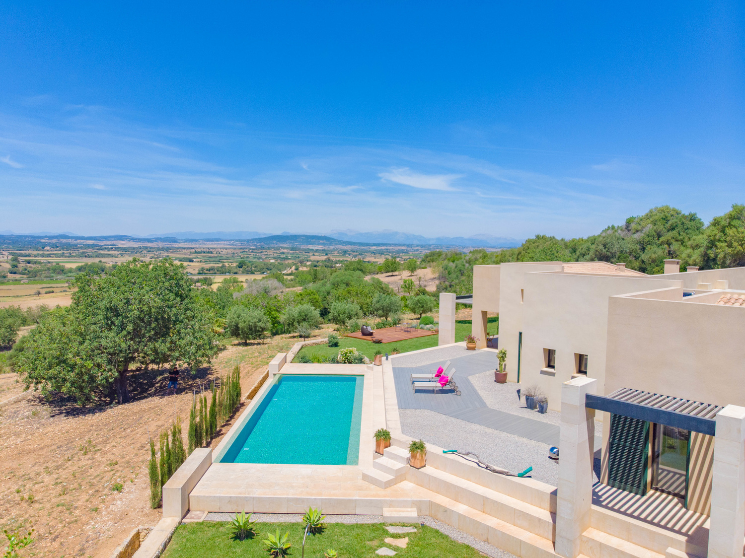 The great outdoor area has the much sought after stone terraces covering Santanyi. From the terraces and the beautiful infinity pool, partially surrounded by a lawn, you enjoy spectacular panoramic views over the mountainous landscape.