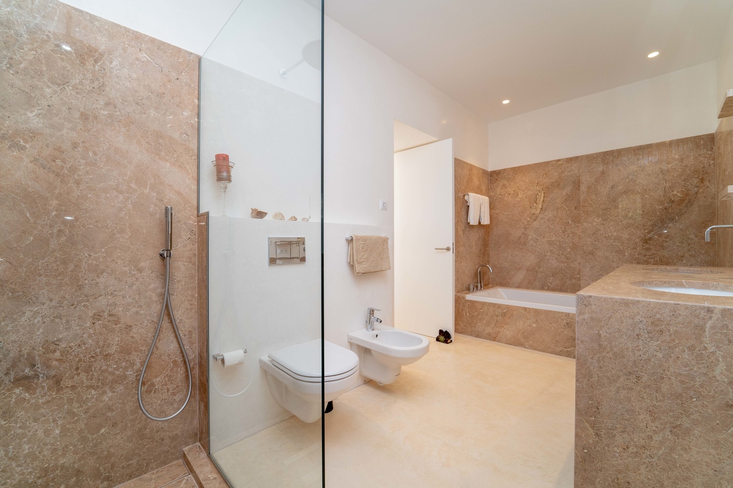 Also here there are two bedrooms, each with its en-suite bathroom. There are two more bedrooms that share a bathroom.