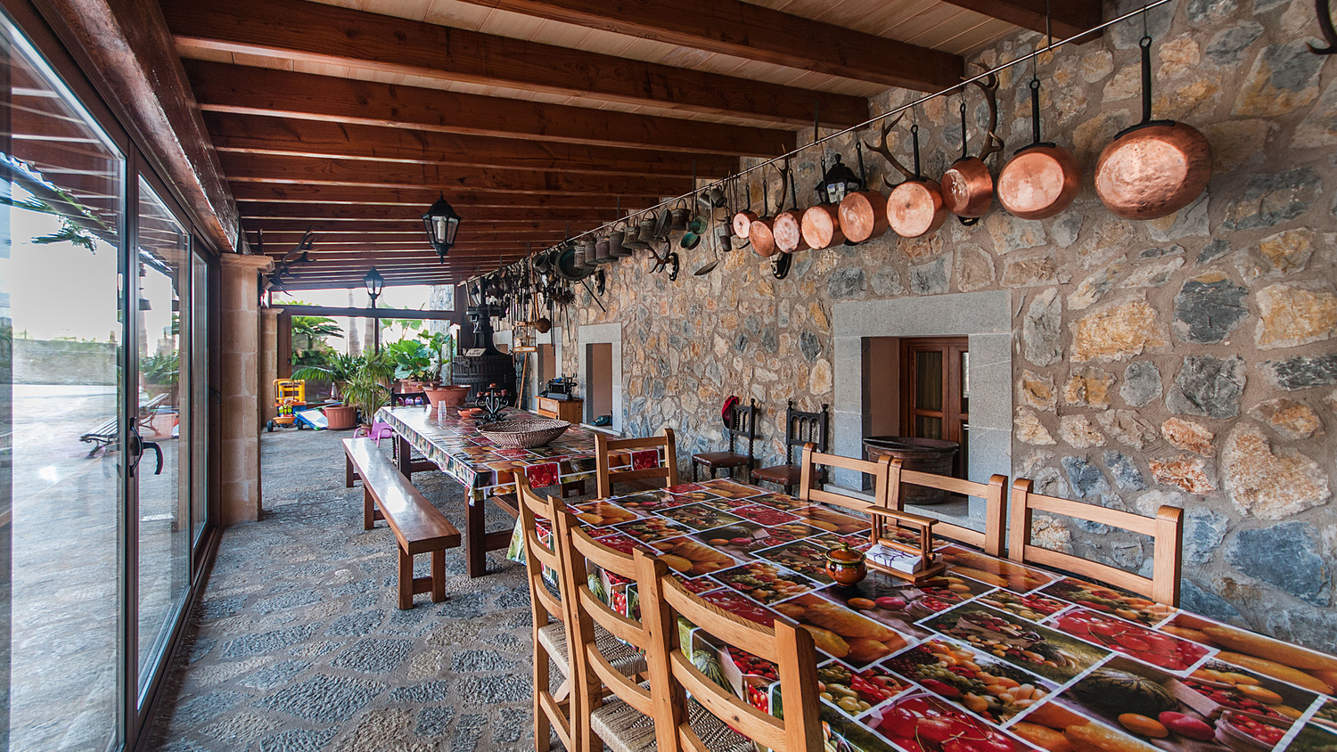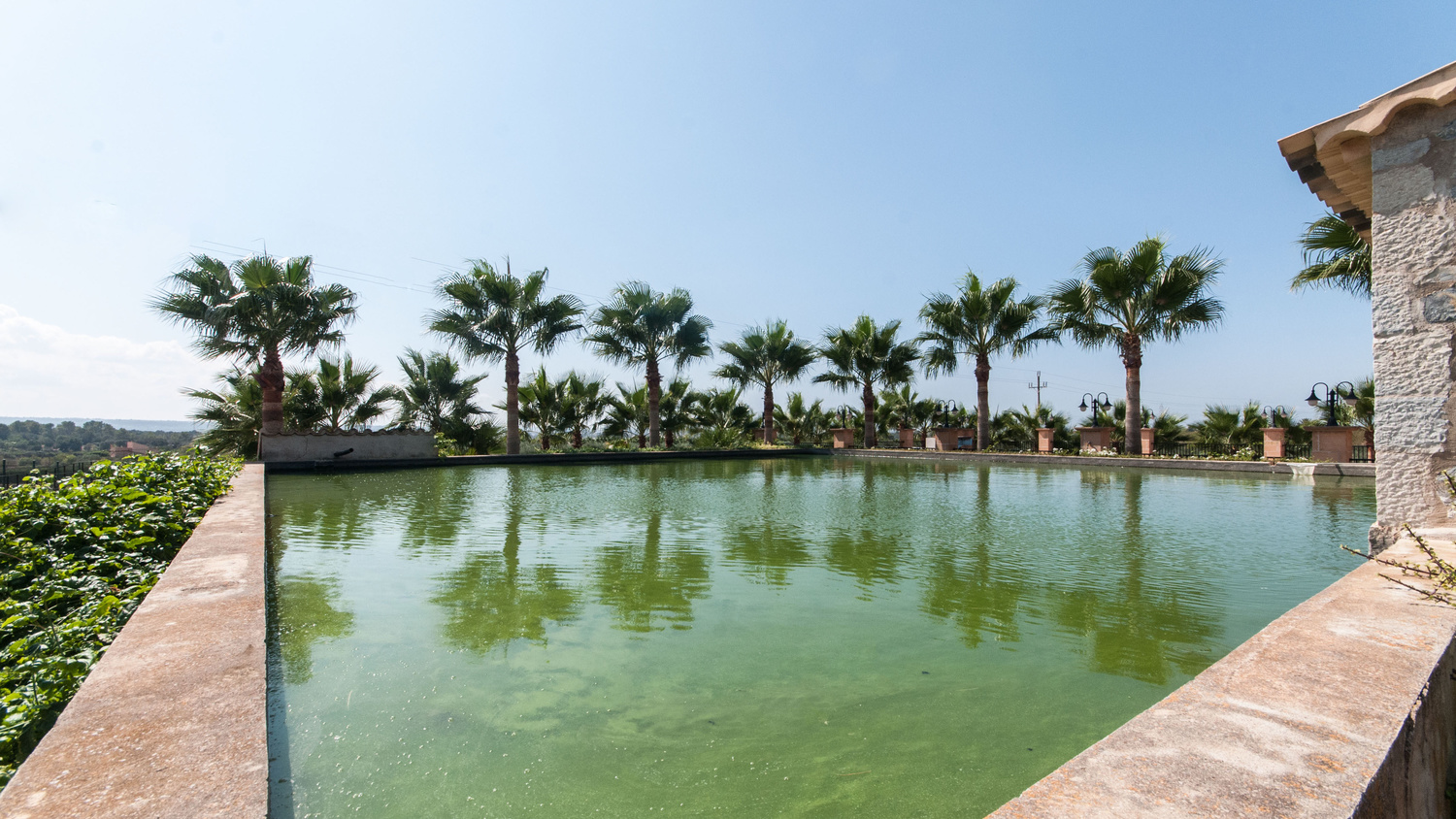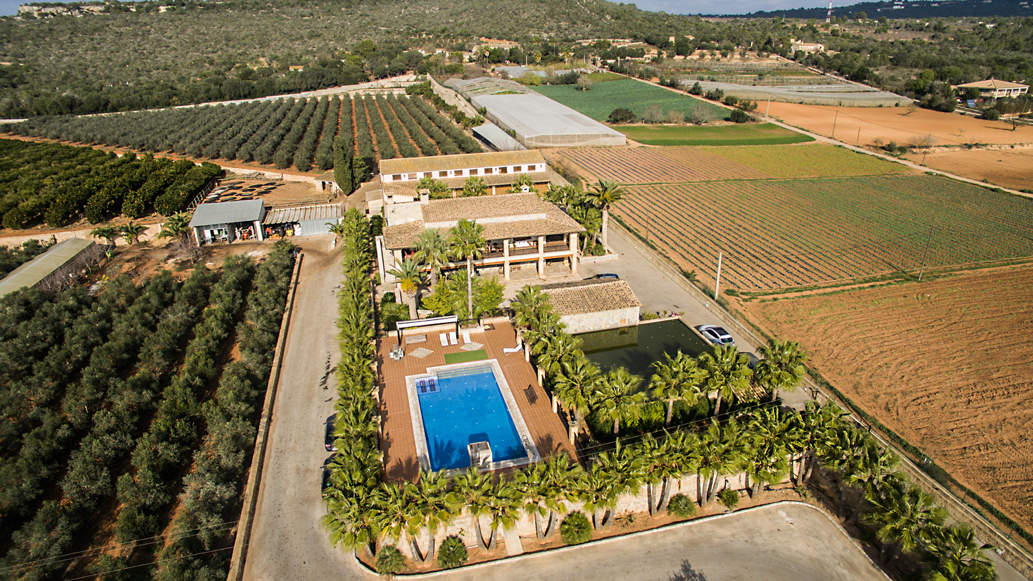 Fittings and features: air conditioning,heating, fitted wardrobes in all bedrooms, wine cellar, store room, BBQ, automatic irrigation system, 2 cisterns, open parking, etc. There are premises that makes it ideal for rural tourism. Several fruit trees (cherry, figs, apples, pear, grape, etc.), 2500 olive trees, 88 palmito trees. This luxury finca is situated only 7km from Palma, 3 from Puntiró golf course and a few minutes from the airport.