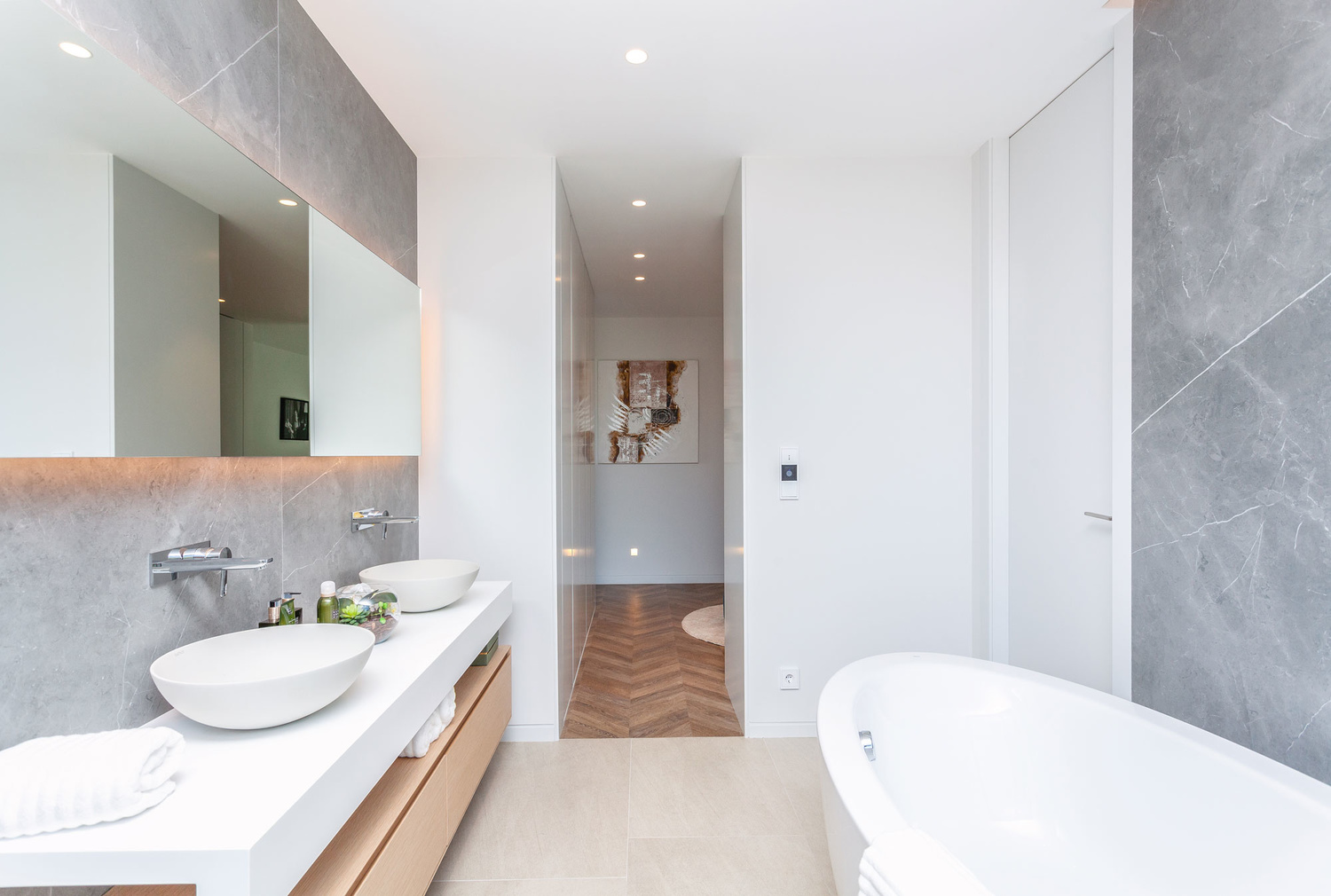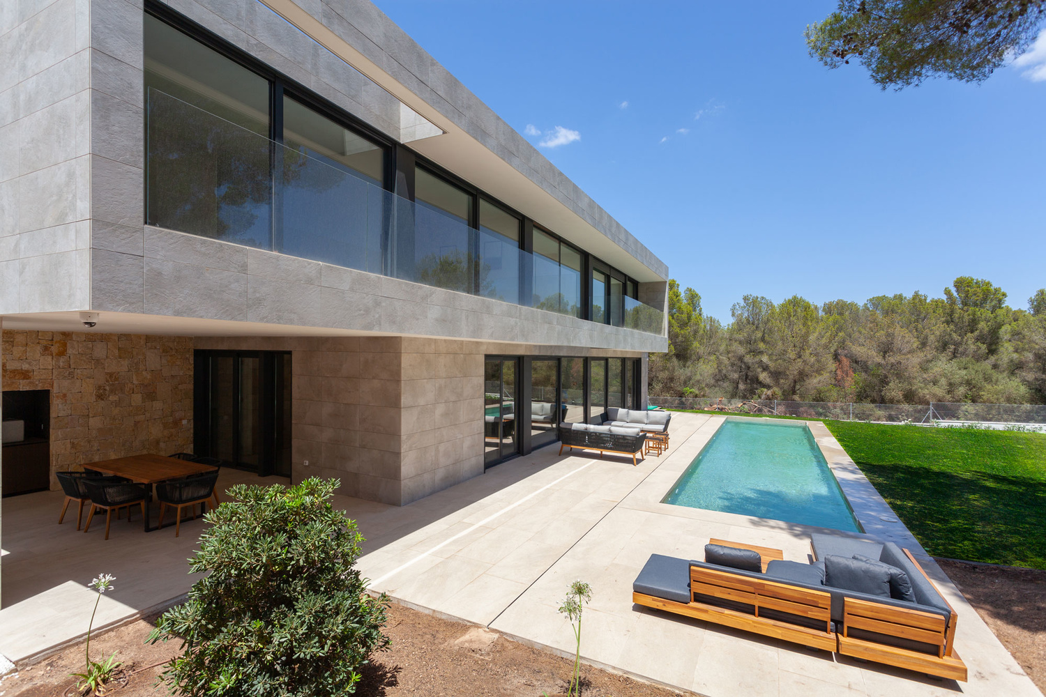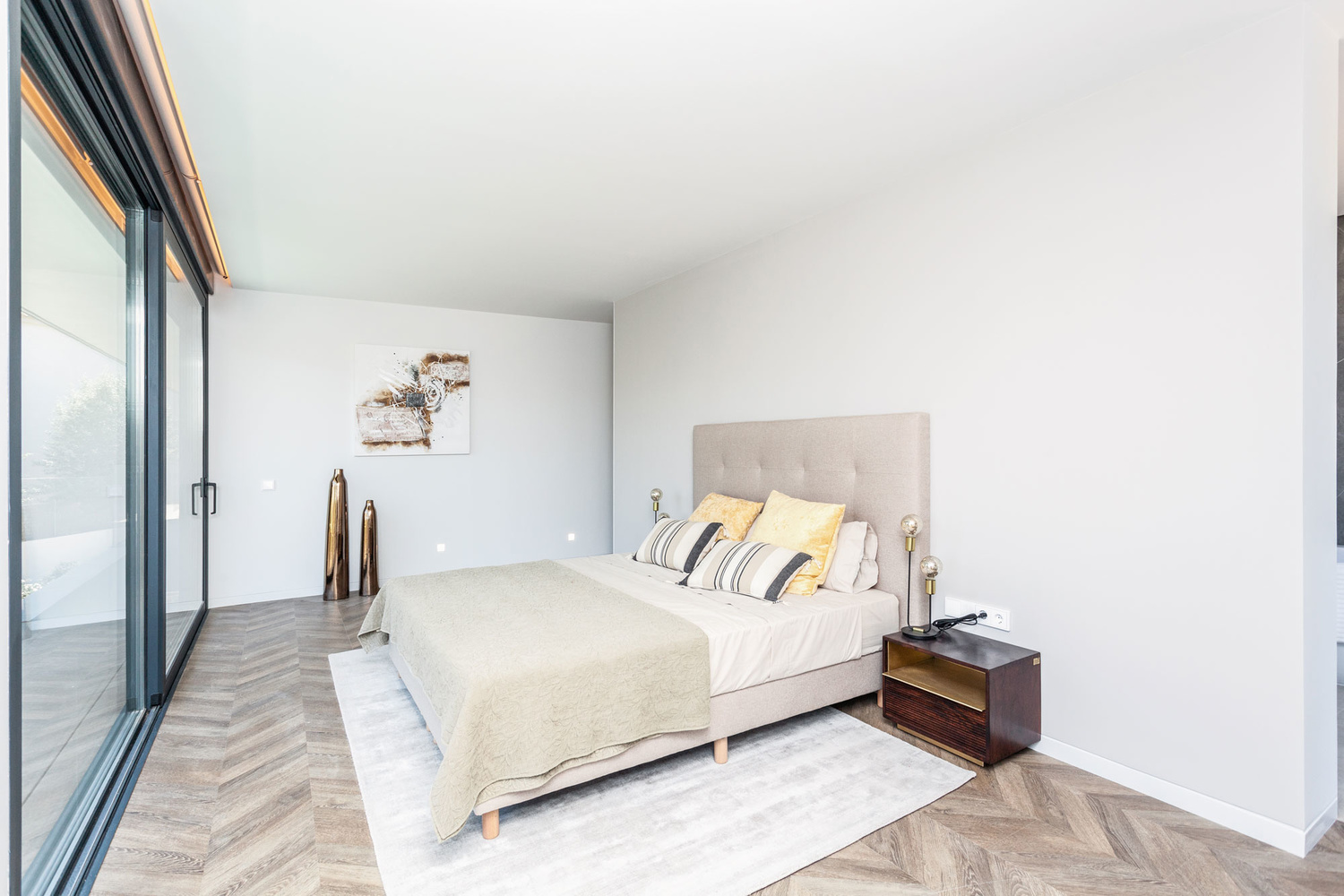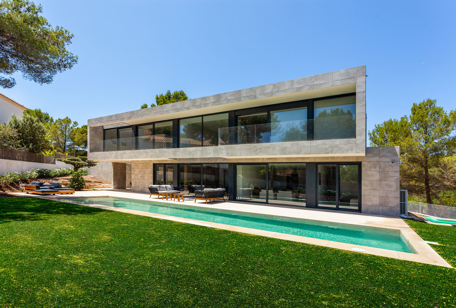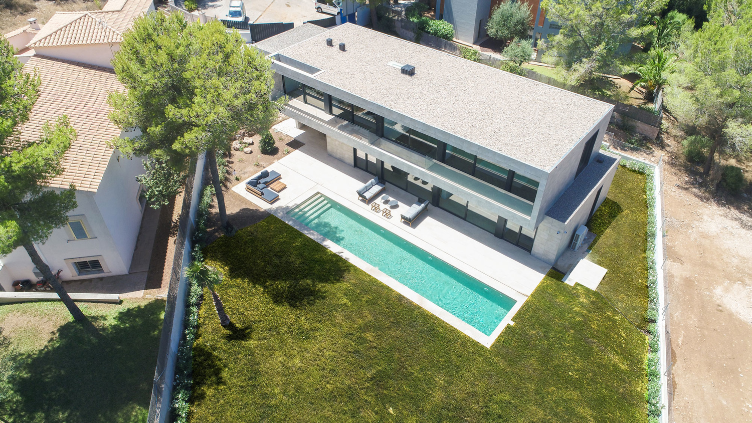 This newly built modern villa sits on a 1.340 m2 plot in a cul de sac and has a constructed area of approx. 450 m2 including several terraces. The garage offers parking for 2 vehicles and additional storage space.