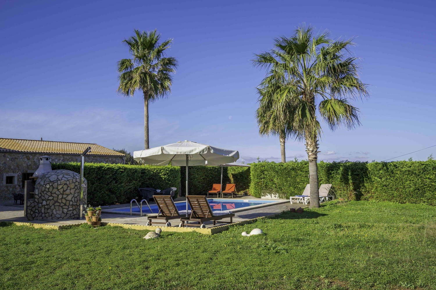 Large garden with swimming pool and summer kitchen with barbecue area.