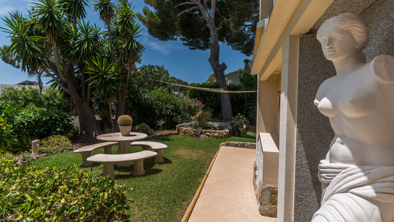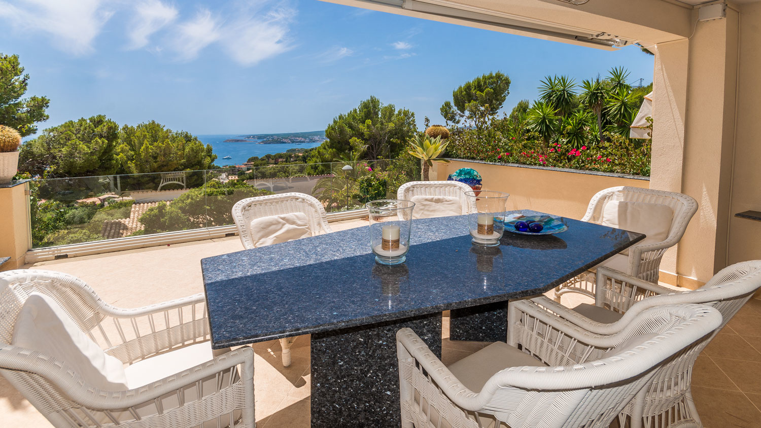 This south facing villa is located in a quiet residential area in Costa d`en Blanes, on one of the few flat plots of this area.