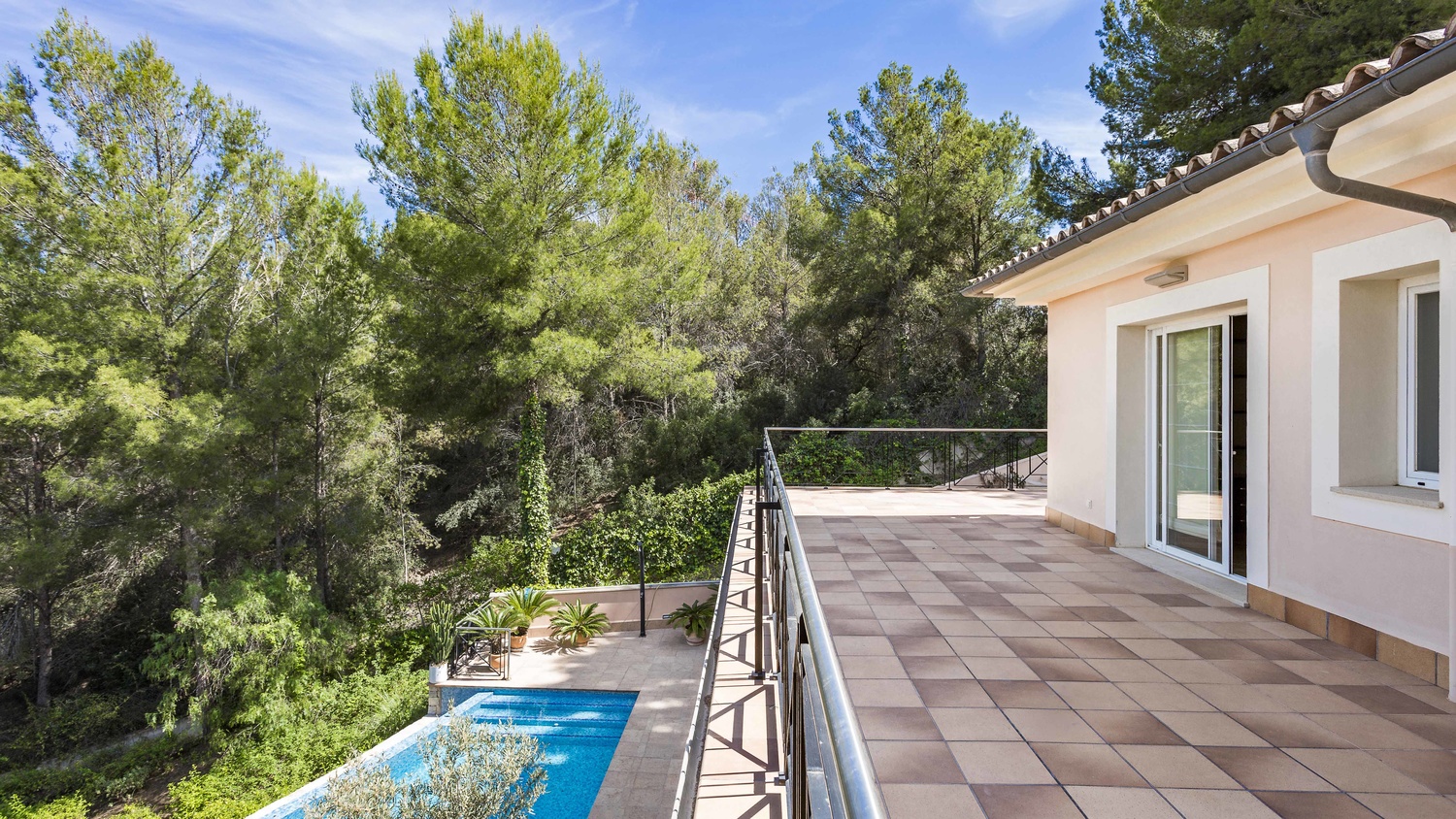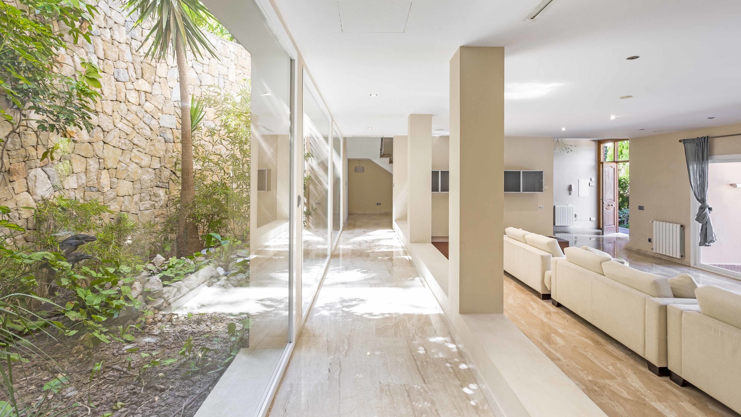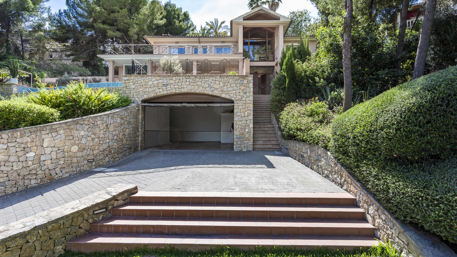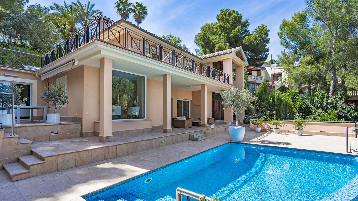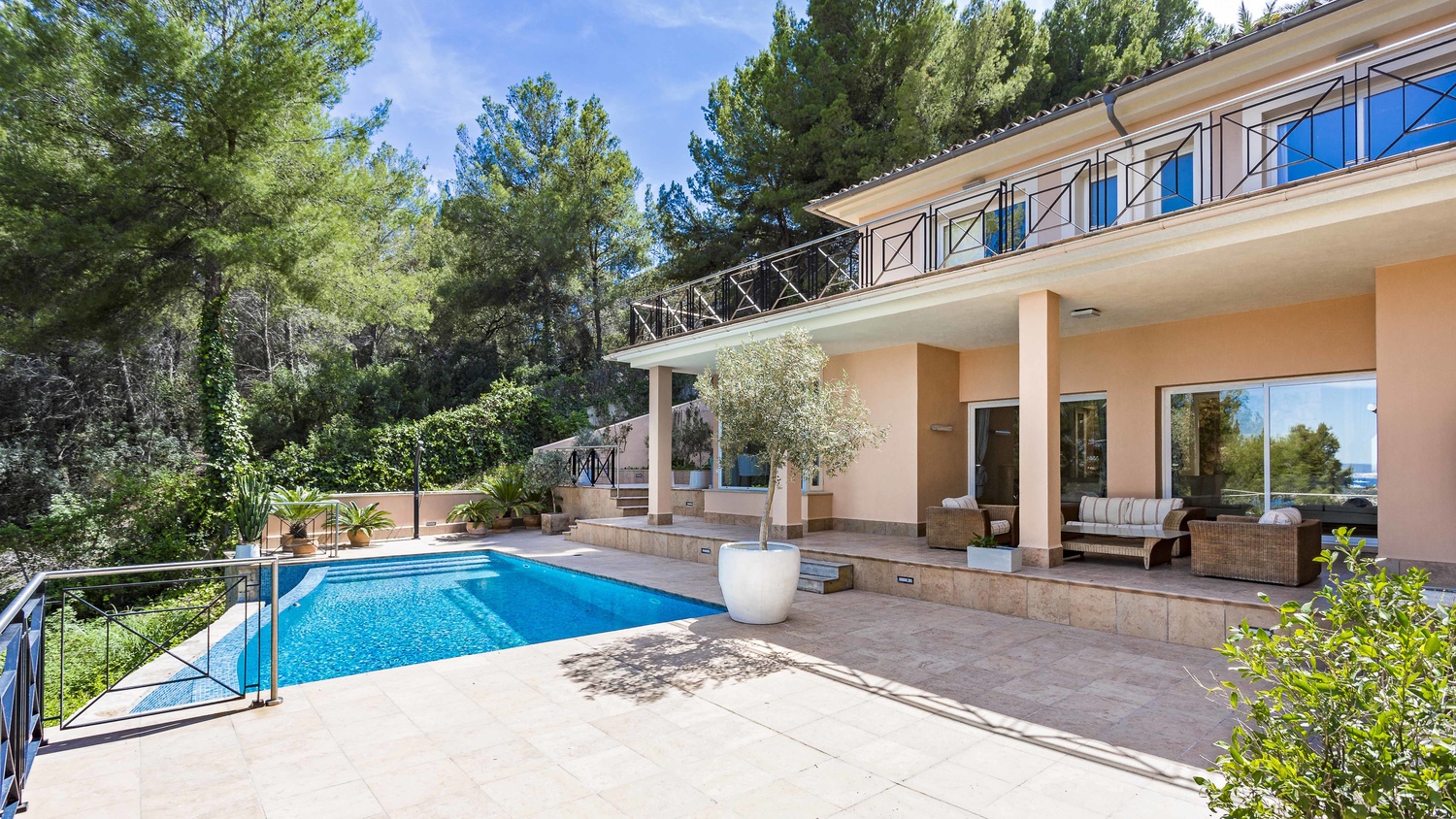 Inviting open and covered terraces, green driveway, infinity pool. Very quiet and sought-after residential area. 10 minutes from Palma and exclusive yacht harbour Portals. High privacy and views over the sea and the bay.
