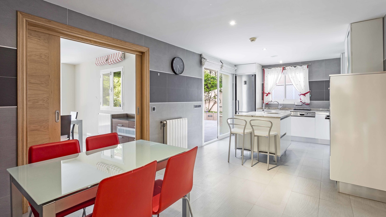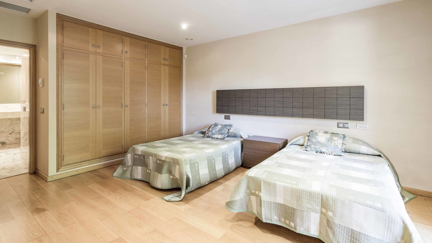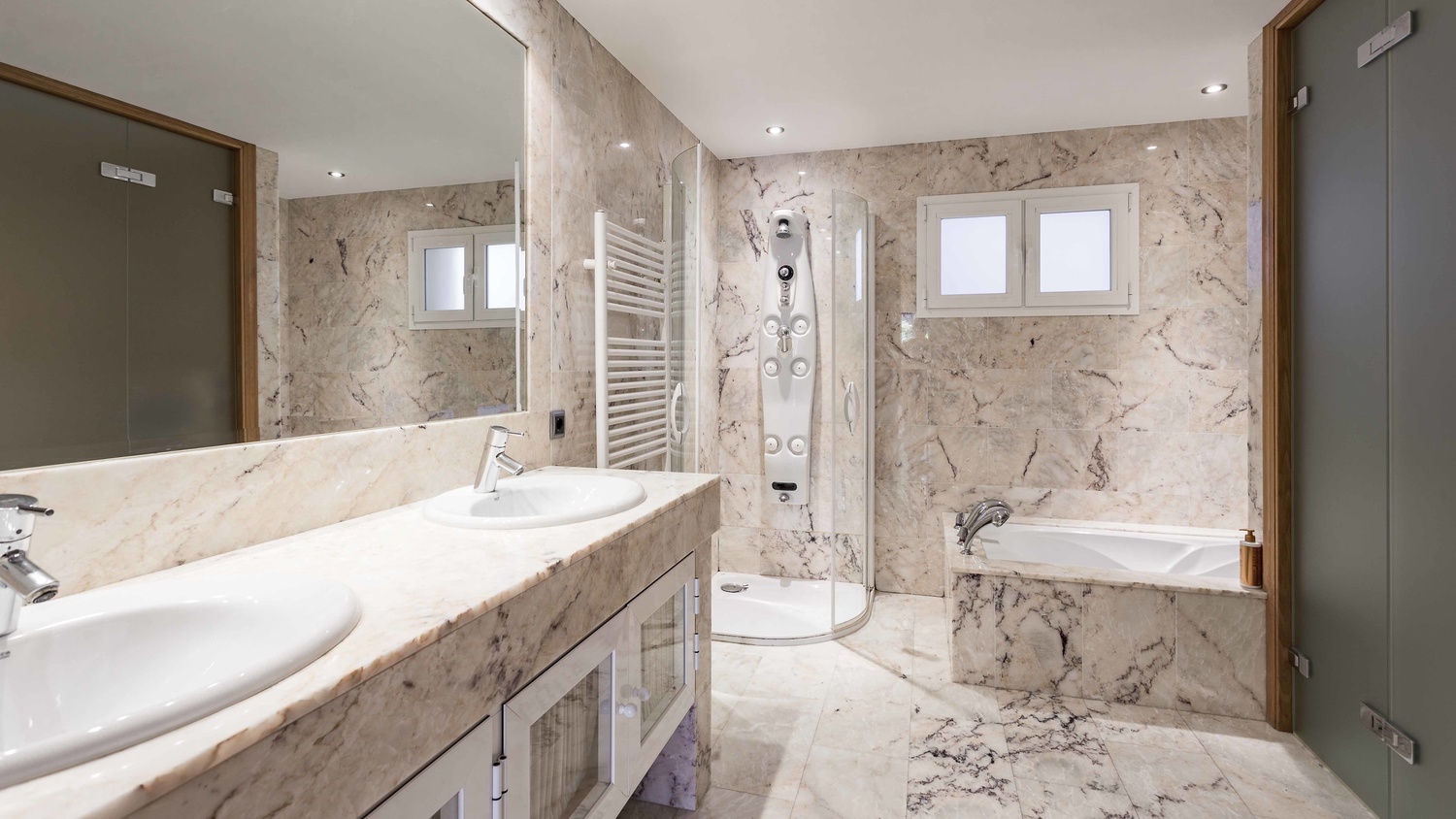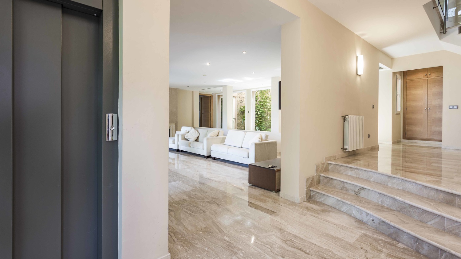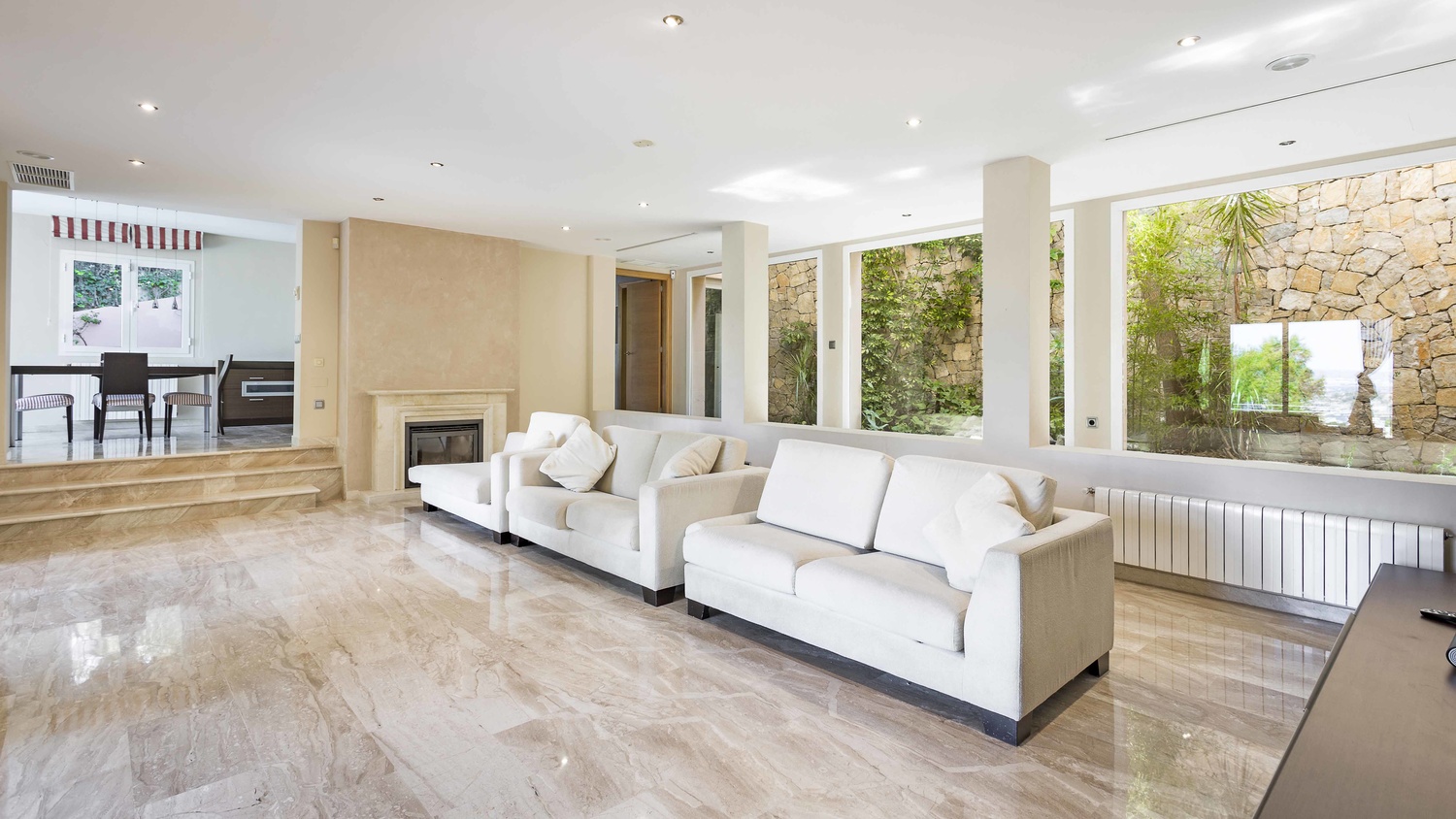 Ground floor: elegant entrance area with access to a spacious living/dining room with fireplace. Modern fully equipped luxury kitchen with cooking island, breakfast area, laundry and pantry. 1 guest bedroom with bathroom en suite. Guest cloakroom. Access to various terraces and balconies as well as to the swimming pool with lovely sea views.