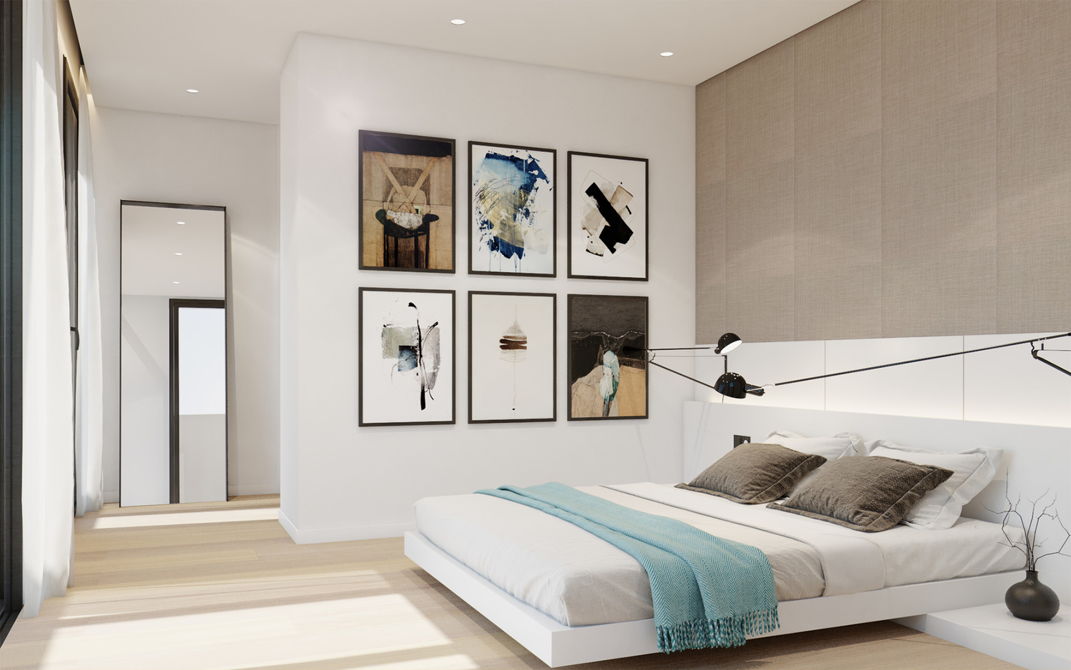 The aim was to capture the natural light through the large floor to ceiling windows and doors leading out onto the private balconies where you will enjoy in-out-living for most of the year due to Mallorca´s climate. The building has elegant sharing spaces like the gardens and pool folded with light and shade.