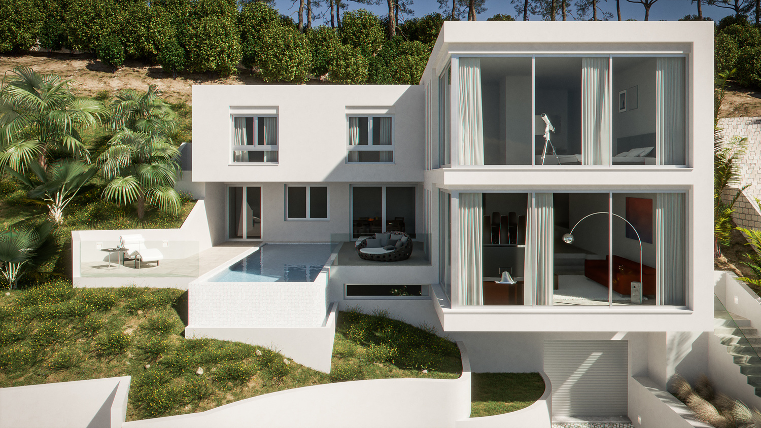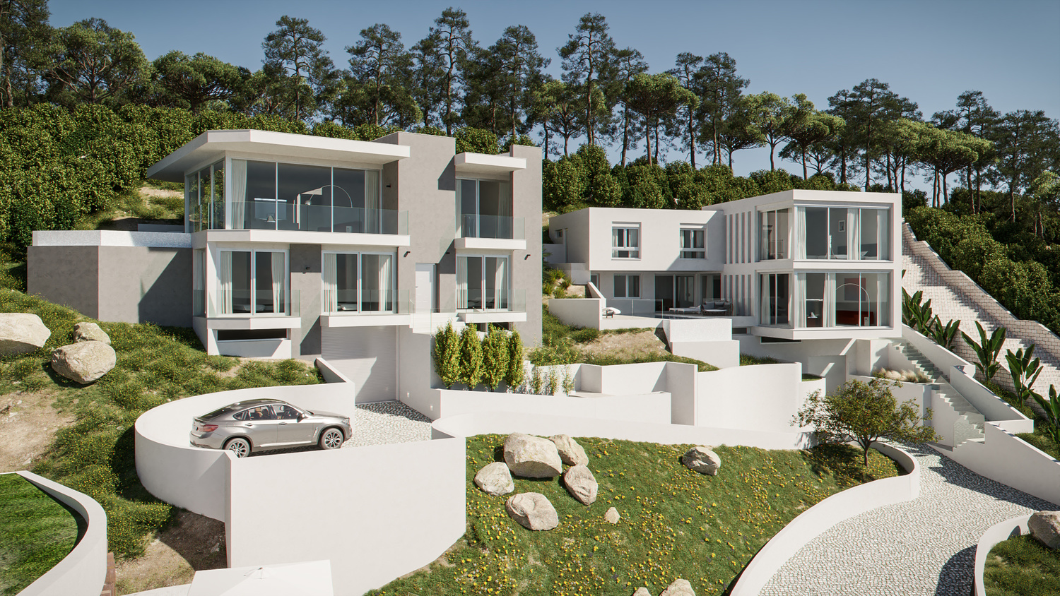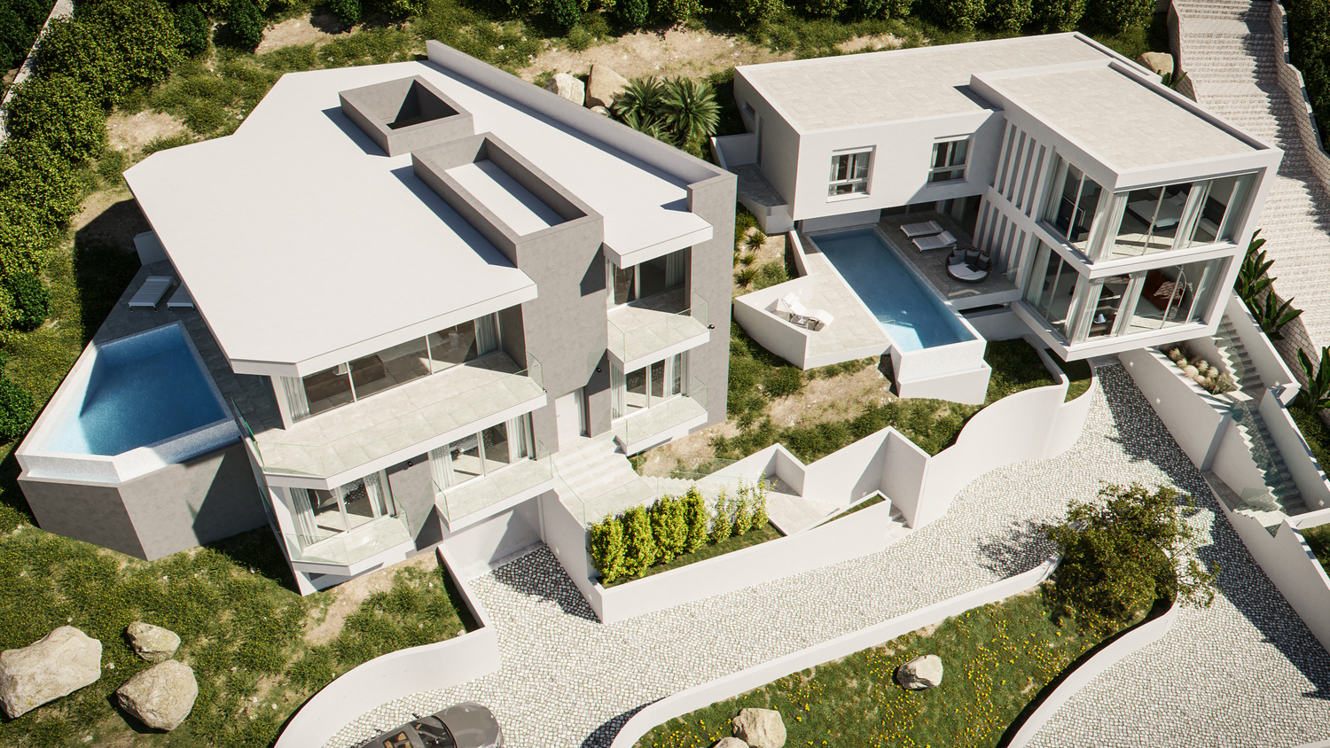 These new modern contemporary villas will be constructed with high-end building materials and the design will be with high ceilings for the living areas and the bedrooms with large glass front windows for optimal light flooded spaces.