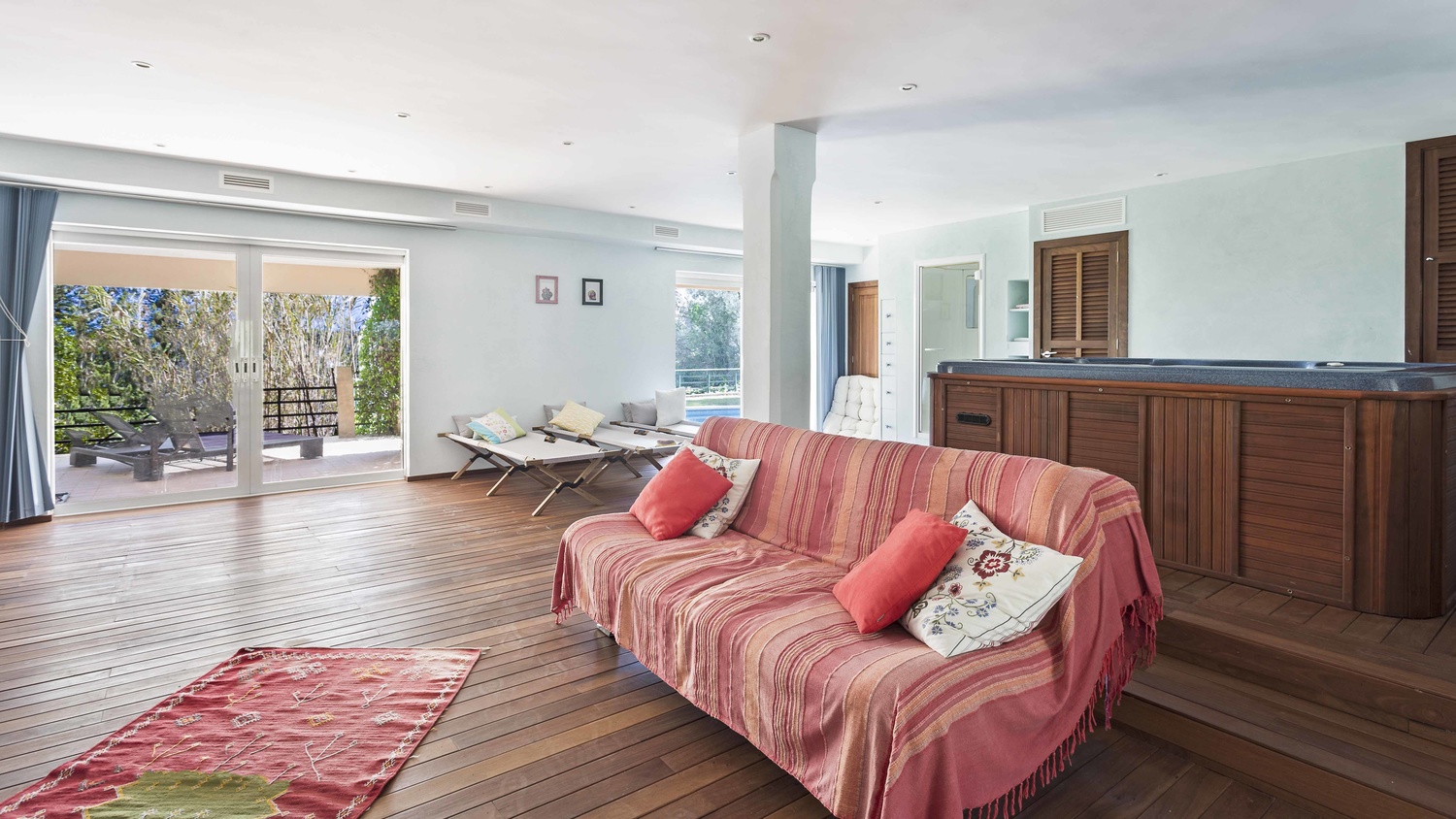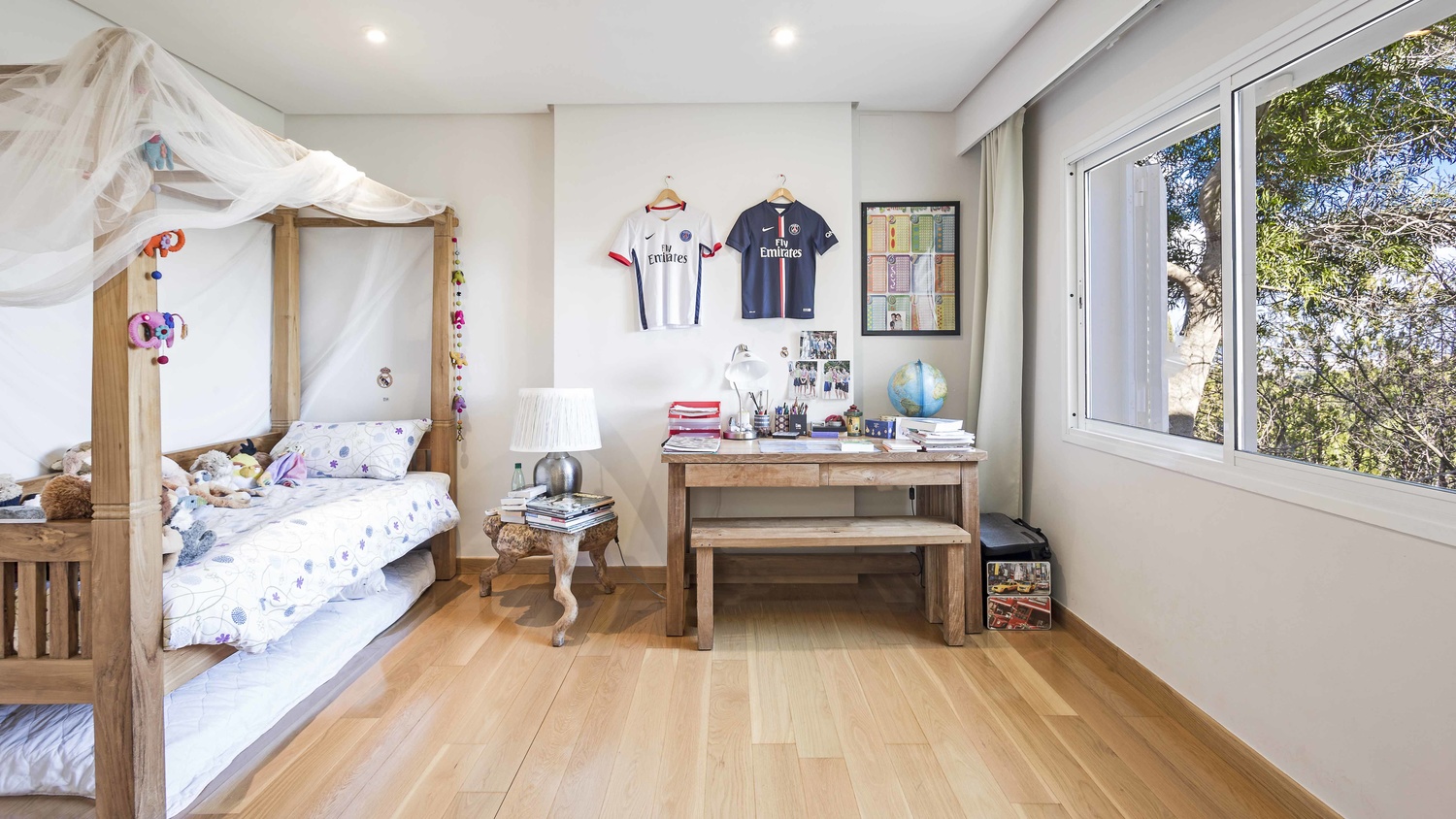 This bright and spacious family villa is set on a flat plot of 2.000 m2. The living area of 450 m2 plus 100m2 terraces consisting of 4 bedrooms and 4 bathrooms en suite is distributed over 2 floors as follows: