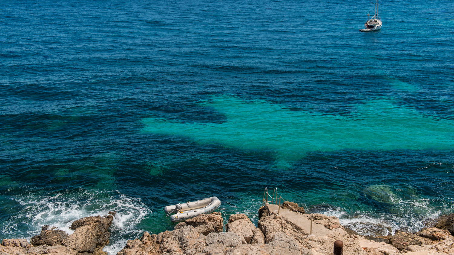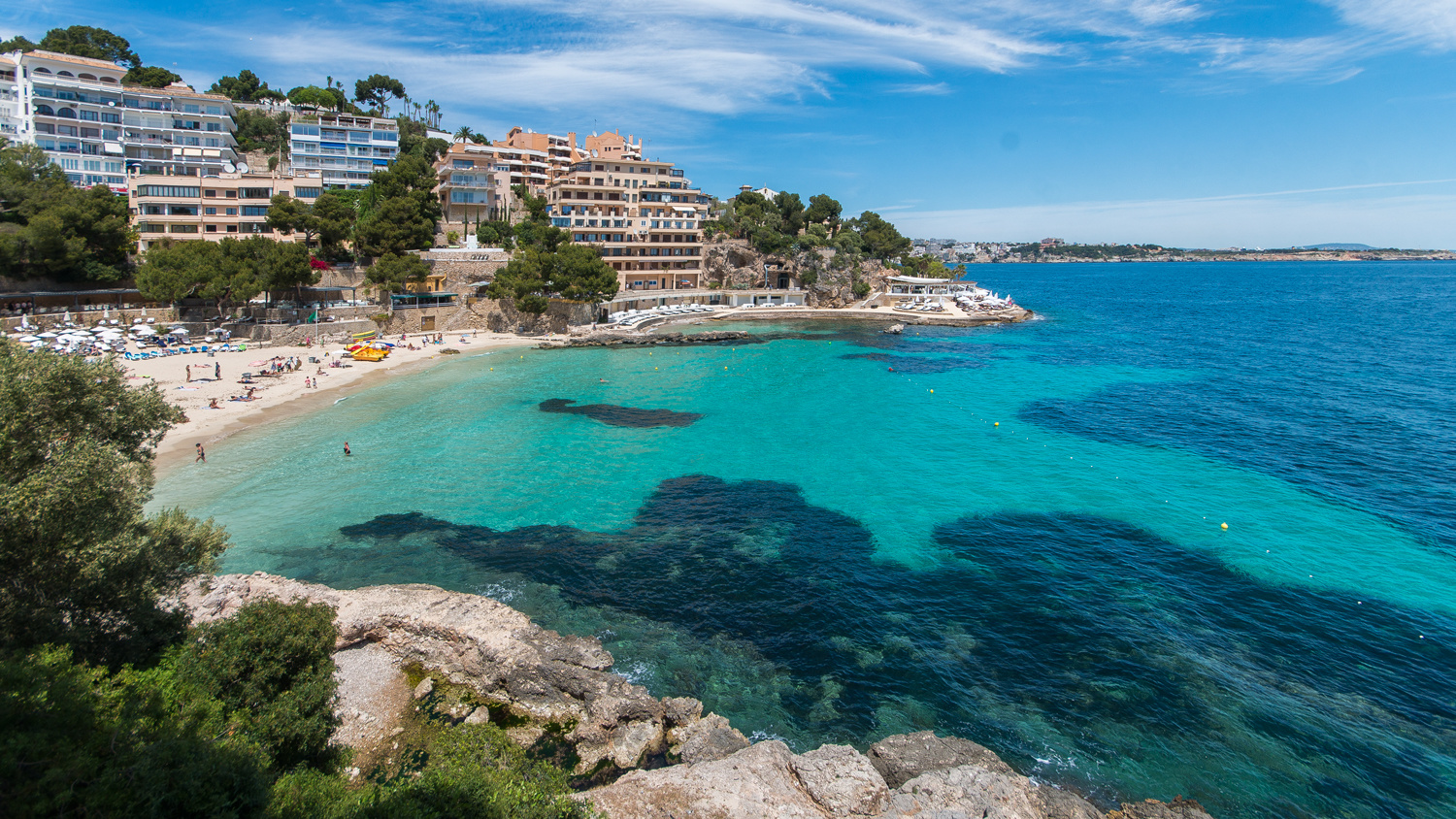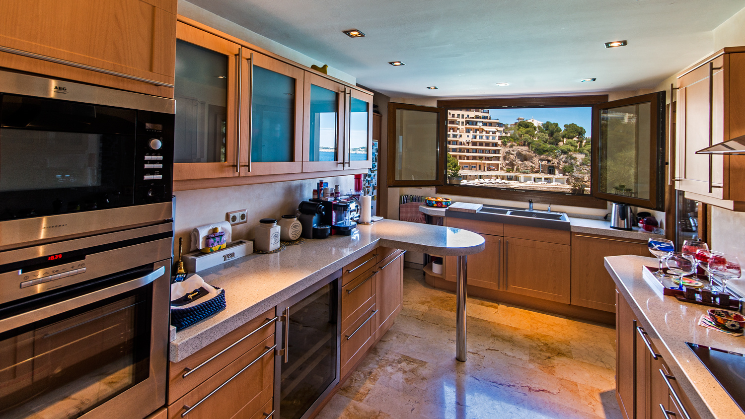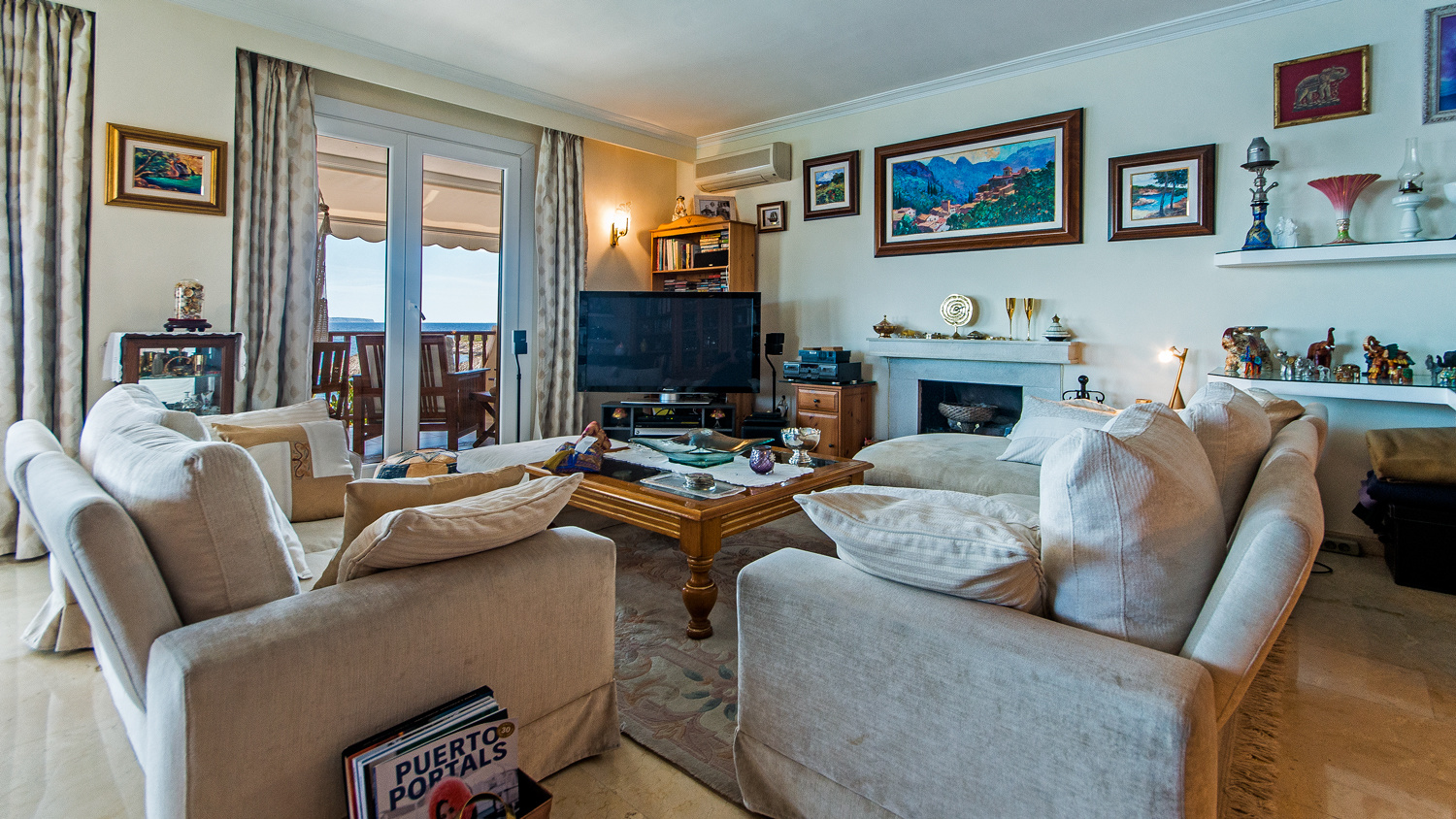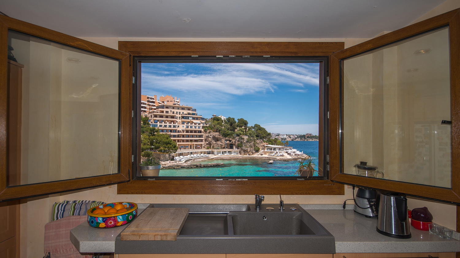 This tranquil, front- line, elevated waterfront property is located right on the rocks overlooking the open sea and the pretty Islands of Illetas. The sandy beach can be found on to the left and the rear from the apartment.