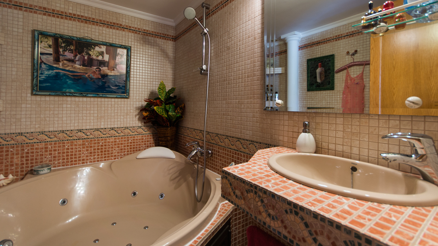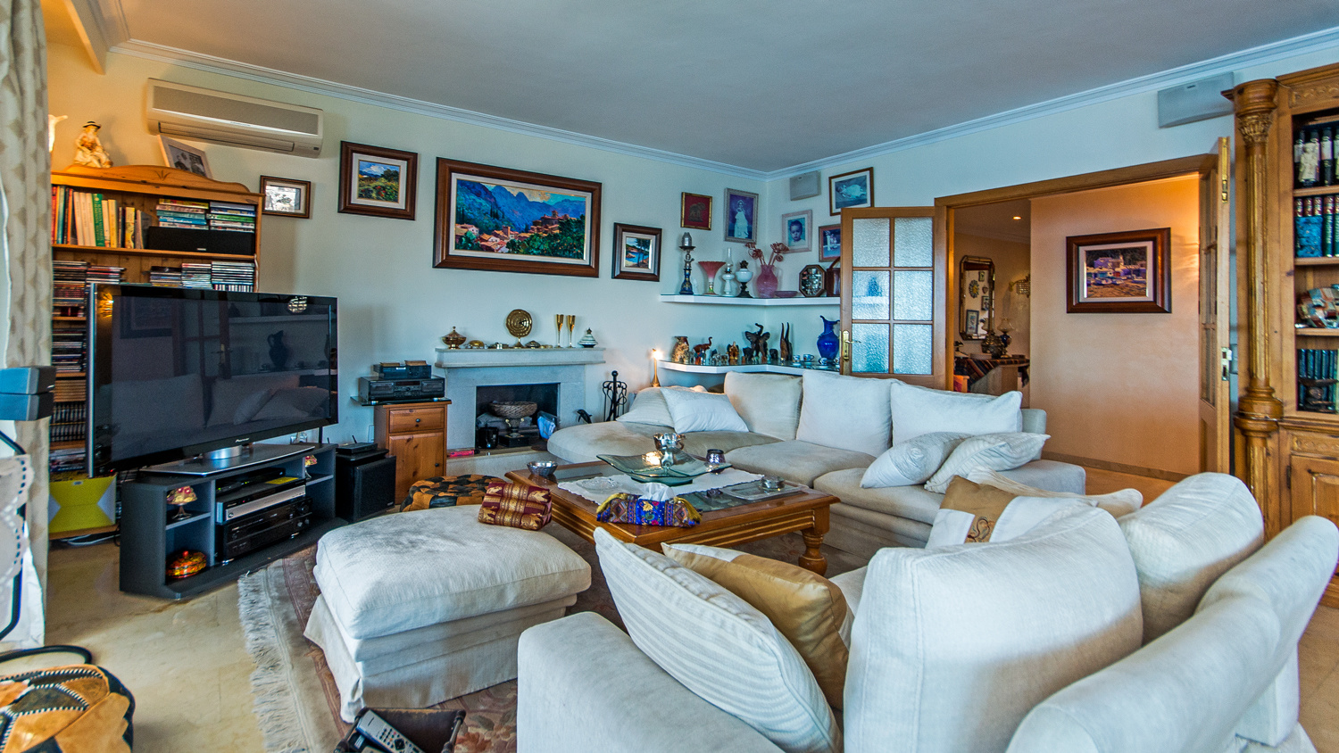 Entrance hall, bright and spacious living and dining area with fireplace, kitchen, utility room, 1 master bedroom with bathroom en suite , 3 further bedrooms and 2 bathrooms one of which has a large jacuzzi, 3 surrounding balconies with stunning sea view. The main balcony has been fitted with glass panels which can be closed on colder days.