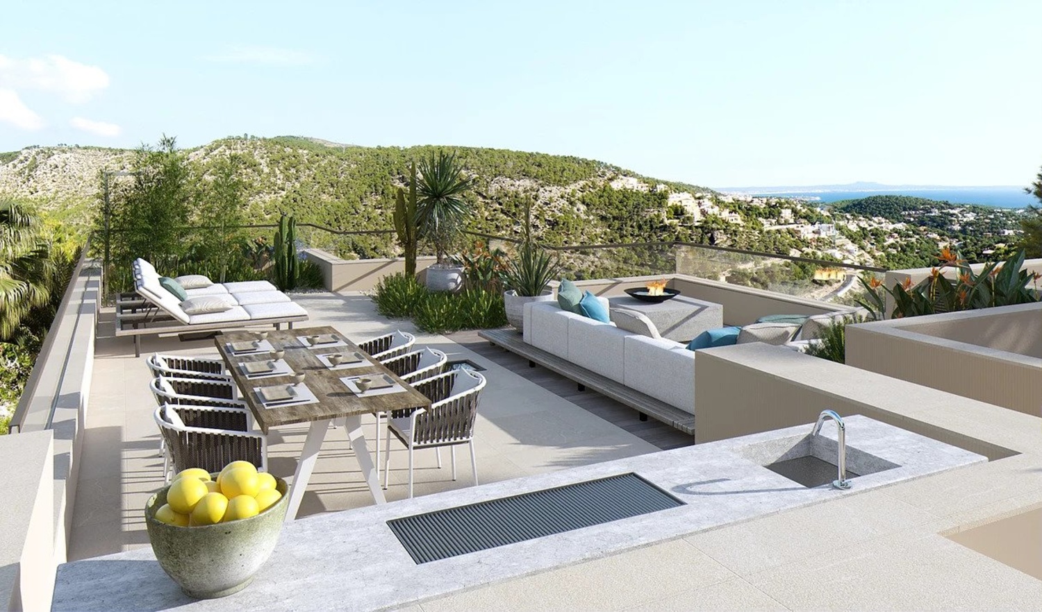 Deck floor (roof terrace): Above all of this is the deck floor (roof terrace) which will offer various sections for dining, relaxing and sunbathing as well as a hidden shower. There is also an outdoor kitchen, perfect for outdoor dining whilst you take in the amazing views towards Palma and Cabrera.