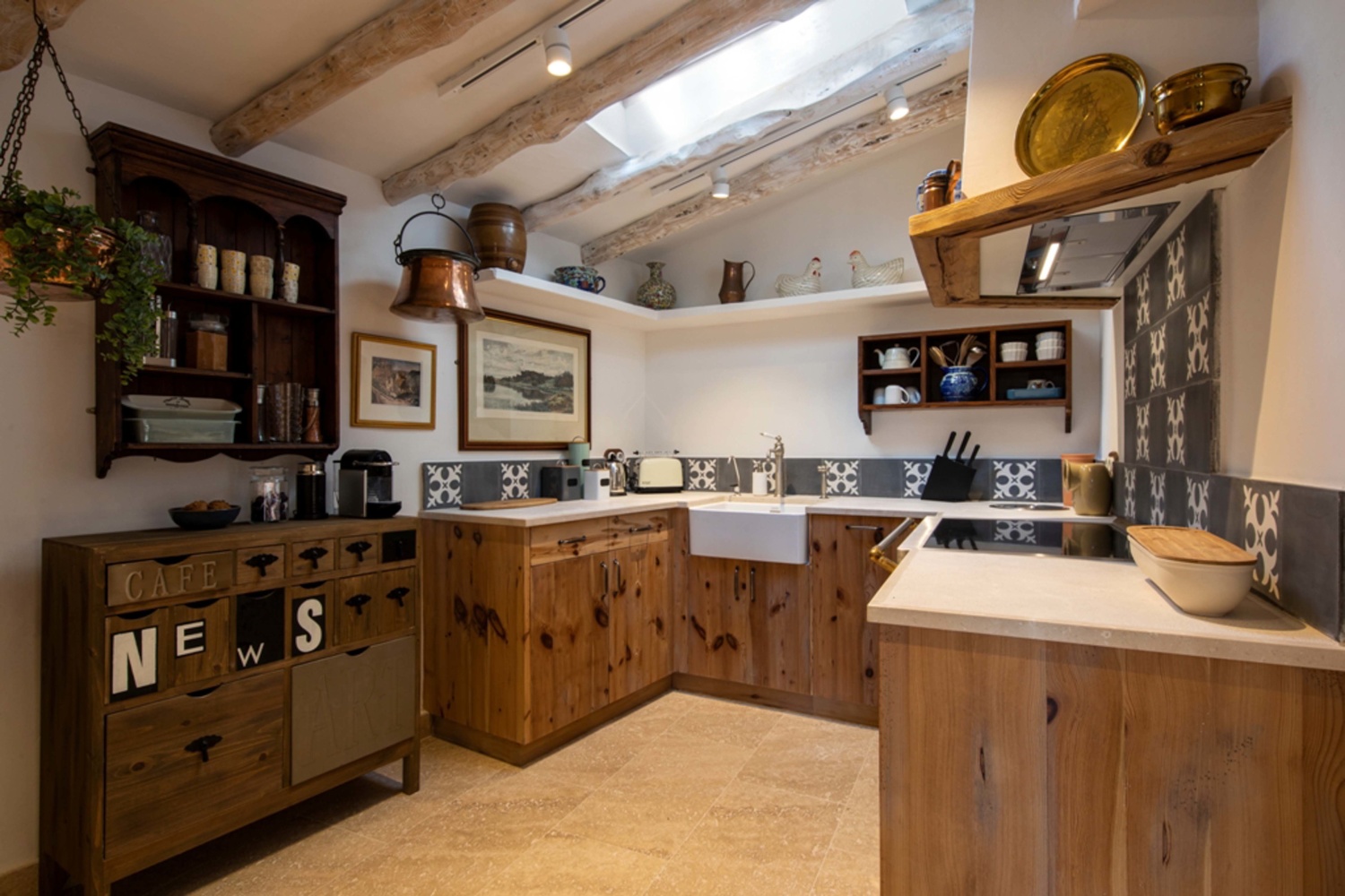 The property maintains some authentic characteristics as per its original construction. Some great examples are the wooden beams and original tile floors, however, they have been combined with modern comforts like underfloor heating and double glazing. Moving outside you can find a large outdoor terrace with kitchen and BBQ area. The large outdoor pool is surrounded by a Mediterranean garden and various chill areas. The cottage has a large parking area for 5 or more cars at the back of the garden.