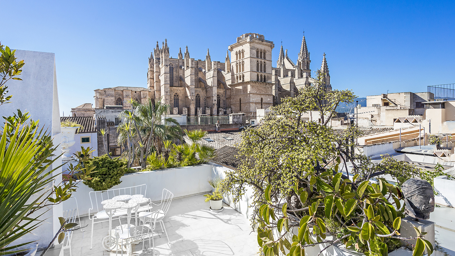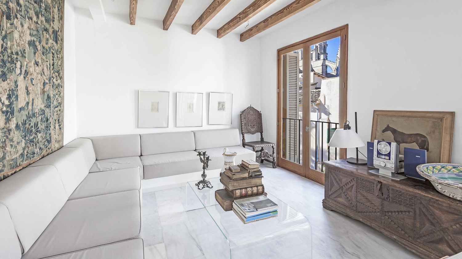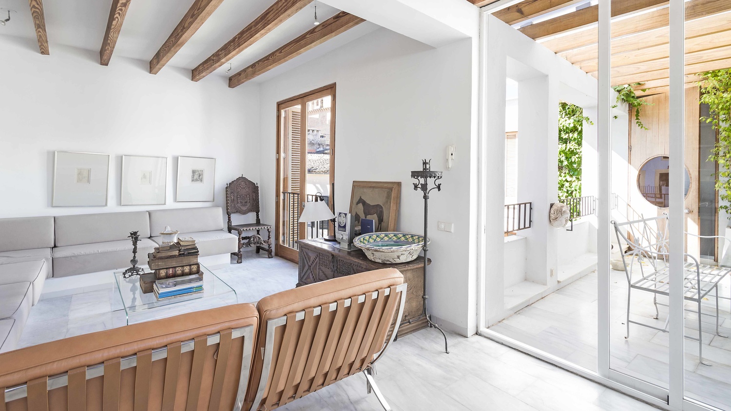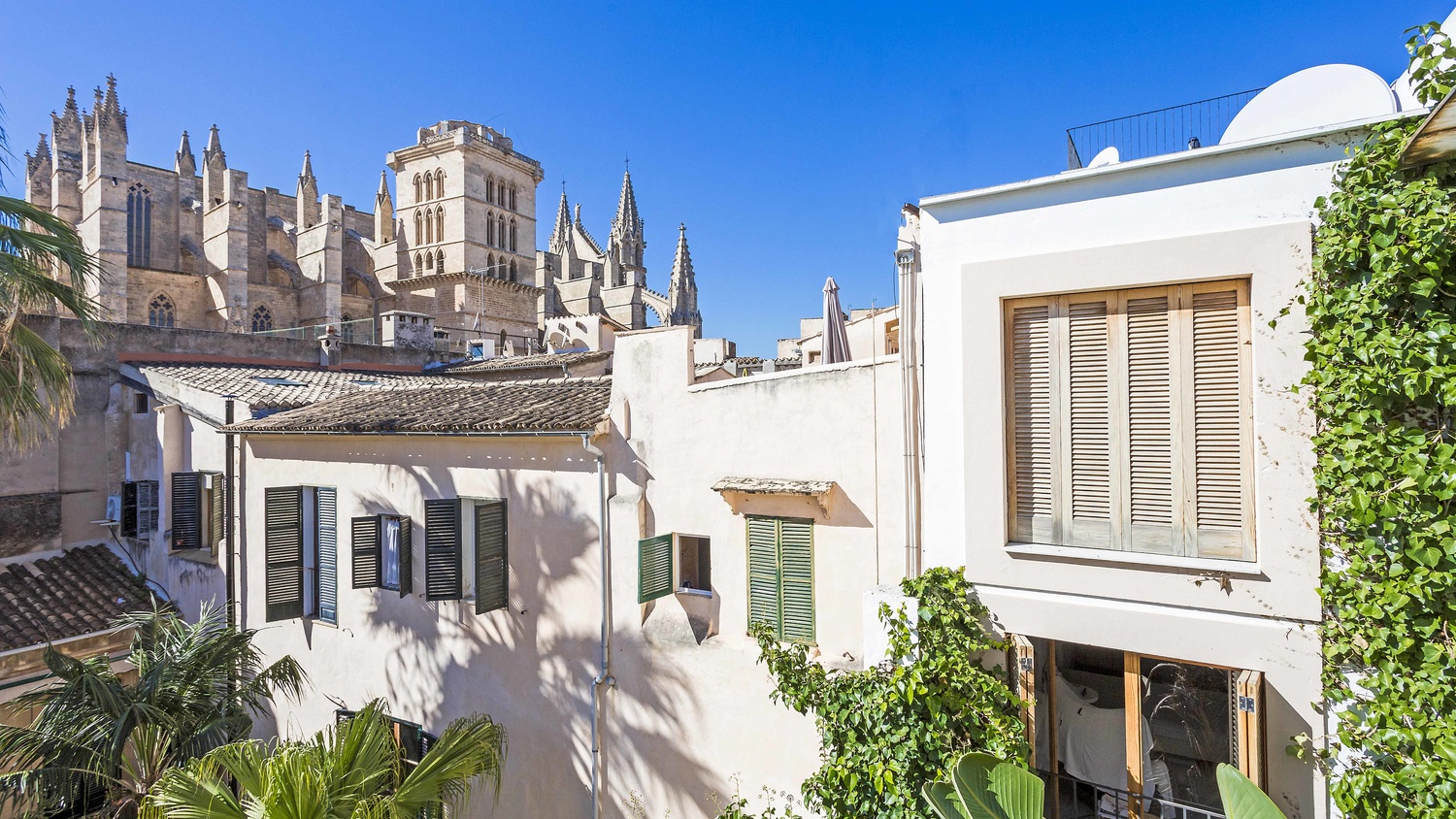 What makes this house so special is its very sunny and quiet location in the Old Town of Palma, only 100 metres away from the cathedral and unobstructed dream view over the district and to the sea. It should be rather difficult to find something comparable in the Old Town of Palma.