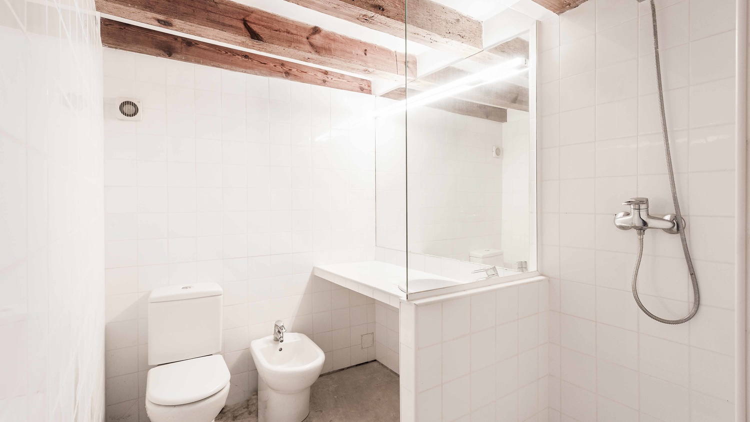 On the first floor there is a bedroom with bathroom en-suite and a living room with double height ceilings. A mezzanine, which extends over more than half of the living room offers plenty of space to install an office or library here.