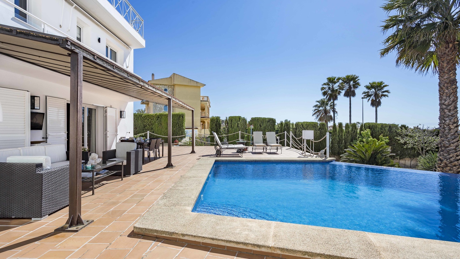The villa was built in 2000 and is in good condition and well maintained on a large extensive plot from 1295 sqm with an outdoor pool and various outside terraces (one of them on the top) to enjoy the sun and ideal to entertain.