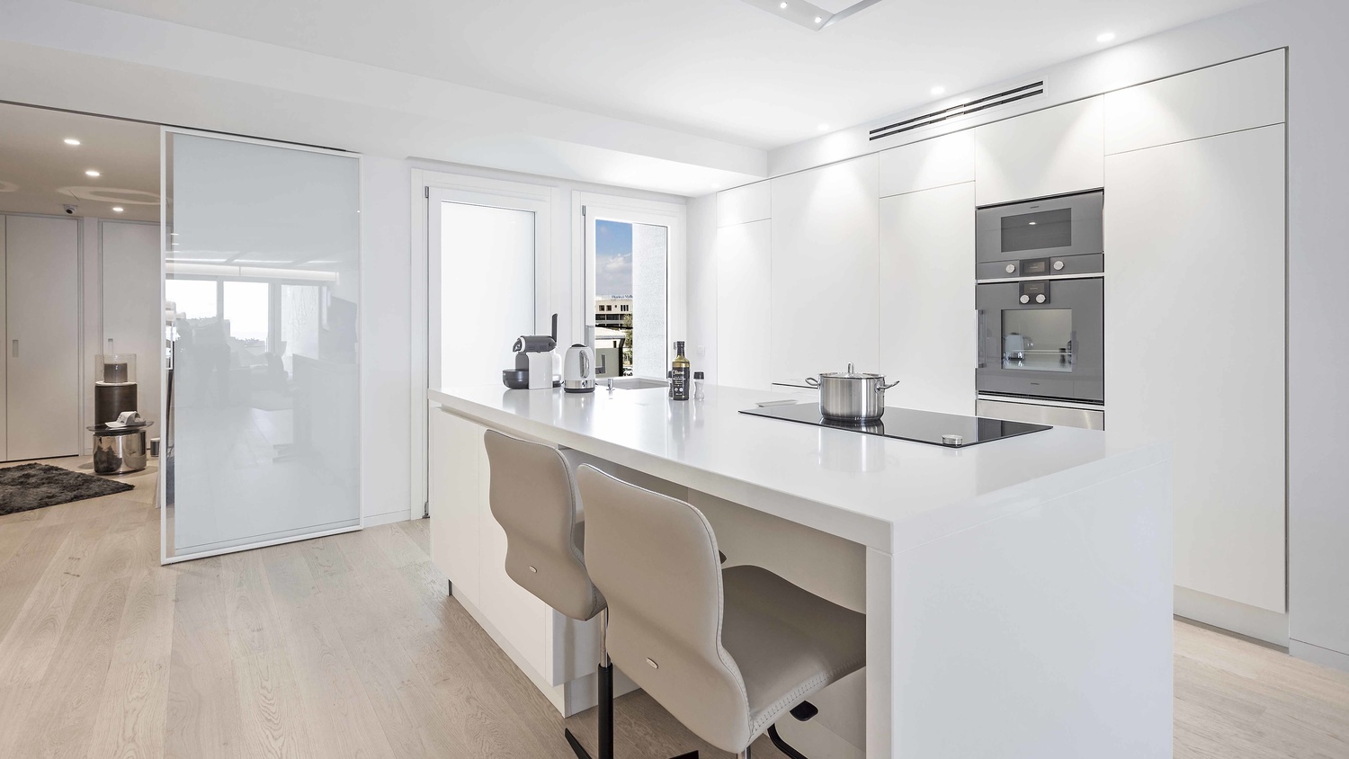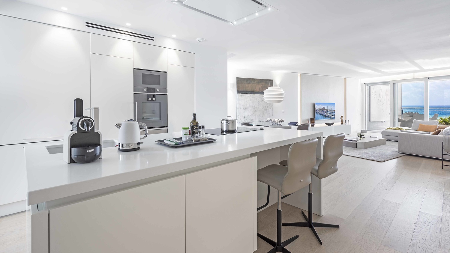 In a highly demanded area of Portixol, located between the romantic harbour and beach, this apartment offers pure luxury. The most exclusive furnishing with luxurious bathrooms, elegant wooden floors, underfloor heating and a Bulthaup-kitchen with Gaggenau devices. 180 m2 living surface including terraces guarantee a generous living experience, the South orientation wonderful sunny days, the exposed location in first line the breathtaking view.