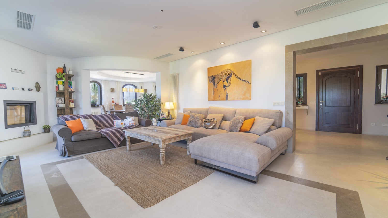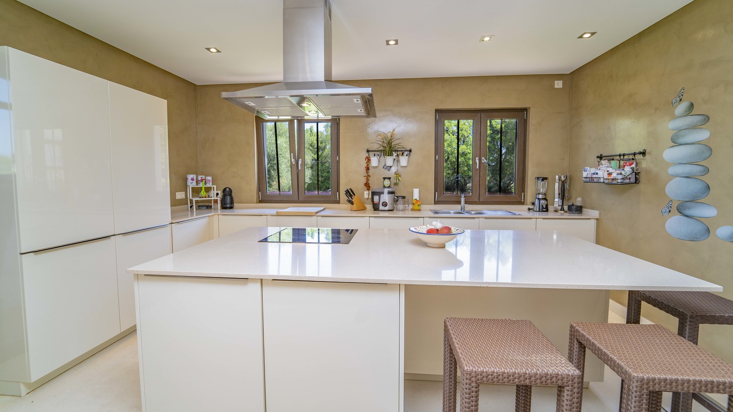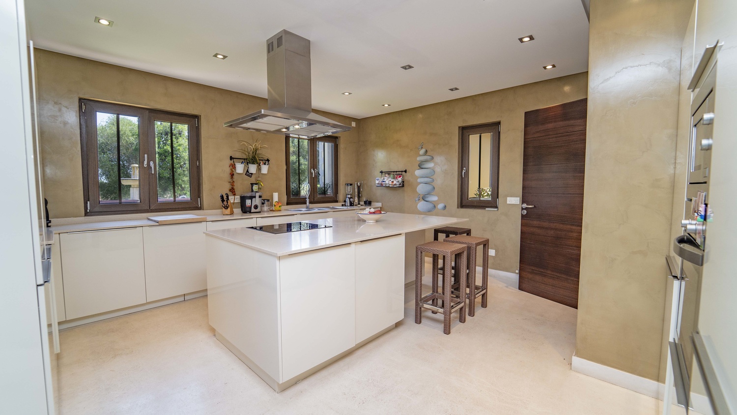 Good fittings and building quality , oak floors and natural stone floors, double glazed windows, recessed lightening, built in wardrobes. Central heating, part under floor heating, air condition hot/cold. Alarm system, solar panels, own water well.