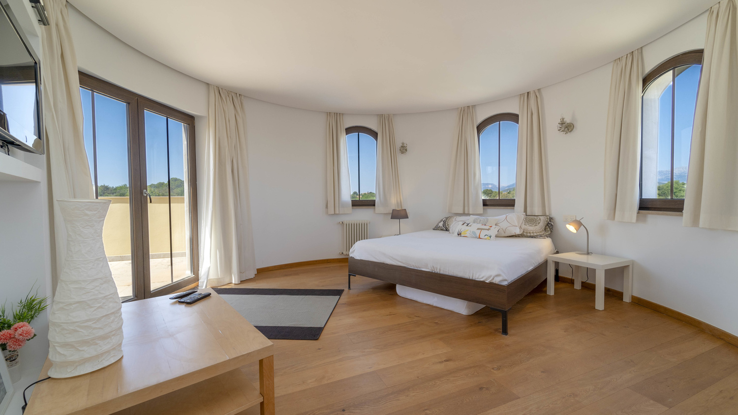 Tower: Bedroom or office with en suite bathroom and pre installation for a kitchenette, access to the large terrace with great panoramic views over Muro, Llubi and towards the Bay of Alcudia.