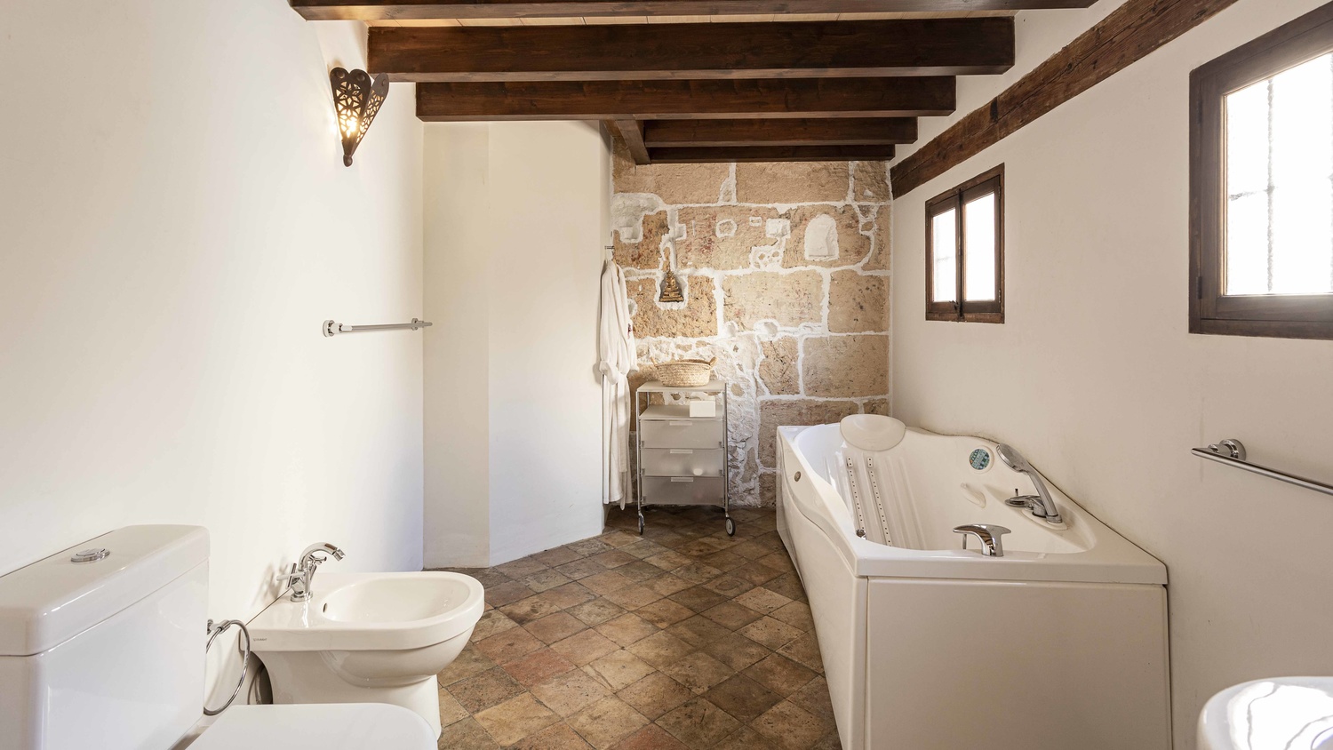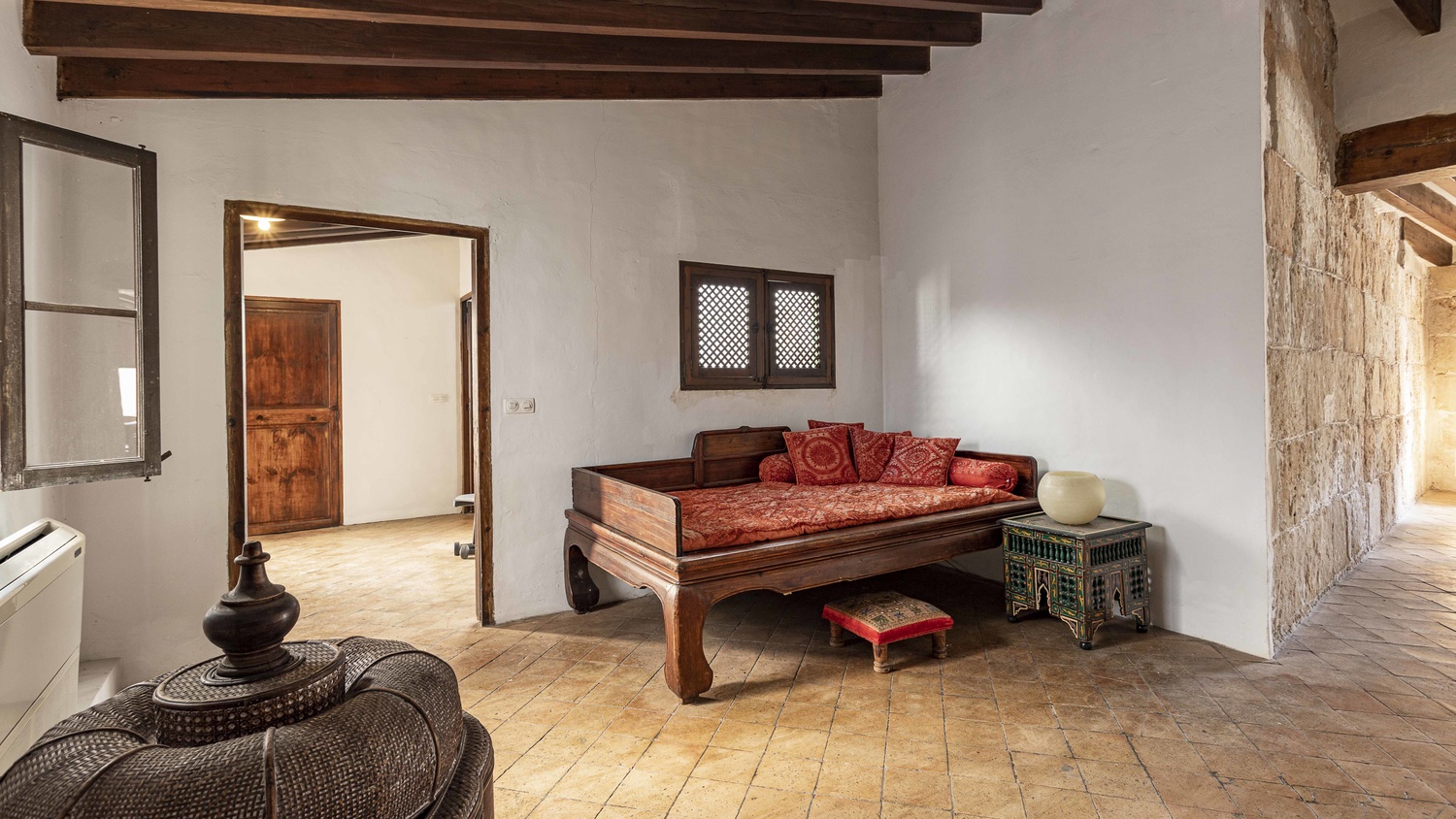 The third floor of the building also has a separate entrance for the loft-studio of about 80m² with kitchen, large living-dining room, bathroom and staircase leading up to the bedroom. On this floor, there is also a second separate apartment whose current layout boasts a large open plan bedroom-living-dining area with fireplace, high beamed ceilings and you also find another bedroom with dressing room, bathroom, and kitchen.