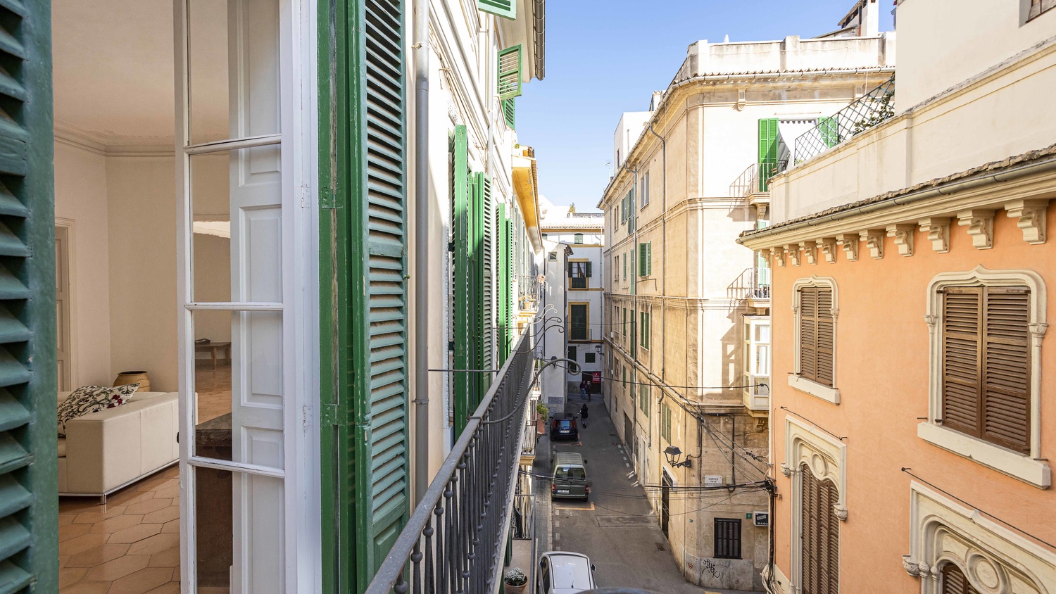 The apartment is located in the area of La Lonja from which the high-end shopping street Born is a mere 50-meter walk where you can find plenty of fashionable shops and restaurants. Palmas sandy beach is also reachable on foot.