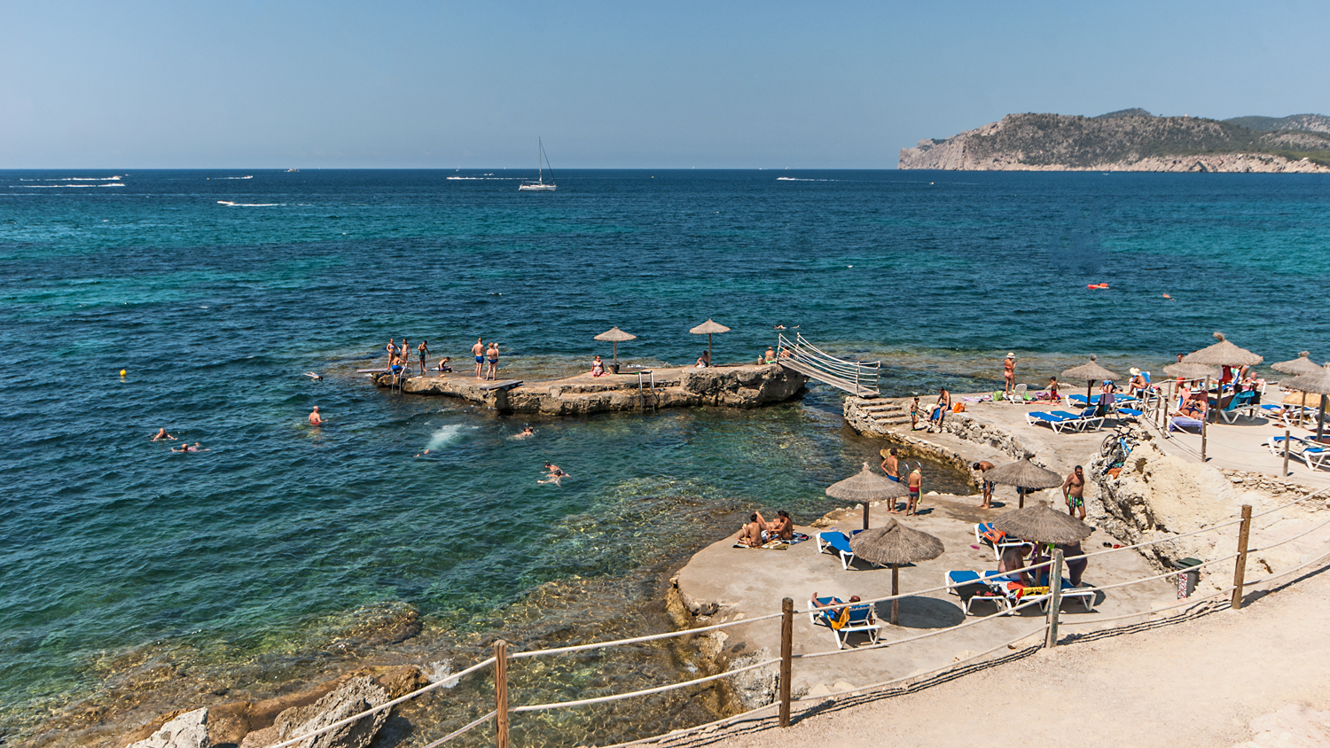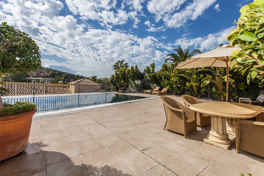 Costa de la Calma is a quiet and exclusive residential area, yet close to Palma (17 minutes), the airport (23 minutes), and has its own beach access/beach bar within walking distance. The sandy beaches of Paguera and Santa Ponsa are a few minutes drive and there are also several golf courses, less than 10 minutes drive away.
