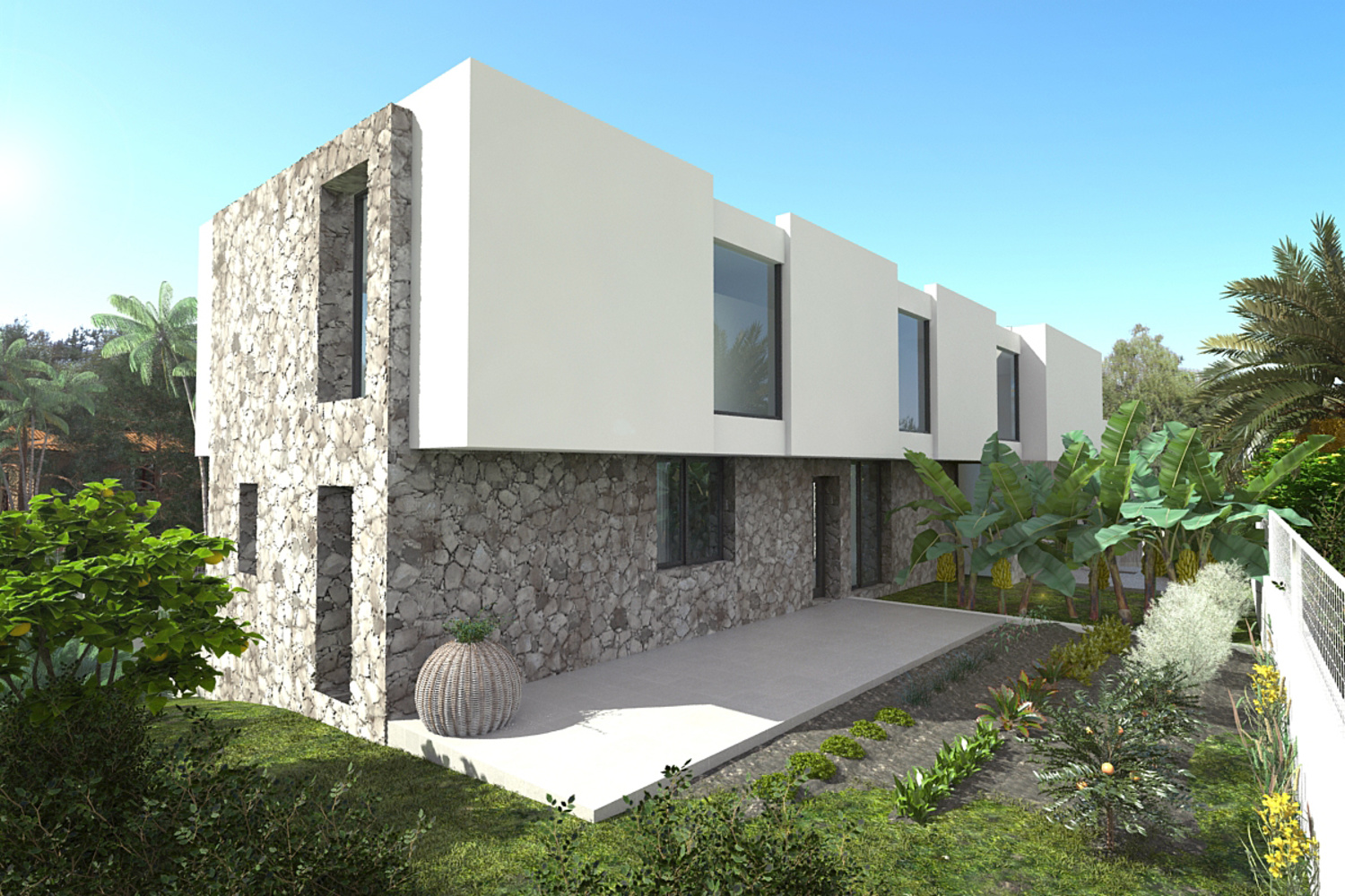 The net living area of 300 m2 plus terraces is distributed over two floors.