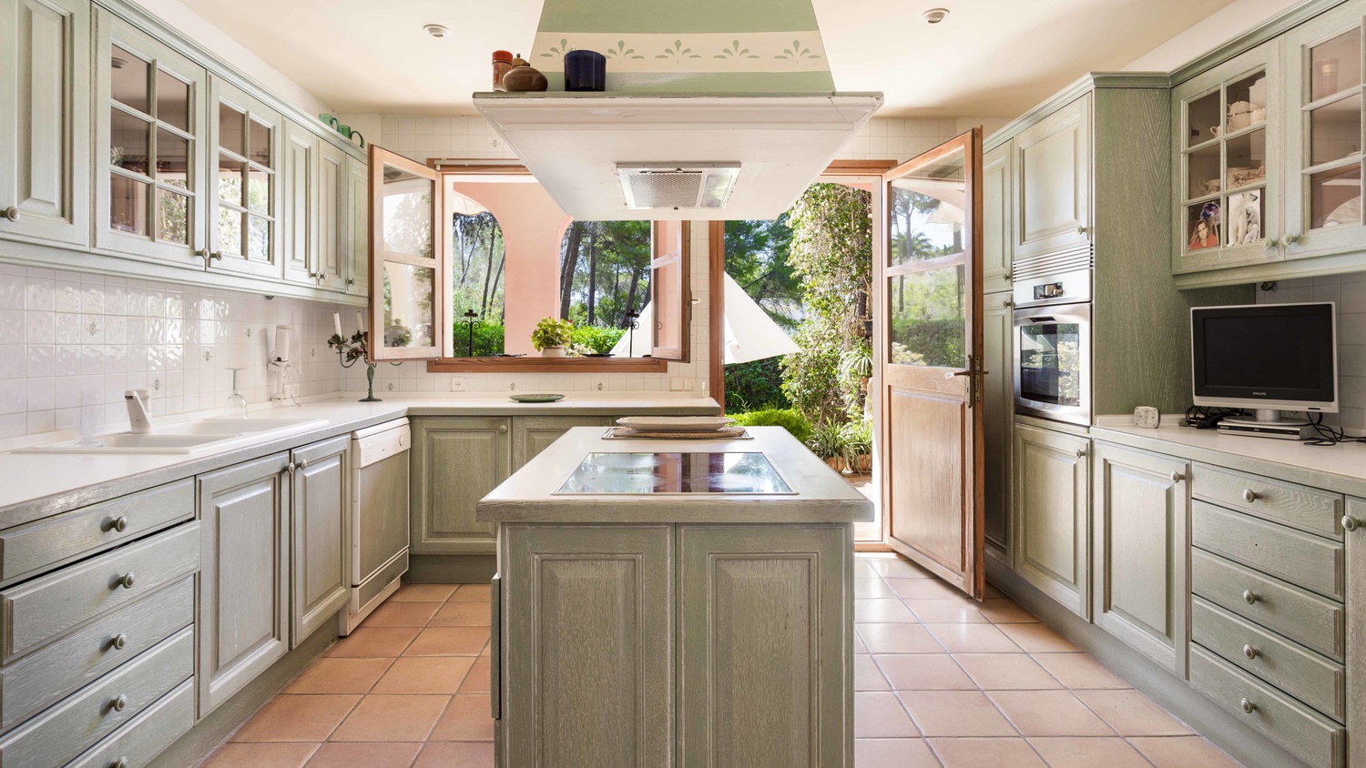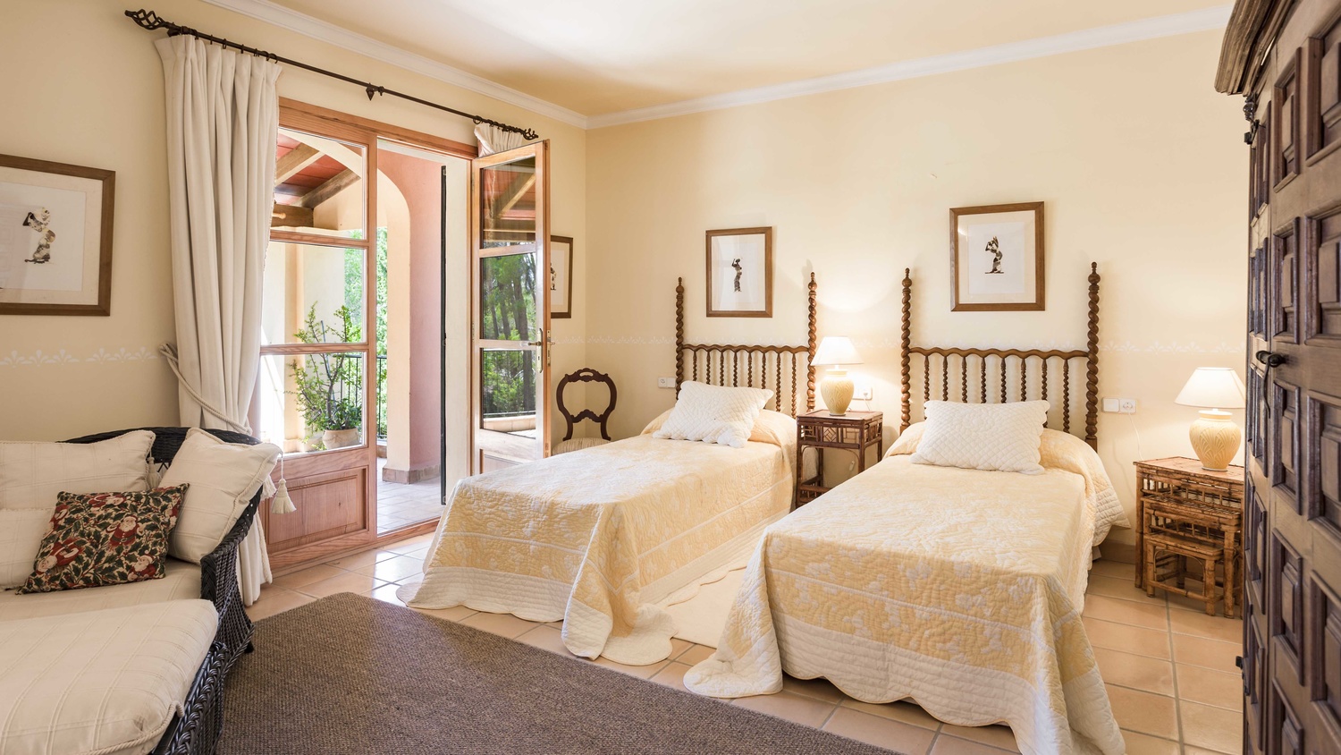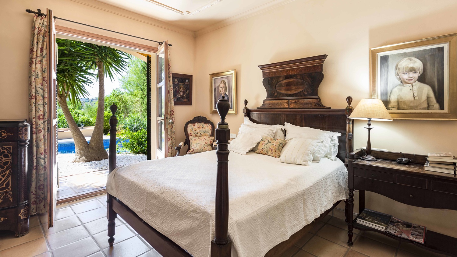 On the ground floor, the same level as the forecourt at the north as well as the garden with swimming pool at the south of this property, there is a large living room with fireplace, a guest bathroom and a kitchen with utility room. This level also locates the master bedroom with dressing room and bathroom en suite, as well as the separate guest apartment with 1 bedroom and bathroom en suite.