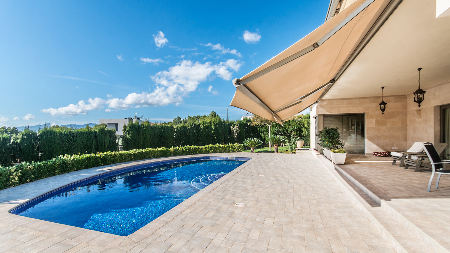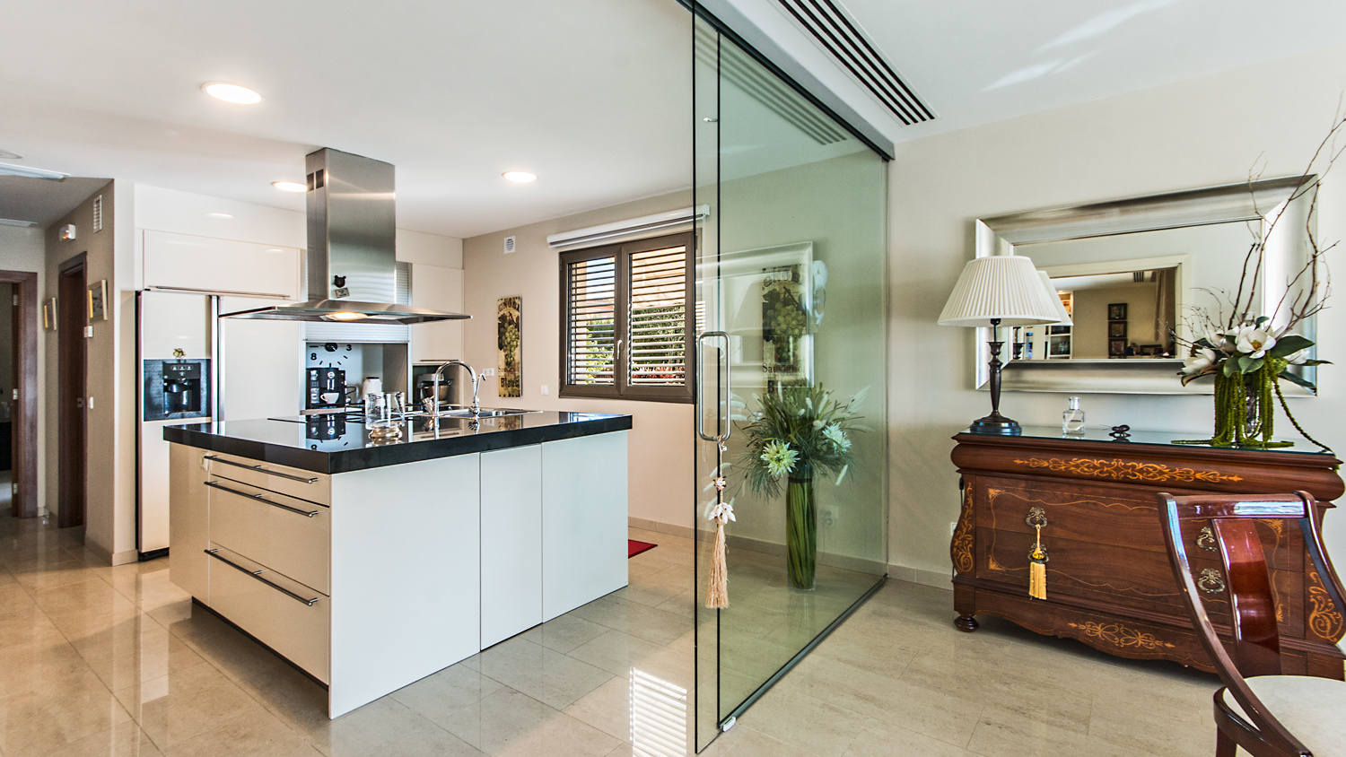 The villa has been finished to a very high standard, and provides a spacious lounge with distant views to the bay of Palma.