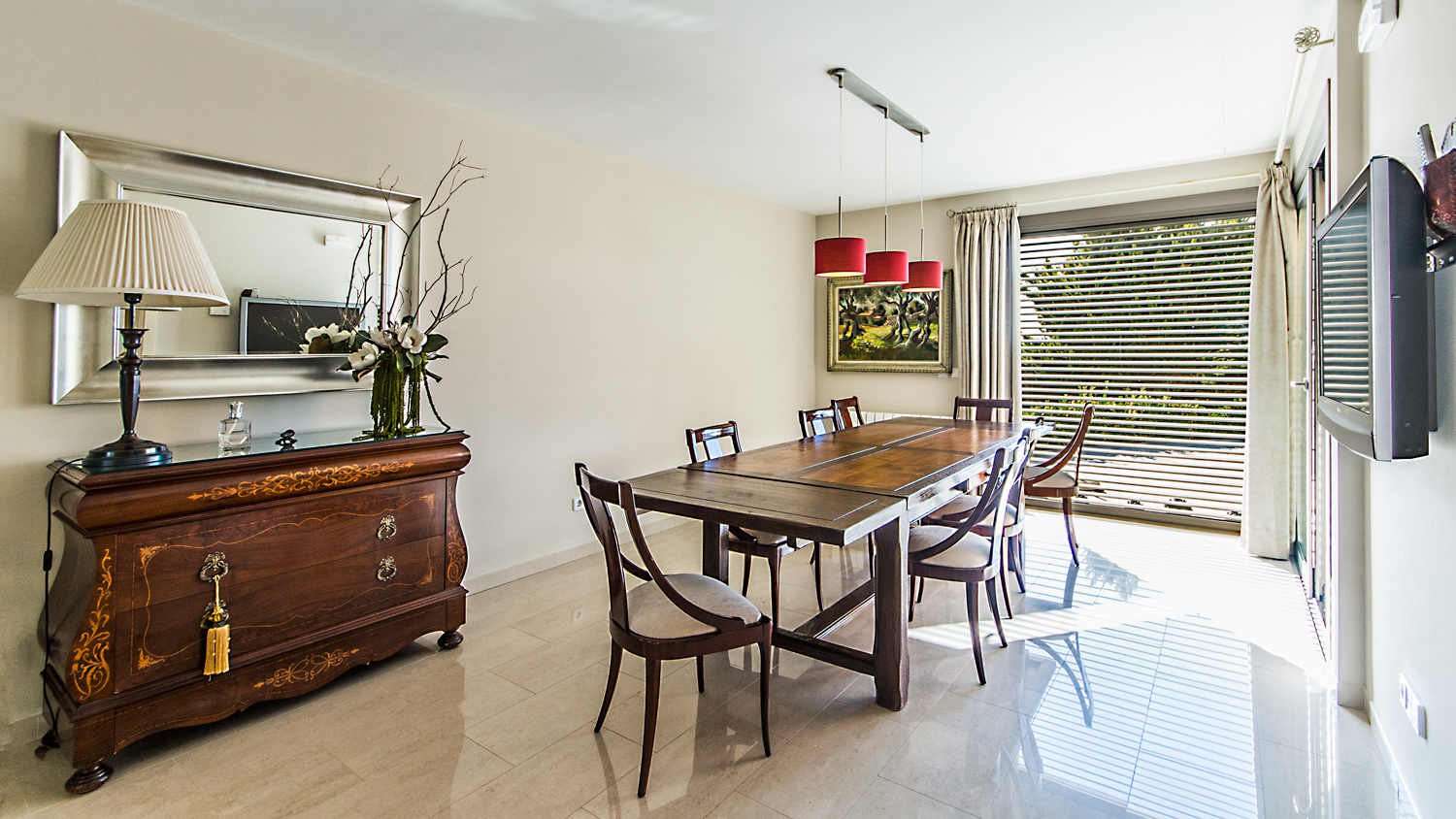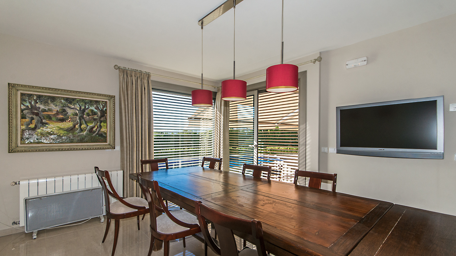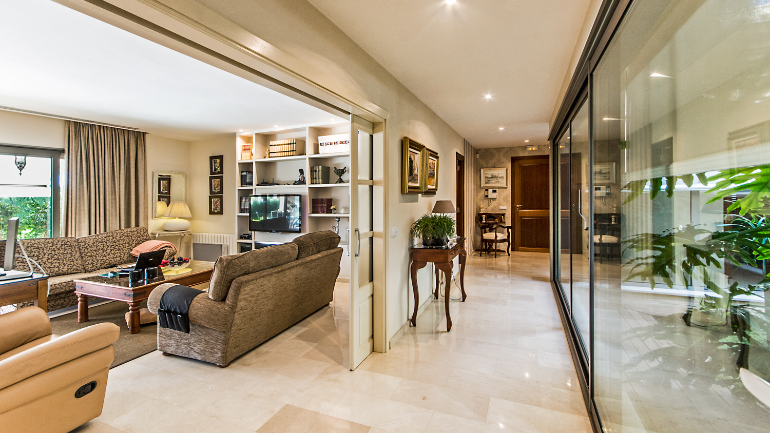 Living room, dining room, kitchen with Miele appliances, four bedrooms and two bathrooms, one of them en suite. All rooms surround an interior patio which provides the main floor with plenty of daylight: 2 staff bedrooms, bathroom, spa area with sauna, Jacuzzi, kitchen with dining area for entertaining, garage for three cars and machine room.