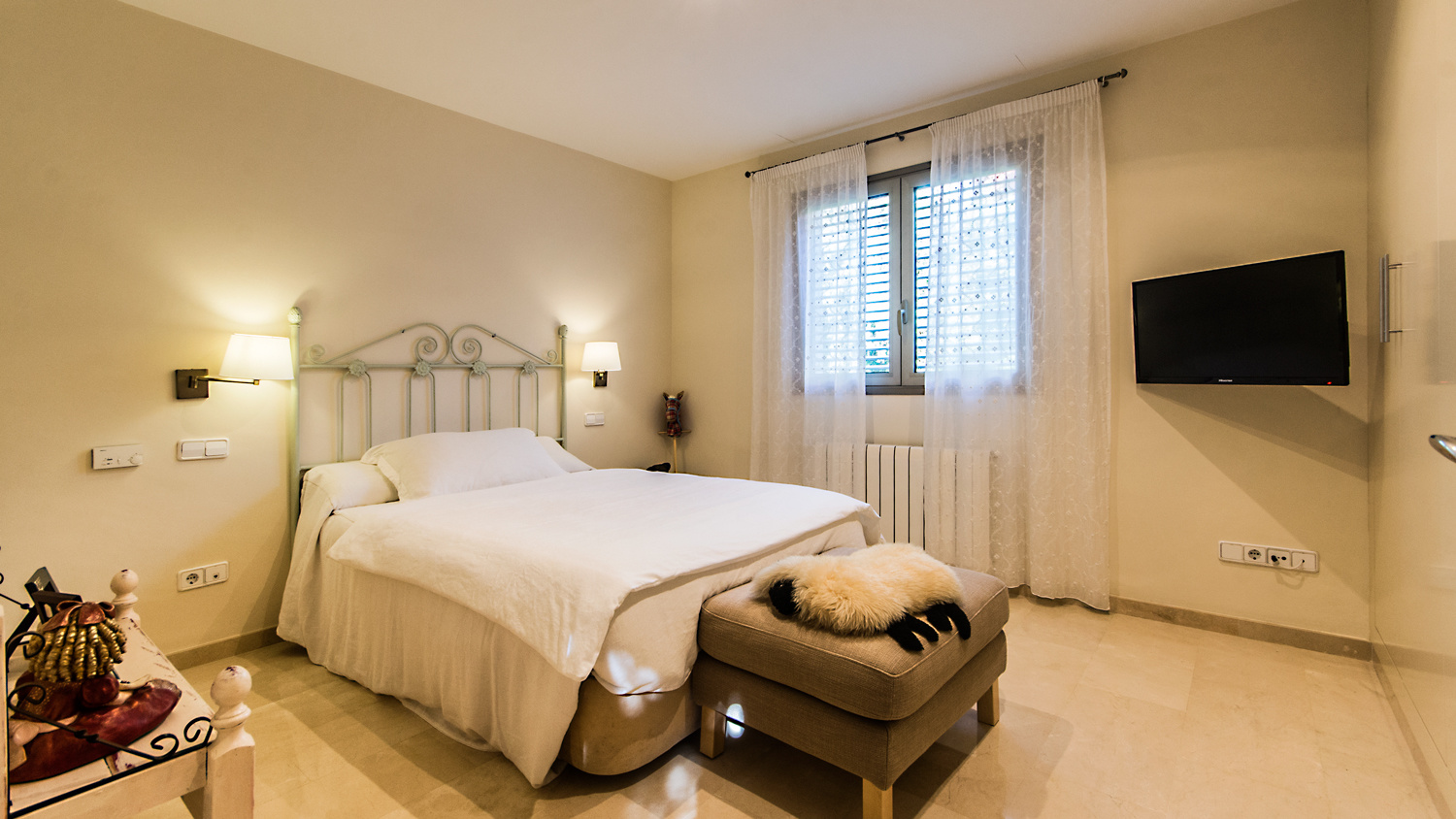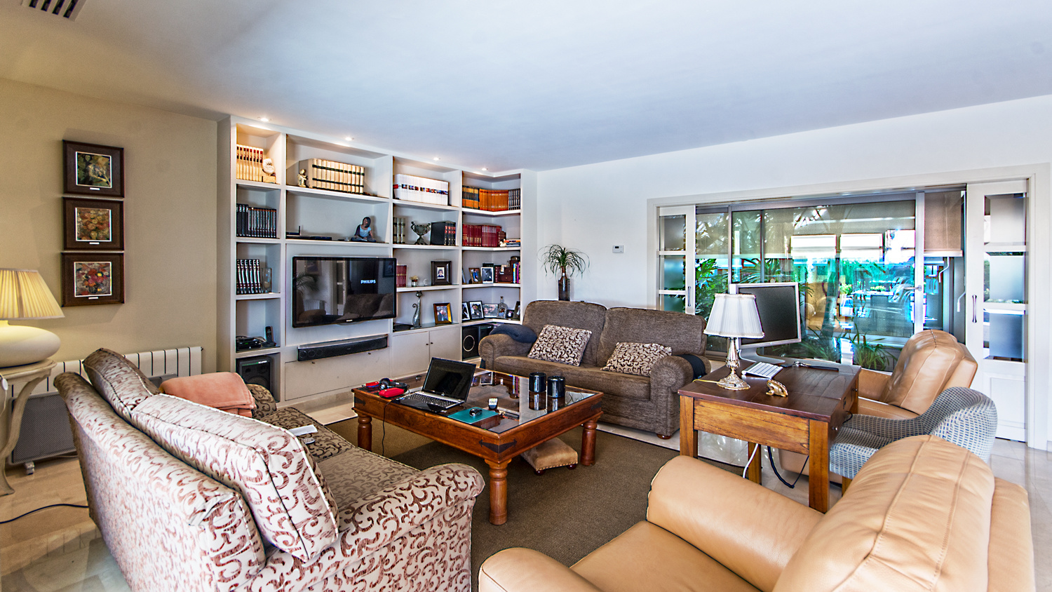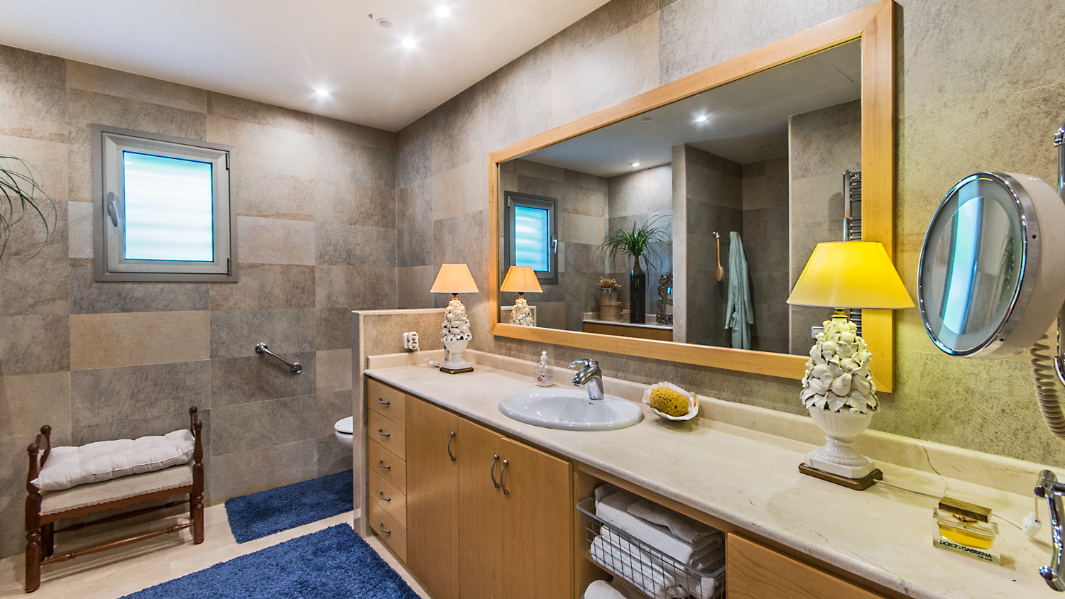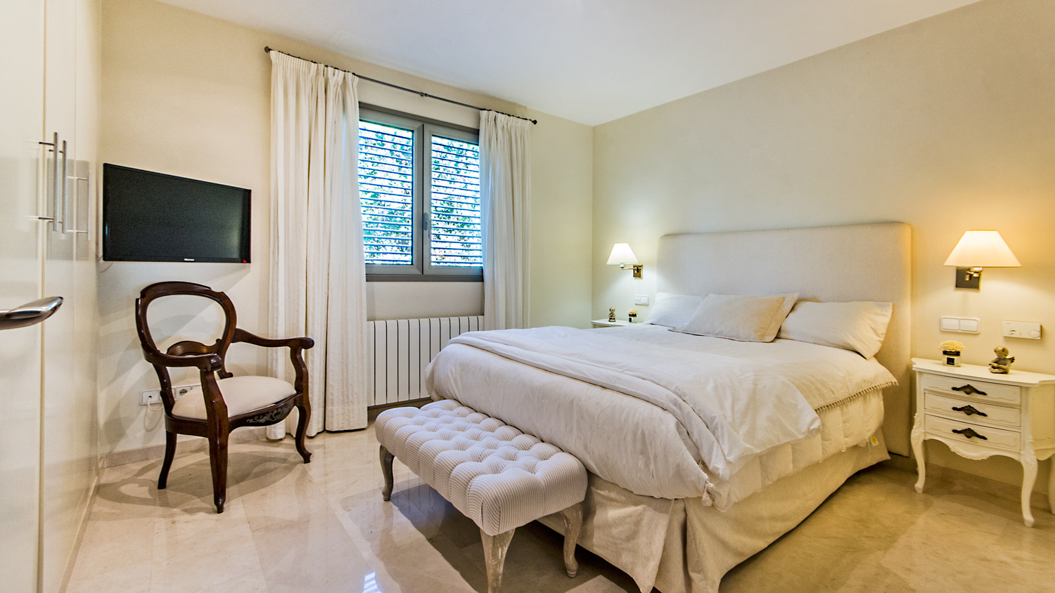 Living room, dining room, kitchen with Miele appliances, four bedrooms and two bathrooms, one of them en suite. All rooms surround an interior patio which provides the main floor with plenty of daylight: 2 staff bedrooms, bathroom, spa area with sauna, Jacuzzi, kitchen with dining area for entertaining, garage for three cars and machine room.