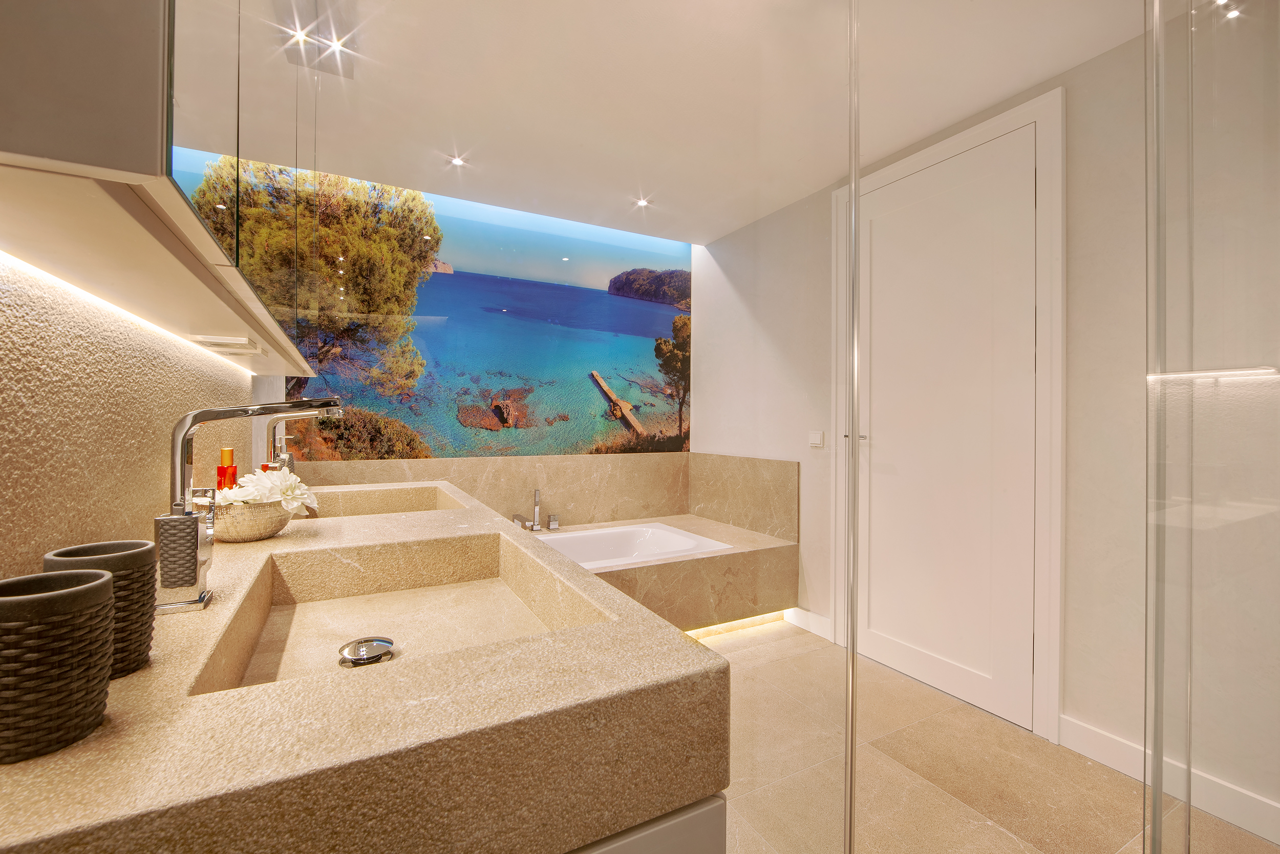 Outside, the typical natural Mallorcan stone facades in warm Mediterranean colors, are skillfully combined with modern architectural elements.