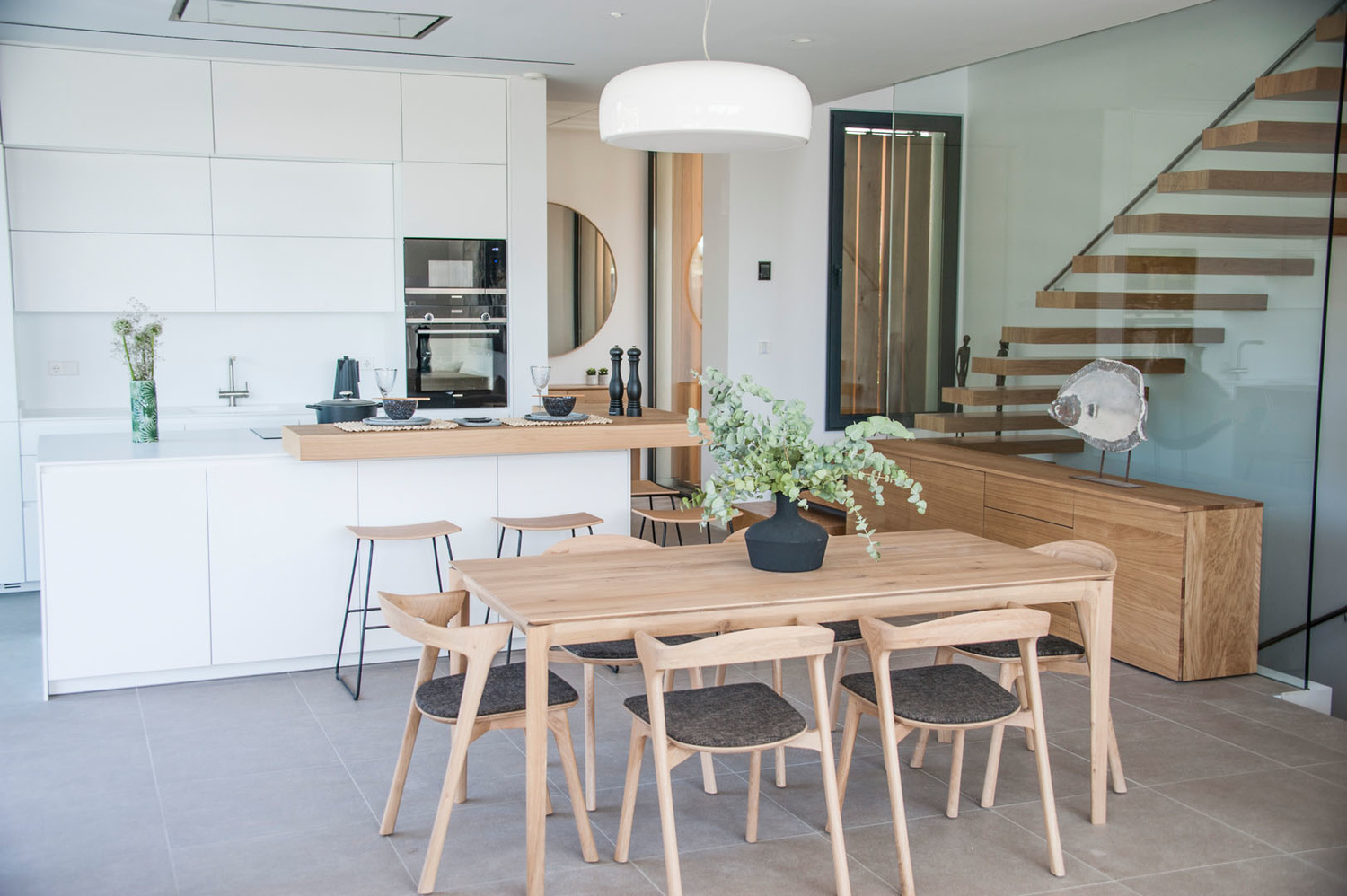 An elegant and contemporary design throughout, when you walk in the front door you will be greeted by a large, open-plan space. On this ground floor, you can find a beautifully-finished, modern kitchen, dining area and living space. Encircled by enormous glass panes, there is a delightful sense of harmony between the interior and the outdoor space and you can open out onto the terrace and make the most of the pool and garden in those luxurious properties.