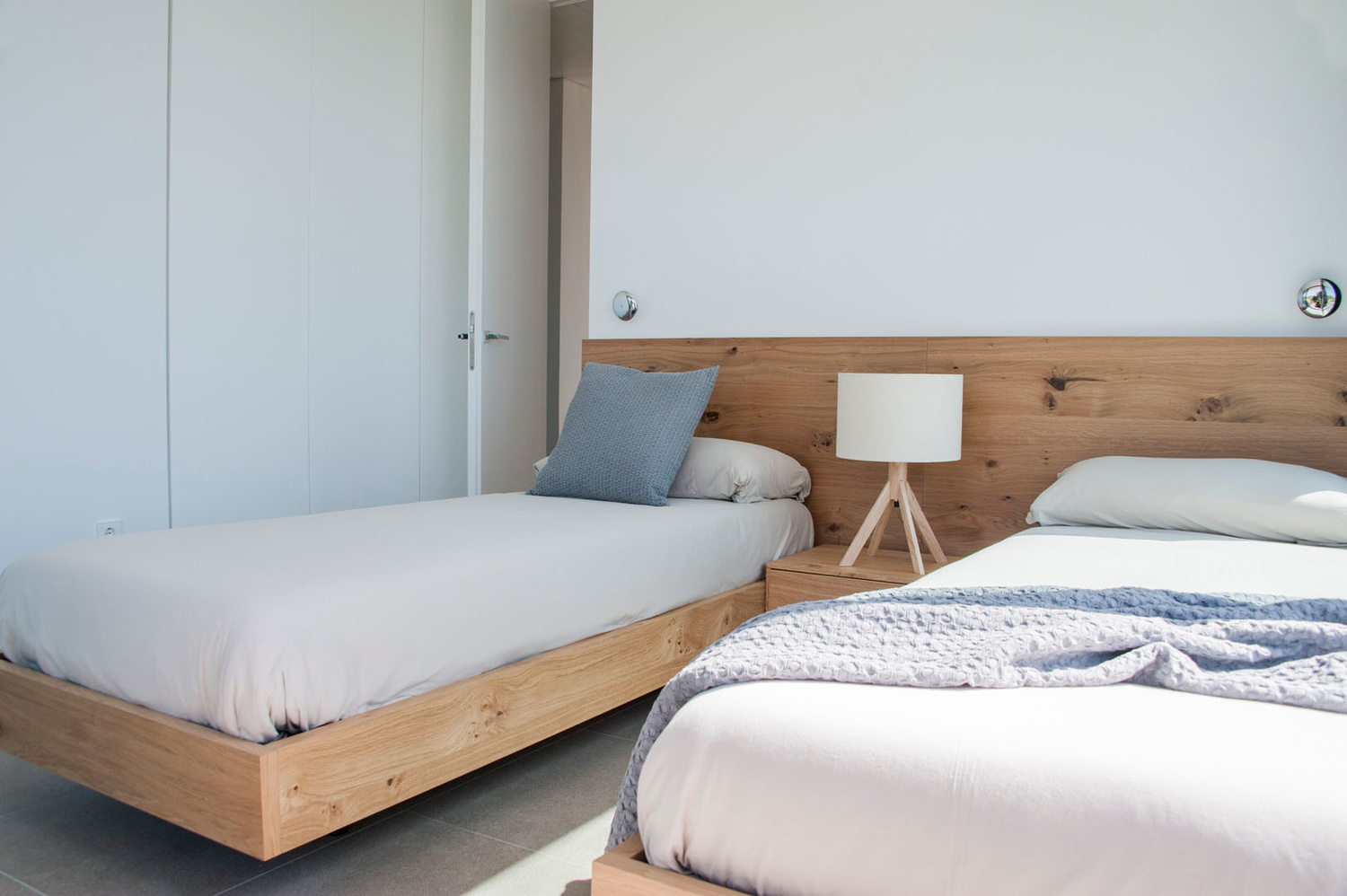 Moving upstairs, each villa comes equipped with 3 bedrooms; the master boasts a luxurious en-suite bathroom whilst the other two rooms share a bathroom positioned just outside as well as a large L-shaped terrace.