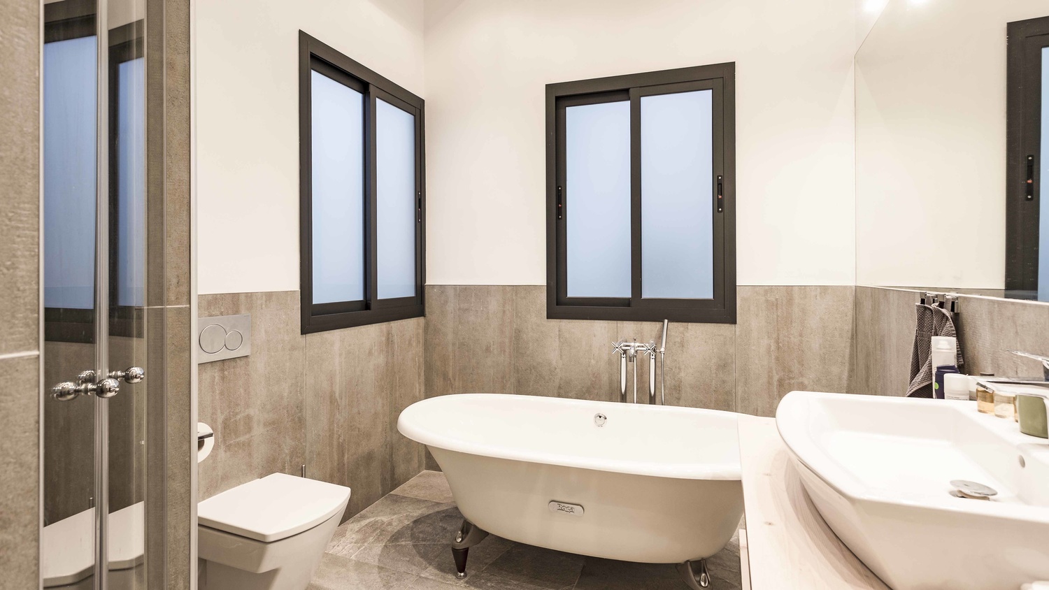 Adjacent to the front door is the garage. Continue through the building and you will encounter a social area, dining area and a bar lit by natural light thanks to a glass roof. Towards the back of the property is a spare room with en-suite bathroom, that could easily be converted into a further bedroom and has natural light thanks to an inner patio. In addition, there is a double bedroom with en-suite bathroom.