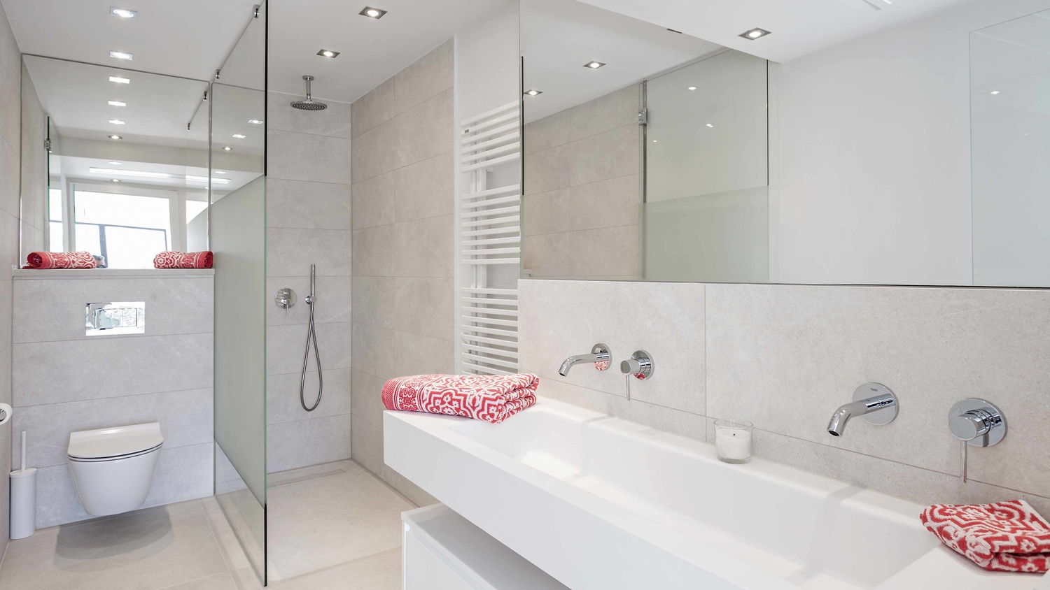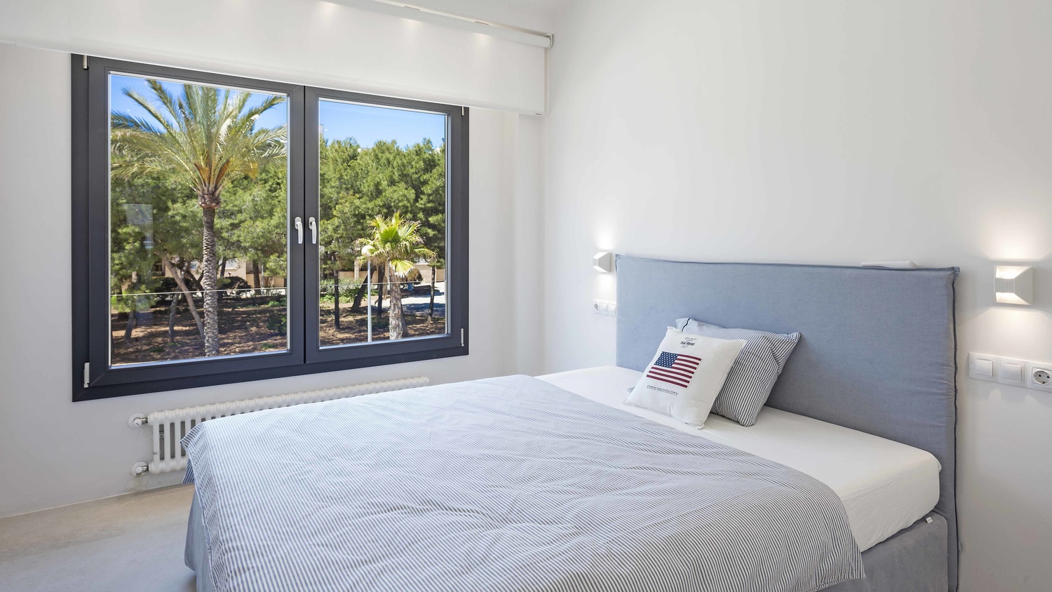 First floor: On the first floor there is the master bedroom with en-suite bathroom. It has spacious fitted wardrobes and has access to the private terrace with views to the pool and garden area. On the same level there are two more bedrooms facing the street with an idyllic forecourt. They also have ample fitted wardrobes and they share a separate bathroom with shower.