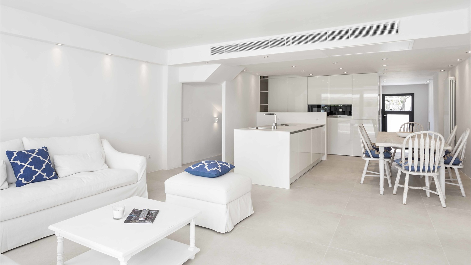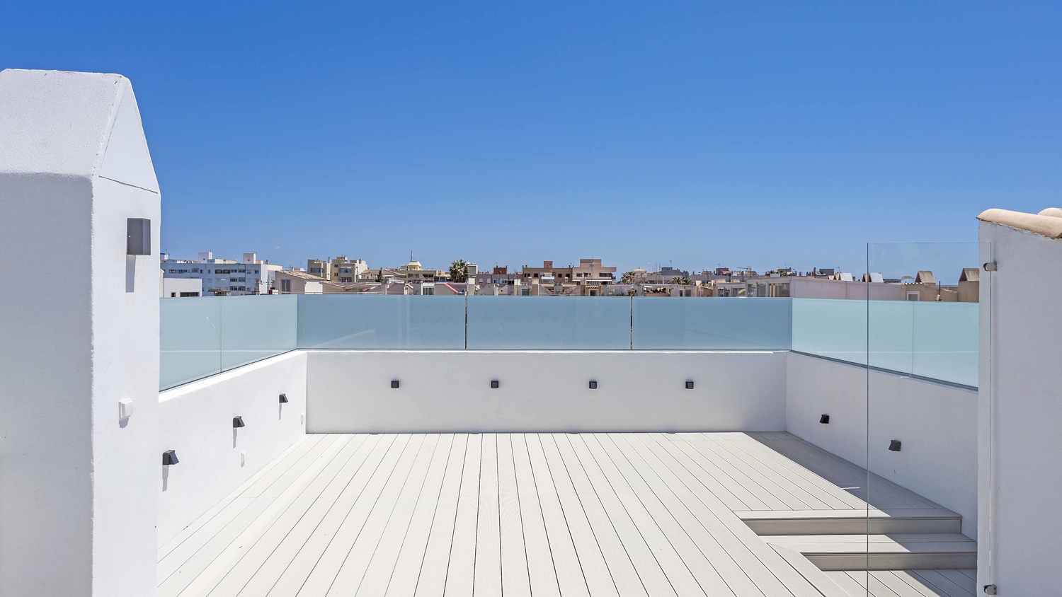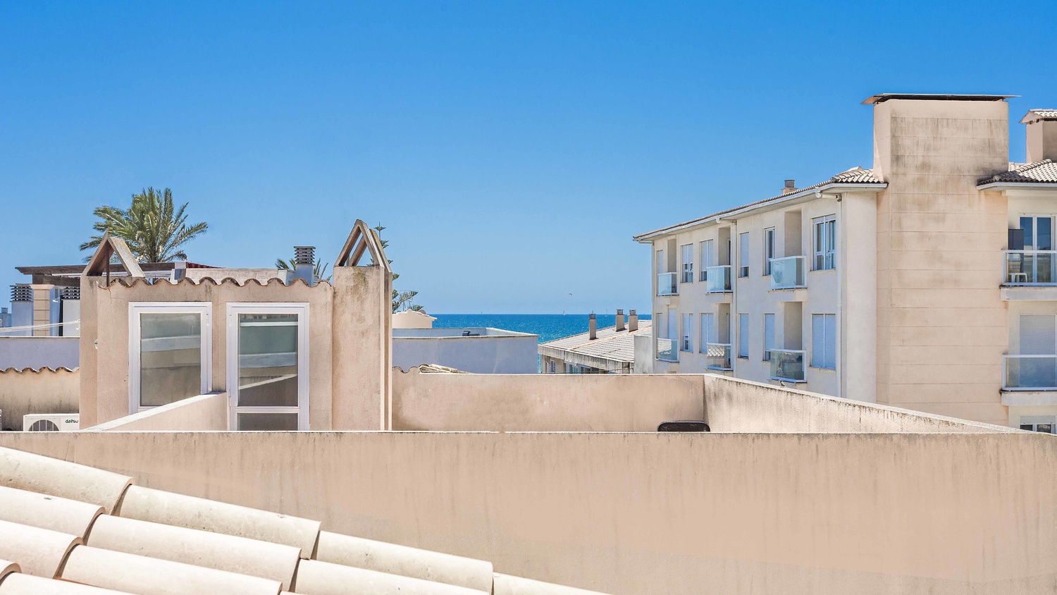 This townhouse is located on a beautiful square in the popular residential area Es Molinar, just a few steps from the beach and the sea.