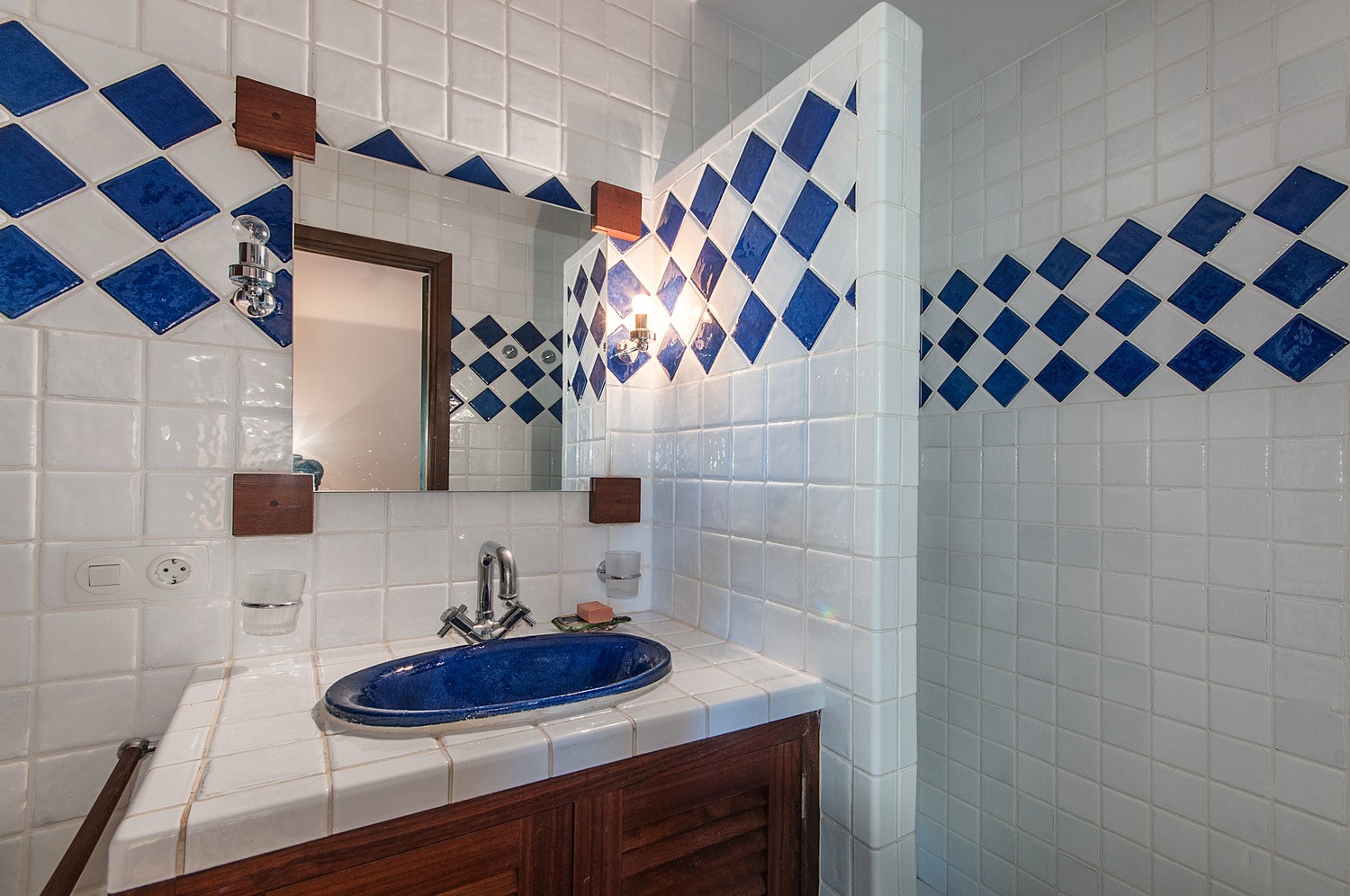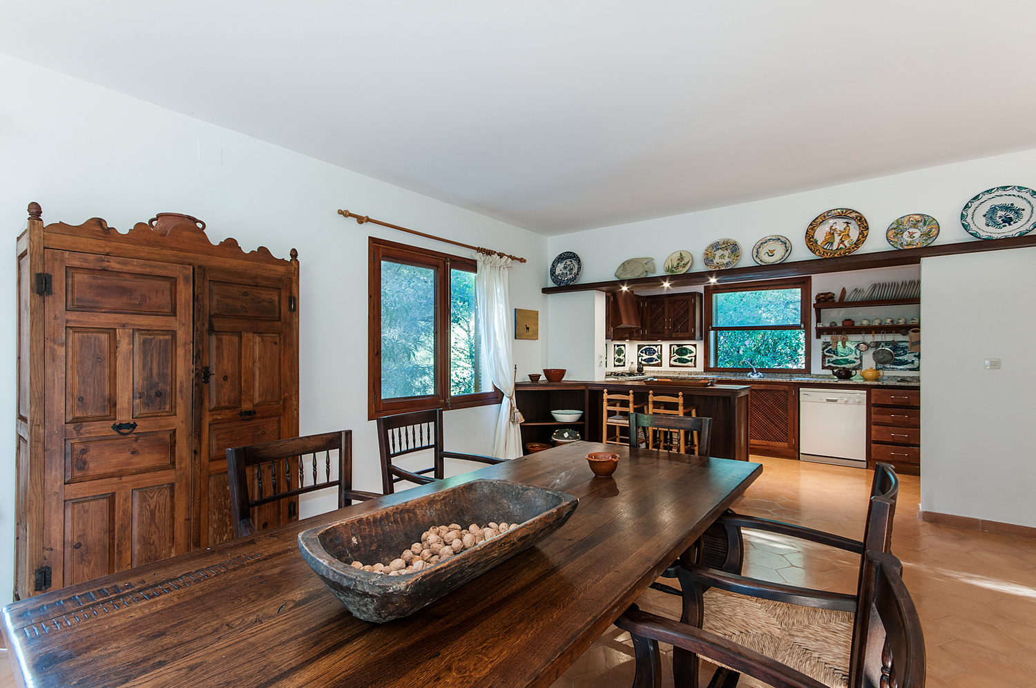 The property is situated in the middle of nature in the area of Cala Tuent, a paradise surrounded by terraces, a pretty garden, pine trees and olive trees, which give the property total privacy. Infinity pool with an outside shower room.