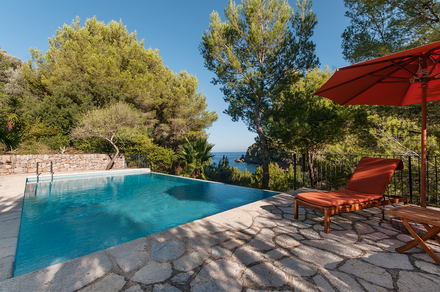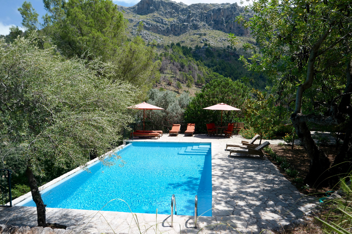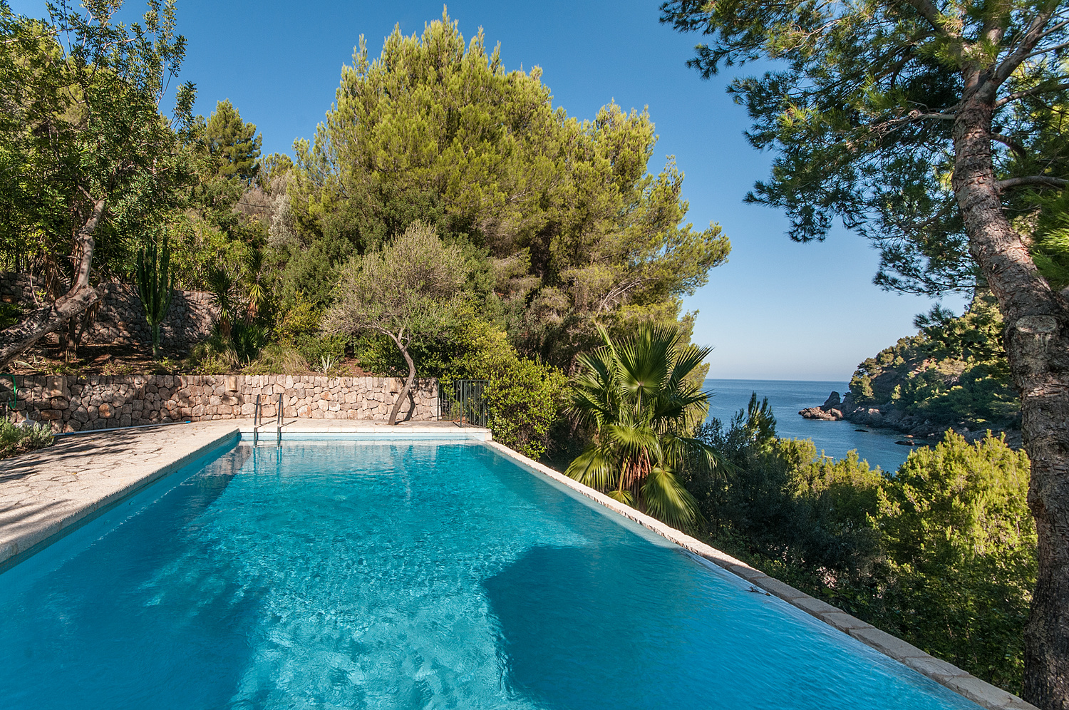 Villa in Cala Tuent with pool, sea and mountain views and private access to the beach