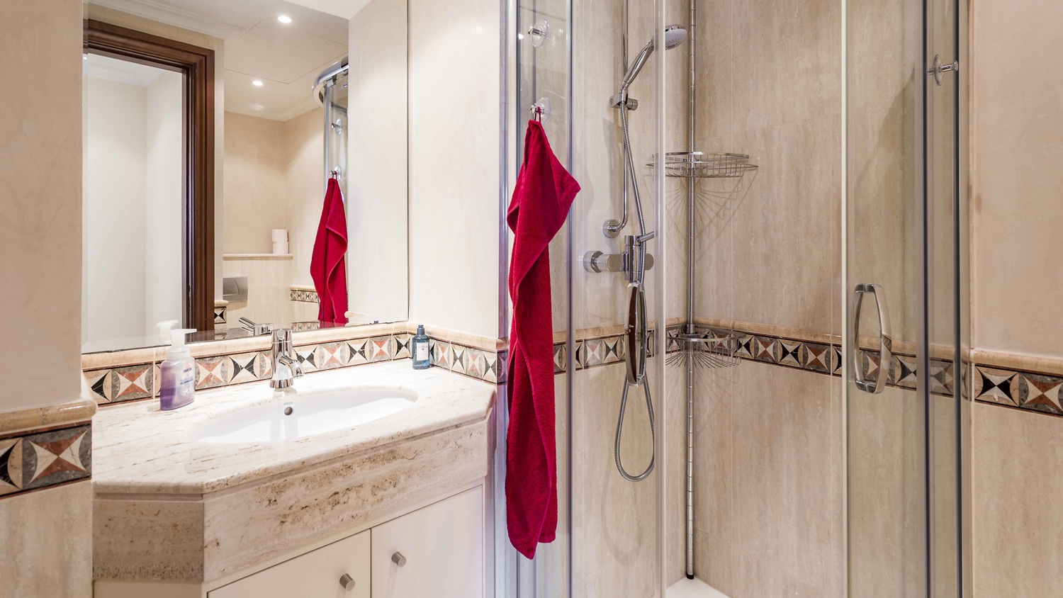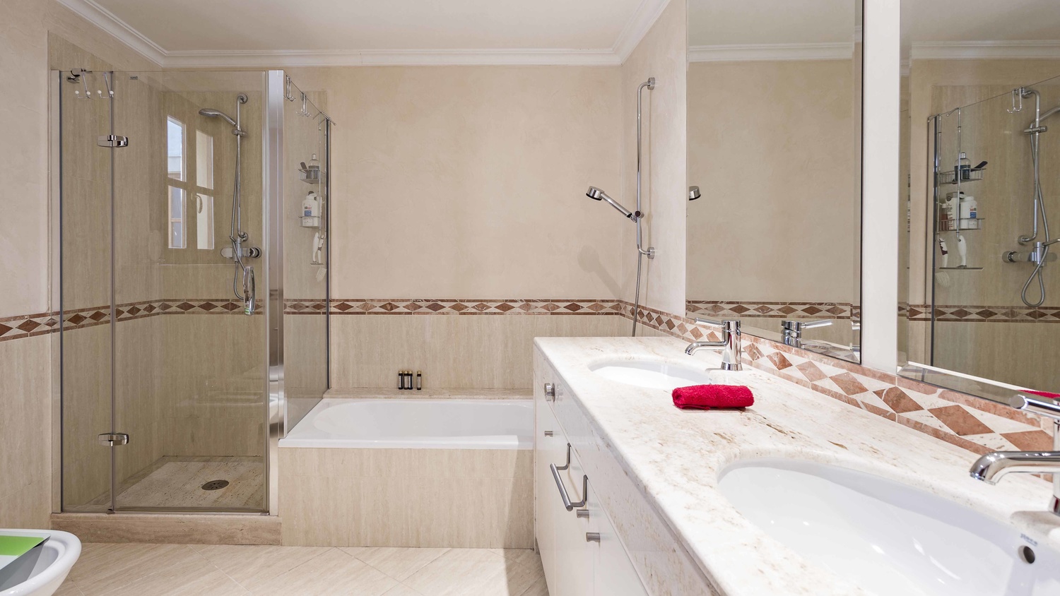 One enters the property through a welcoming entrance area, which leads into the heart of the apartment: The bright and spacious living/dining room opens onto the terrace of 61m2. Furthermore, at the rear area of the property, there are two double bedrooms with access to the terrace as well as two bathrooms. This home gives a typical Mallorcan character by preserving features such as traditional wooden doors and windows and elegant tiled flooring, which add classical charm to this apartment. For your comfort, the property also provides air conditioning and double glazed windows throughout. Furthermore, this apartment has an underground parking space and a storage room.