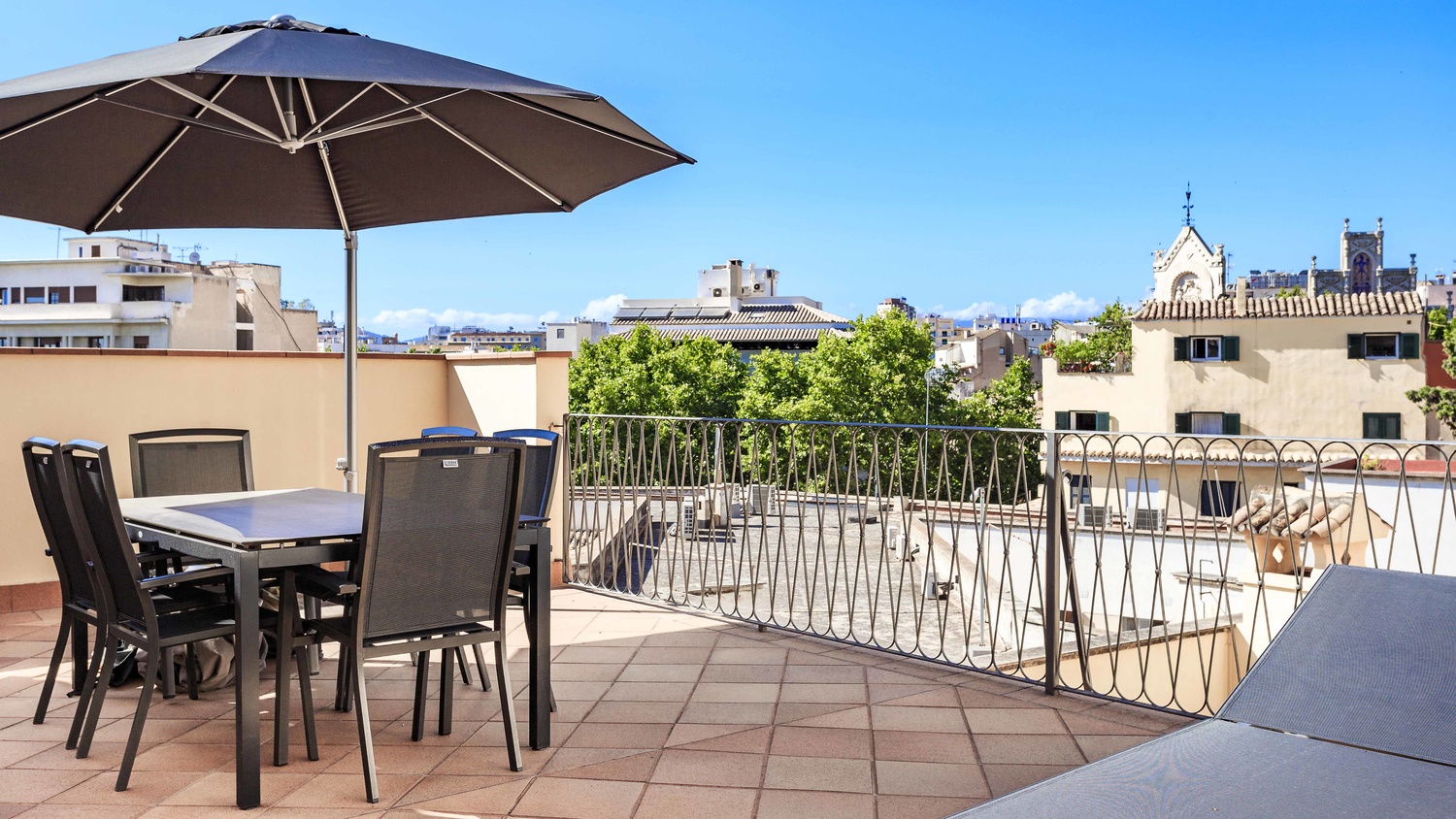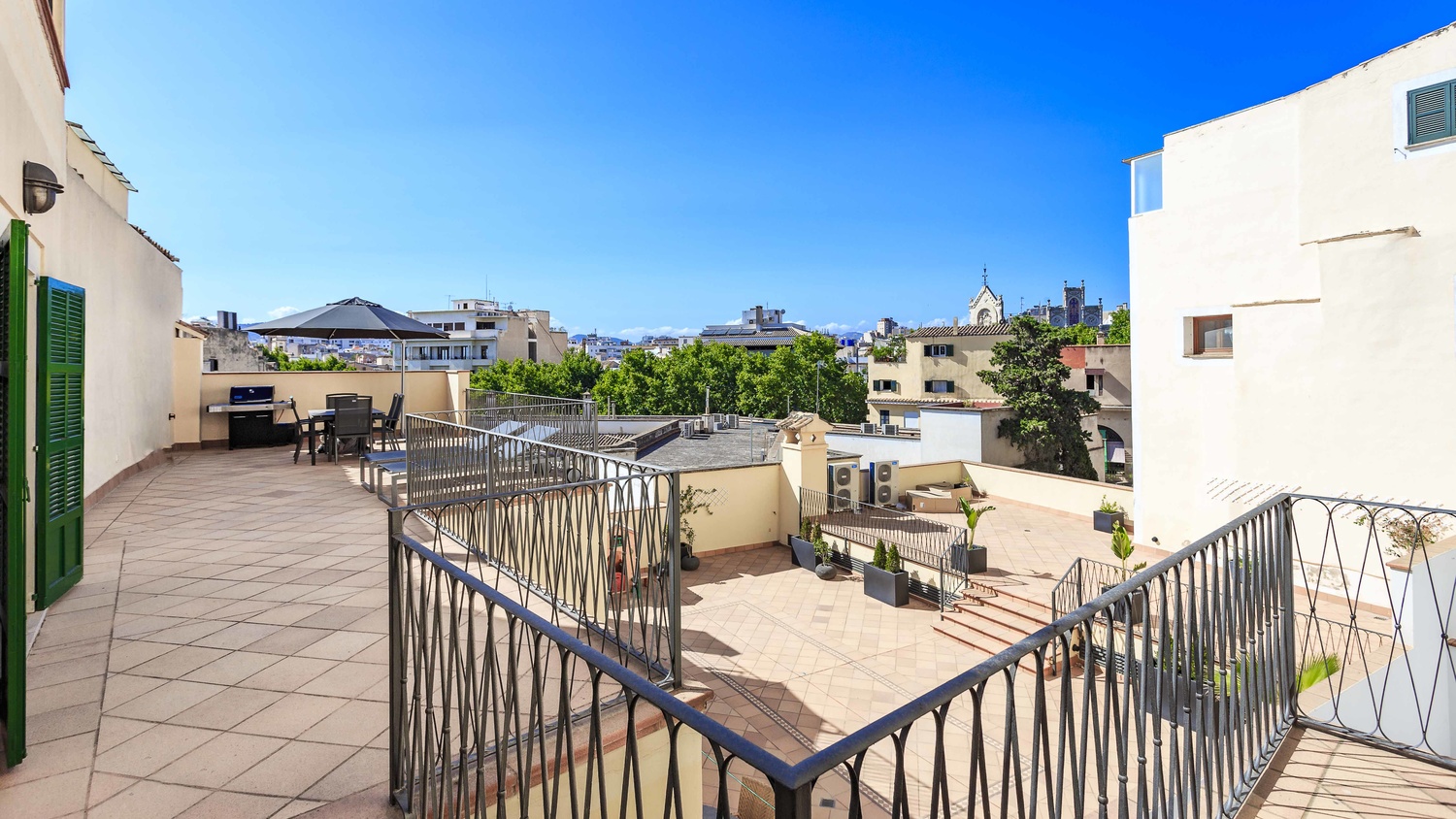 Here one can enjoy the Mediterranean lifestyle with sun loungers and BBQ, while admiring open views over the Old Town. Palma living at its best!