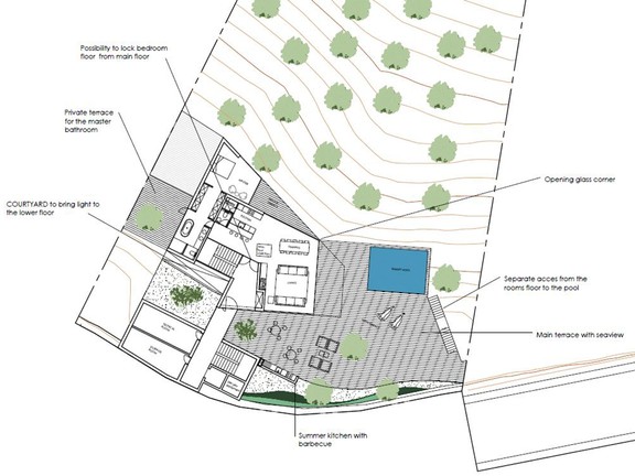 The total plot size of 2.244 m² allows a 33% construction of the total plot area for a single family villa with two normal living floors and a basement which could be suitable for a garage or a Spa area.