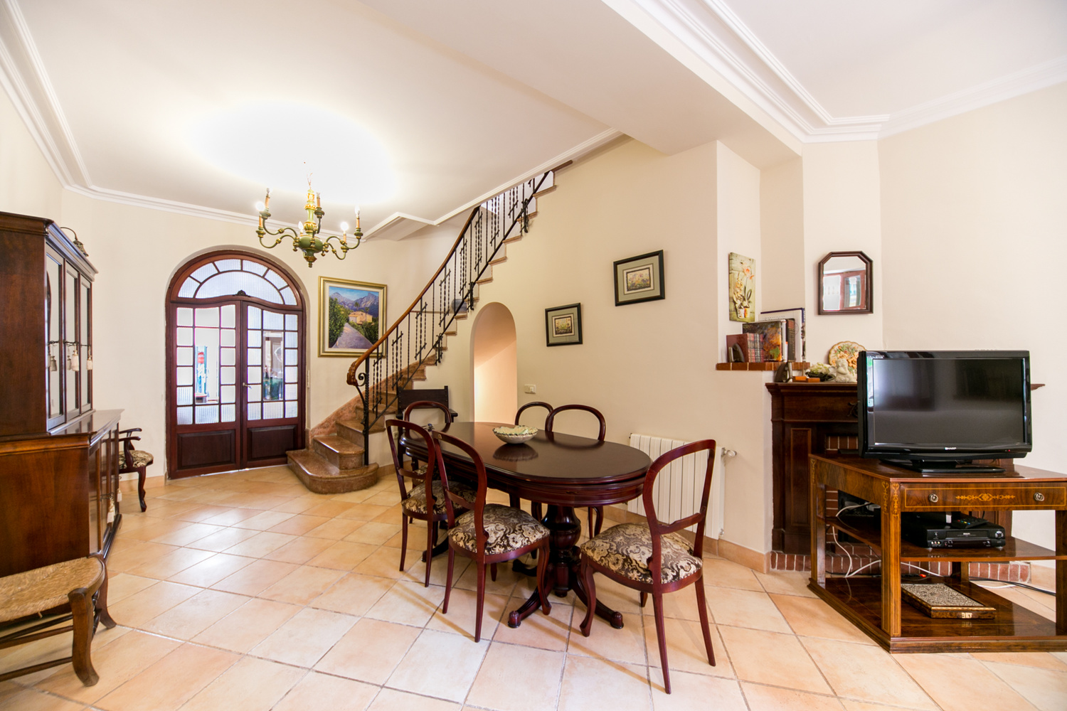 Main entrance: It consists of living room with fireplace, dining room, guest toilet, furnished kitchen, laundry and larder. From the kitchen you can access a small outdoor patio giving a lot of light to the house.