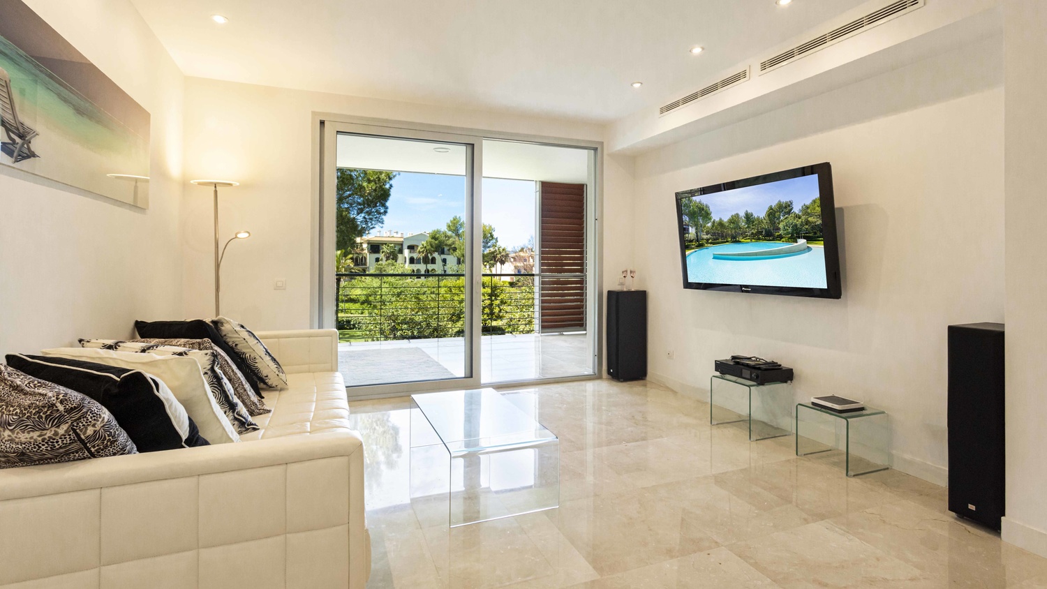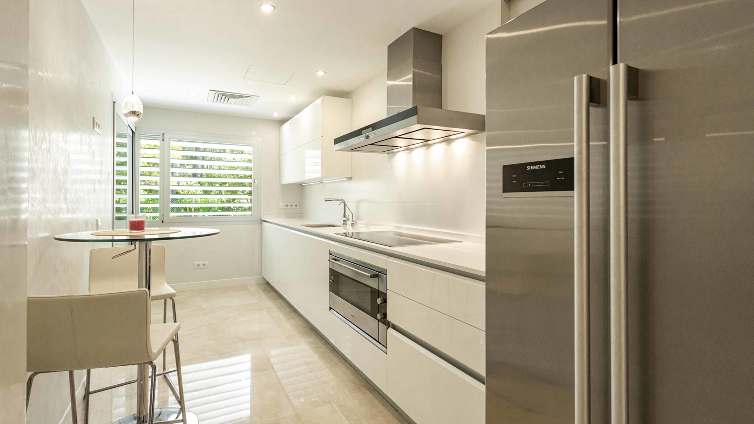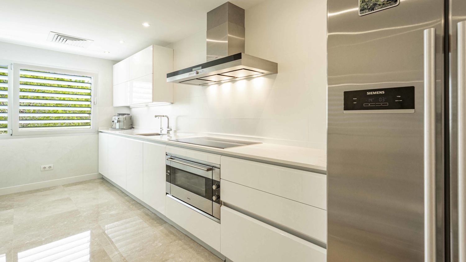 Entrance area with hallway, fully equipped luxury kitchen, large living room with dining area and access to a very nice terrace with views of the garden and pool.