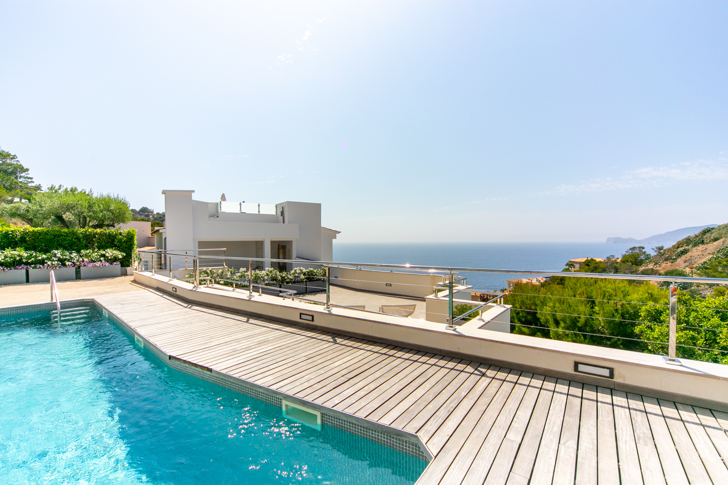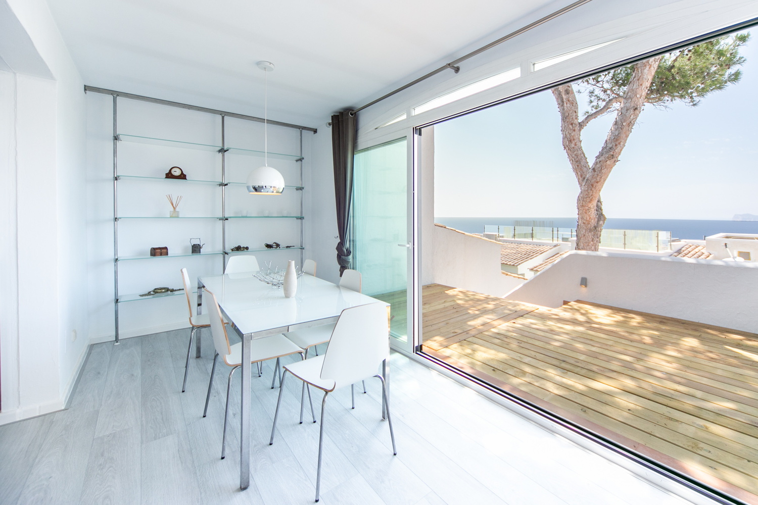 Three houses in the same Ibiza Style design with terraces and gardens.
