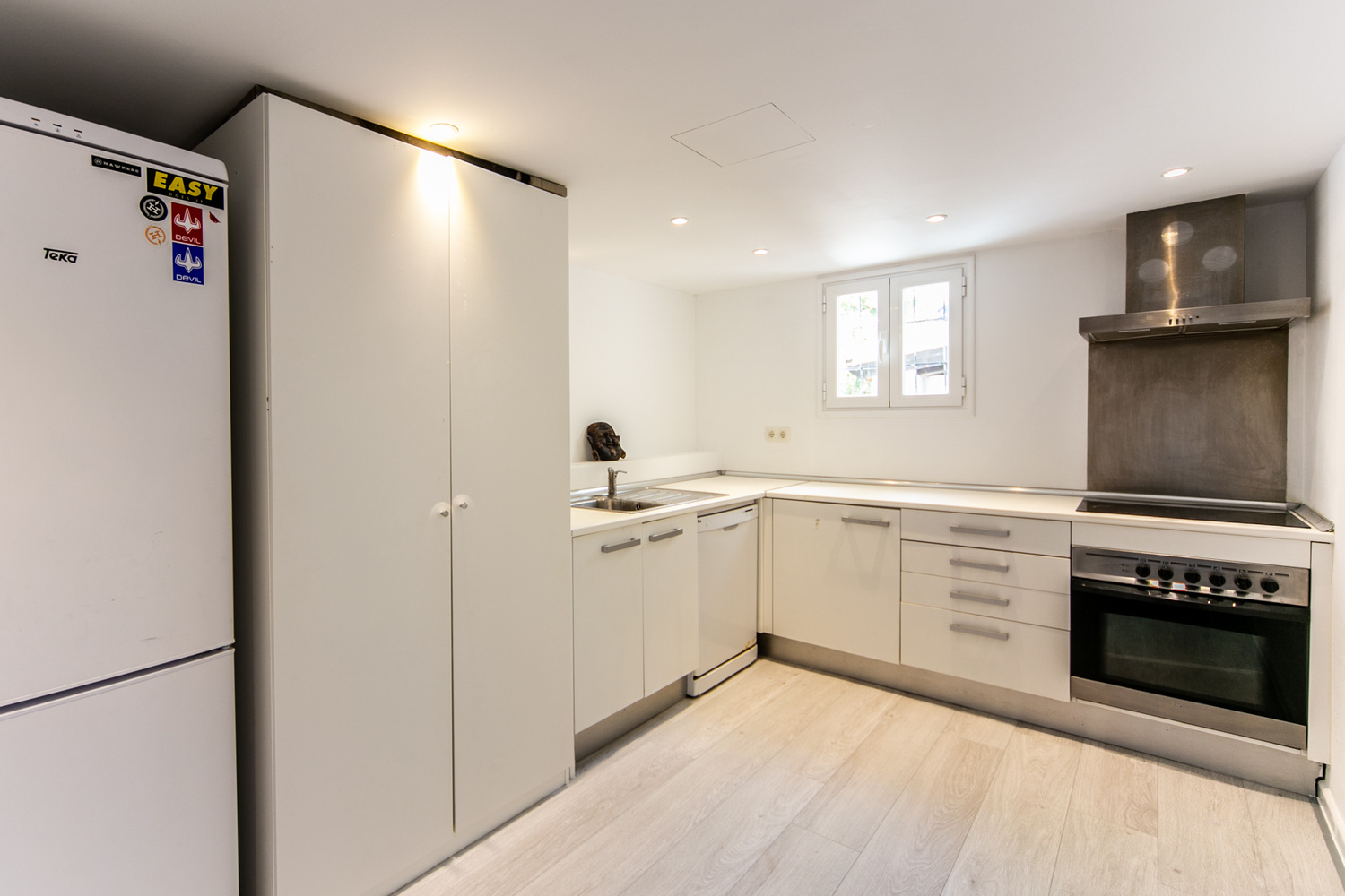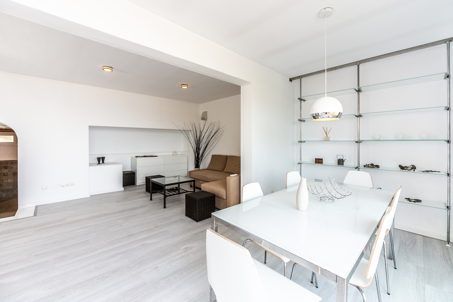 Ground floor: living room with dining area, modern kitchen and guest cloaks room.