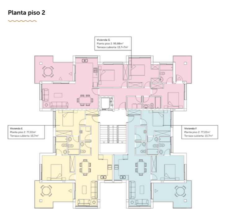 The net living area is approx. 100 m2 plus two terraces and is divided in the living-dining area with American kitchen, three bedrooms and two bathrooms and laundry.